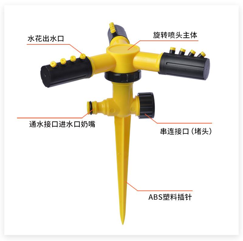 Aspersor de jardín con conector de tierra de enfriamiento de riego de césped de 360 grados, boquilla giratoria automática grande de tres horquillas
