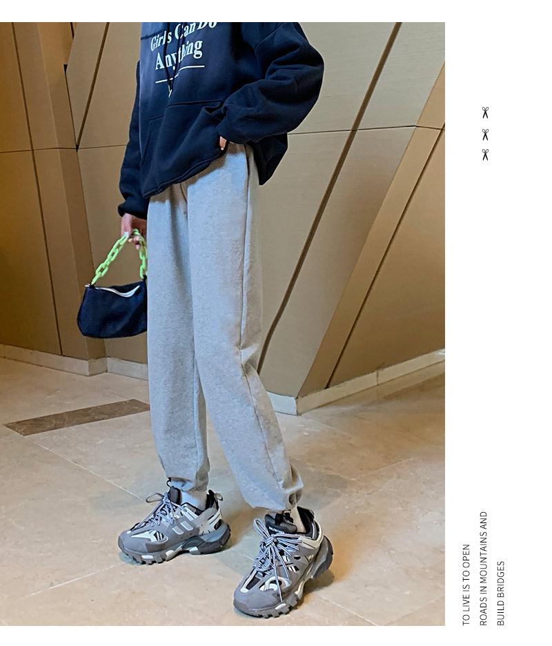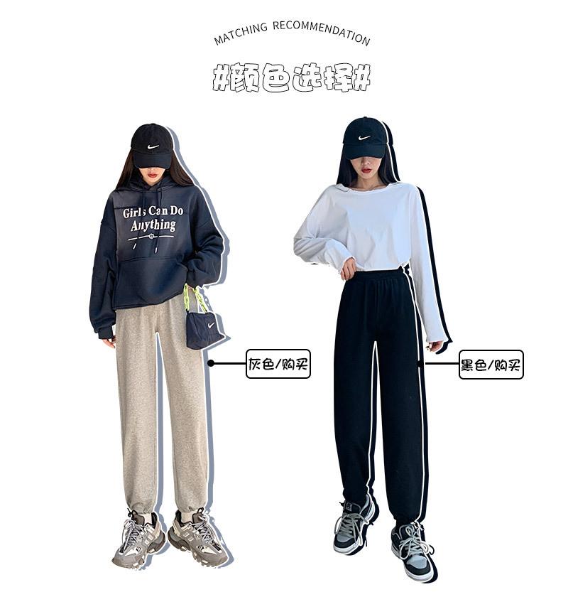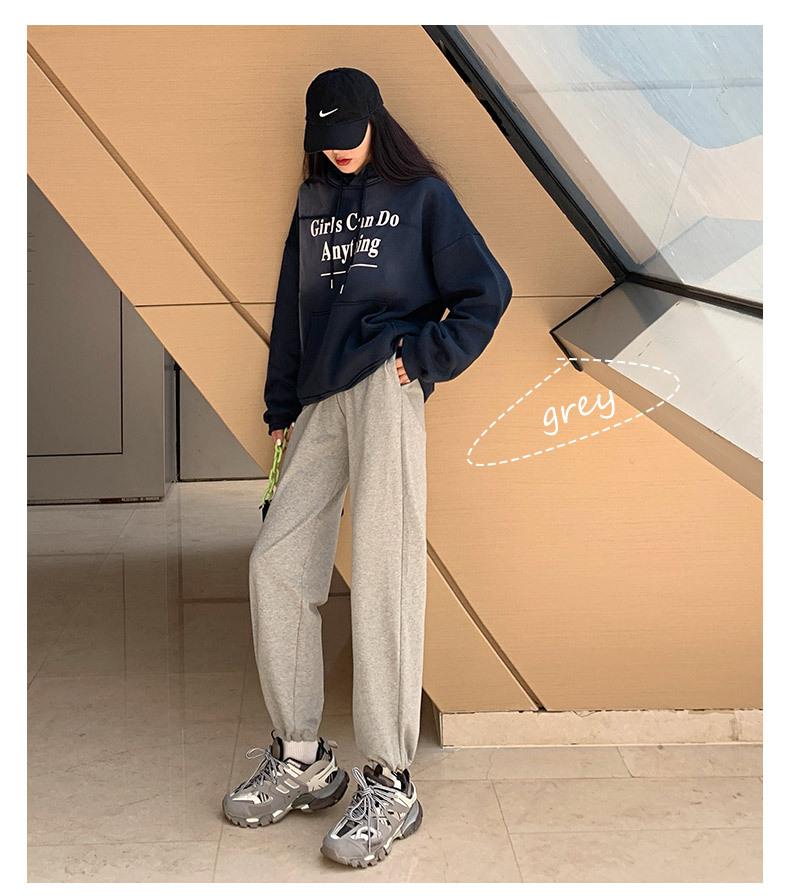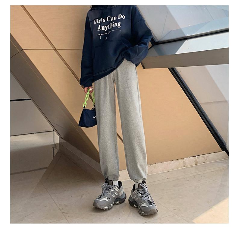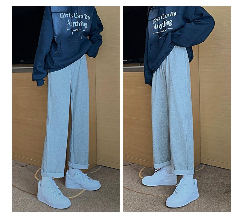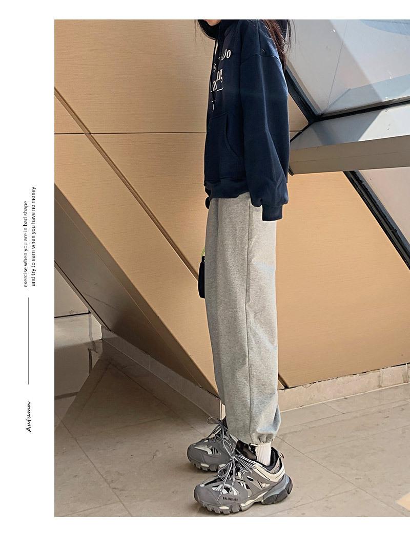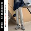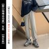 Otoño Nuevo Pantalón Deportivo Gris para Mujer, Suelto con Lazos en las Piernas de Cintura Alta Slim Recto Pierna Ancha Pantalón de Chándal Casual