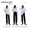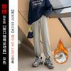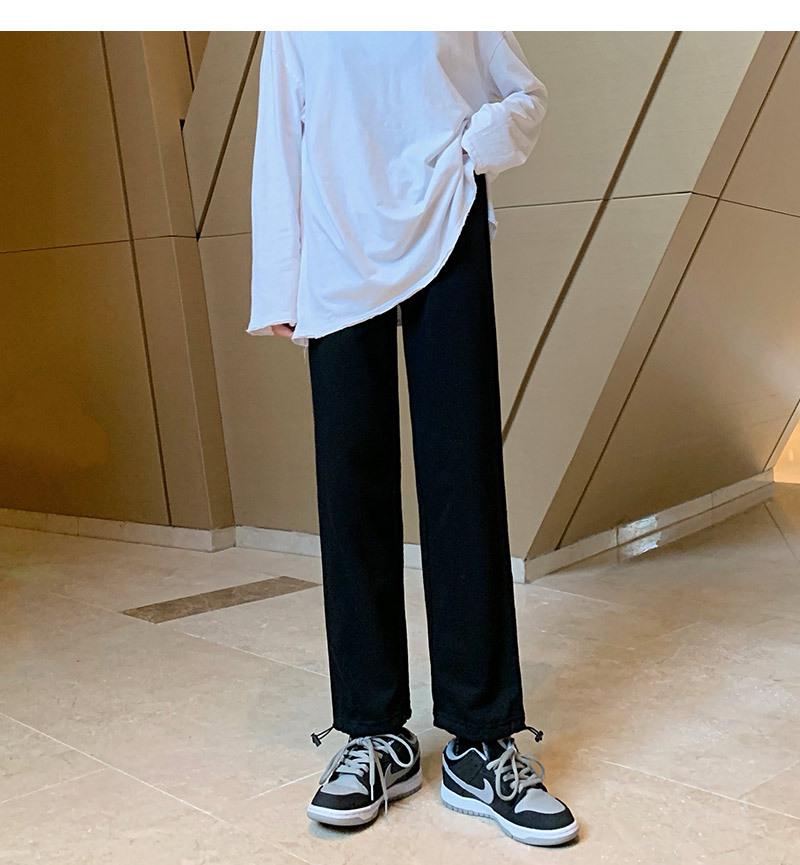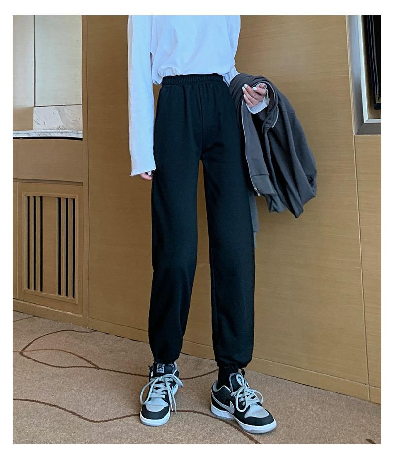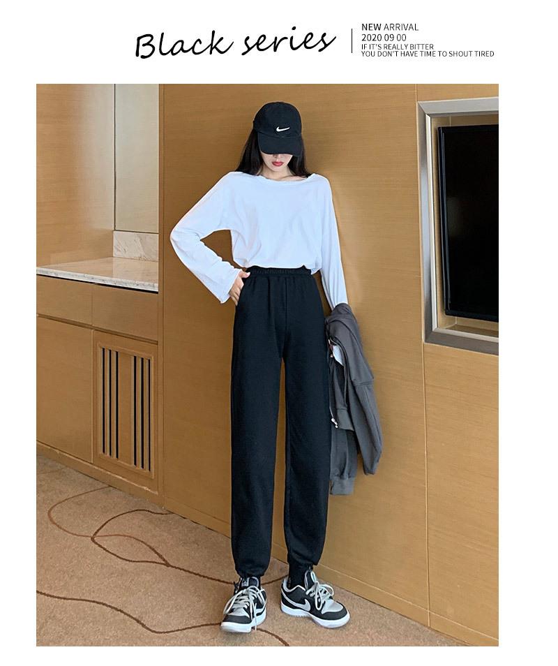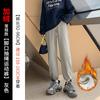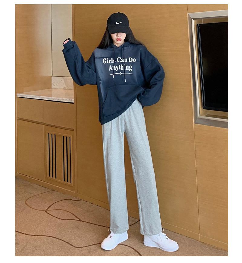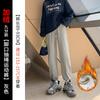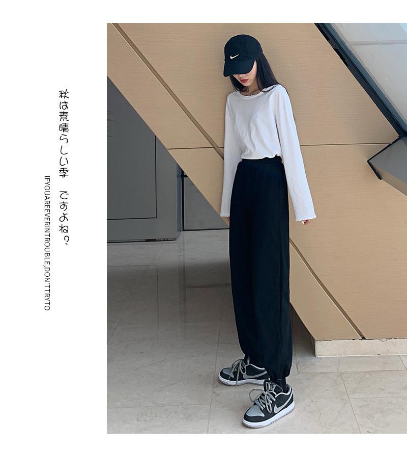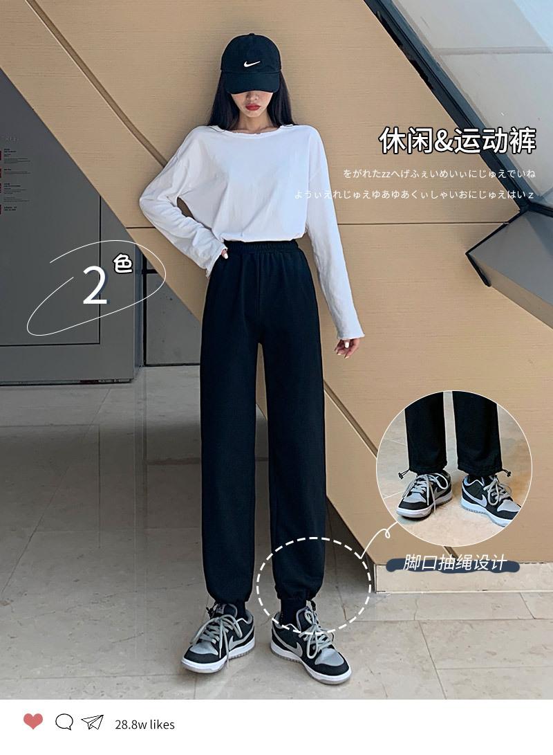 Otoño Nuevo Pantalón Deportivo Gris para Mujer, Suelto con Lazos en las Piernas de Cintura Alta Slim Recto Pierna Ancha Pantalón de Chándal Casual