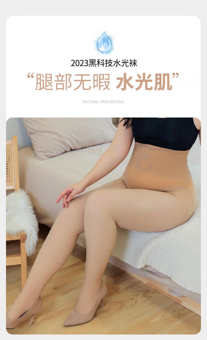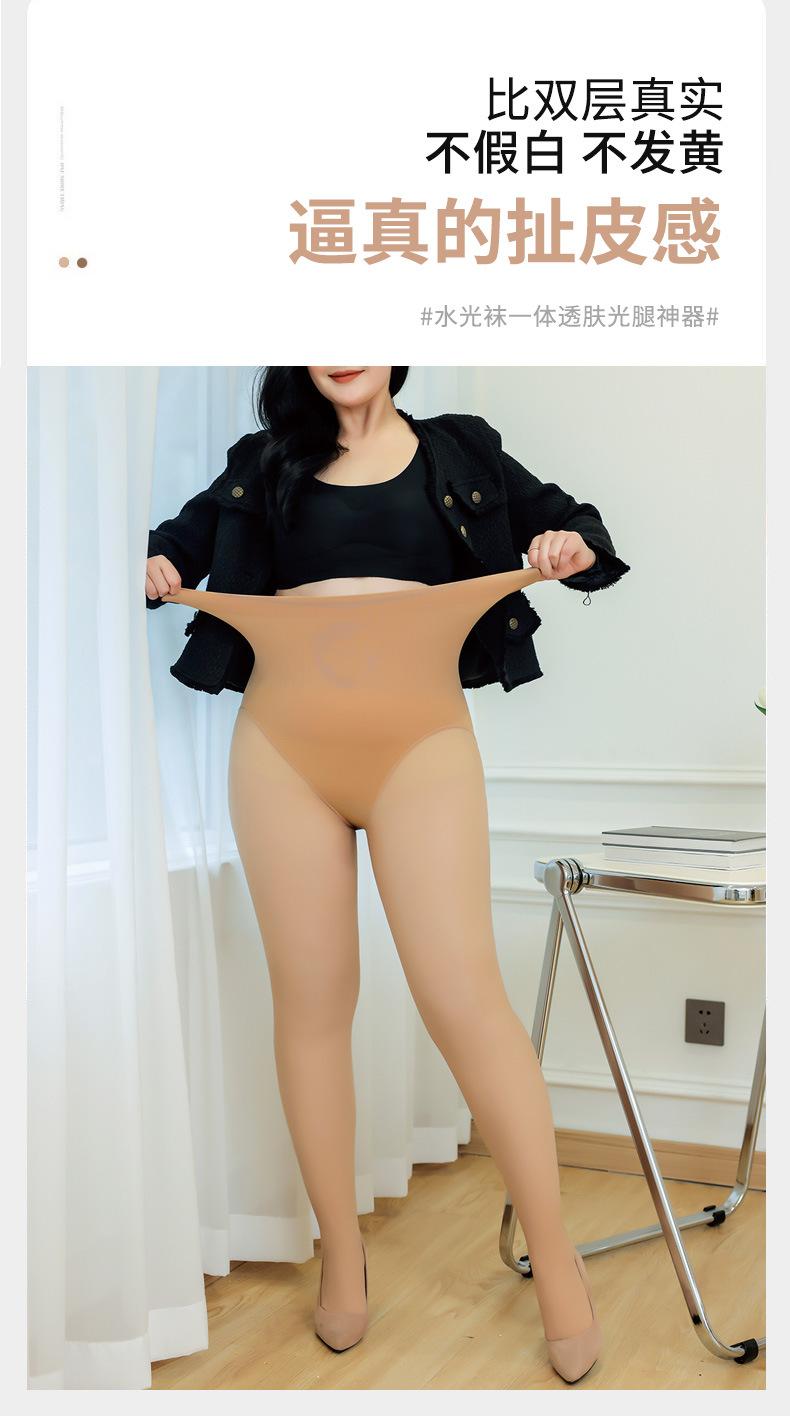 Medias Negras de Seda de Alta Transparencia de Una Pieza con Artefacto para Piernas Desnudas Agrandadas para Mujer Primavera y Verano Delgadas Falsas Translúcidas con Brillo de Agua Leggings de Cintura Alta