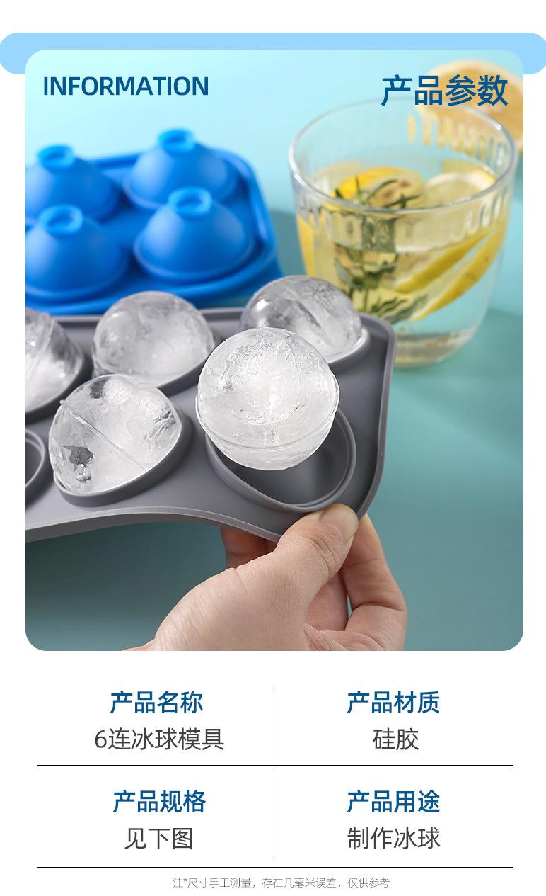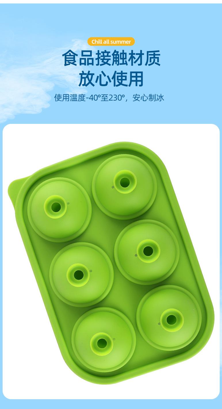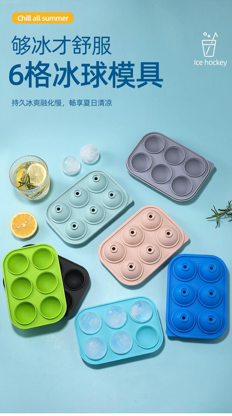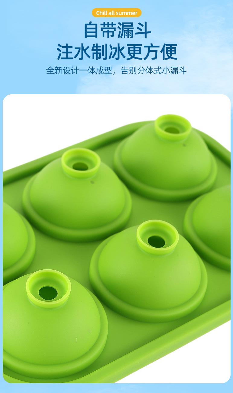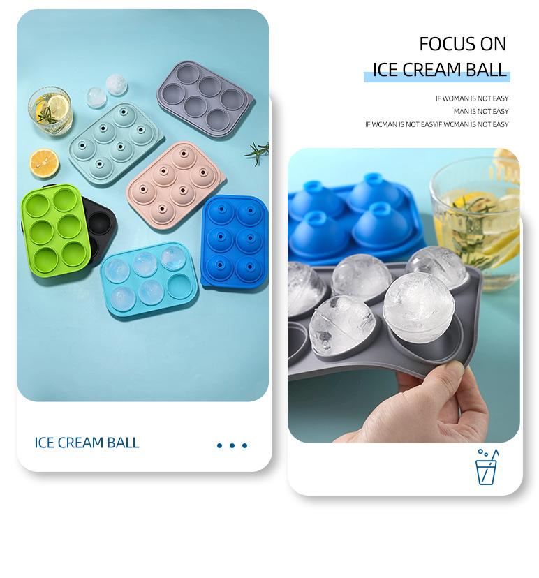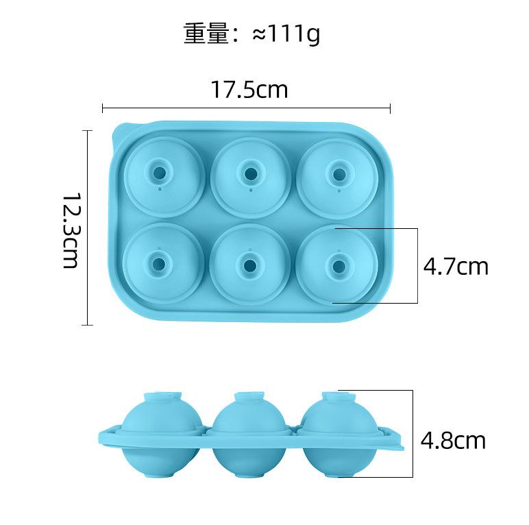 Bandeja de Hielo de Silicona con Tapa 6 Hoyos Whisky Café Leche Té Cubitos de Hielo Película con Embudo Incorporado Molde de Silicona para Bolas de Hielo