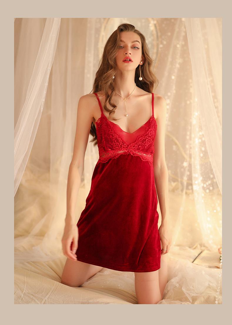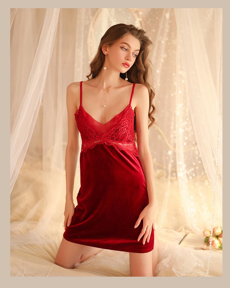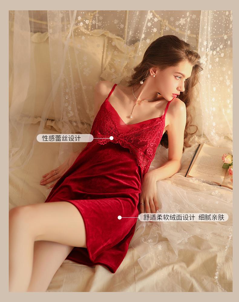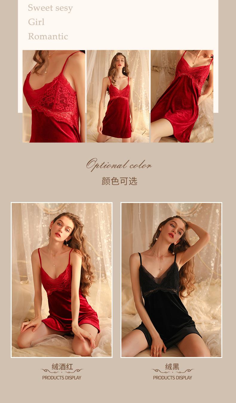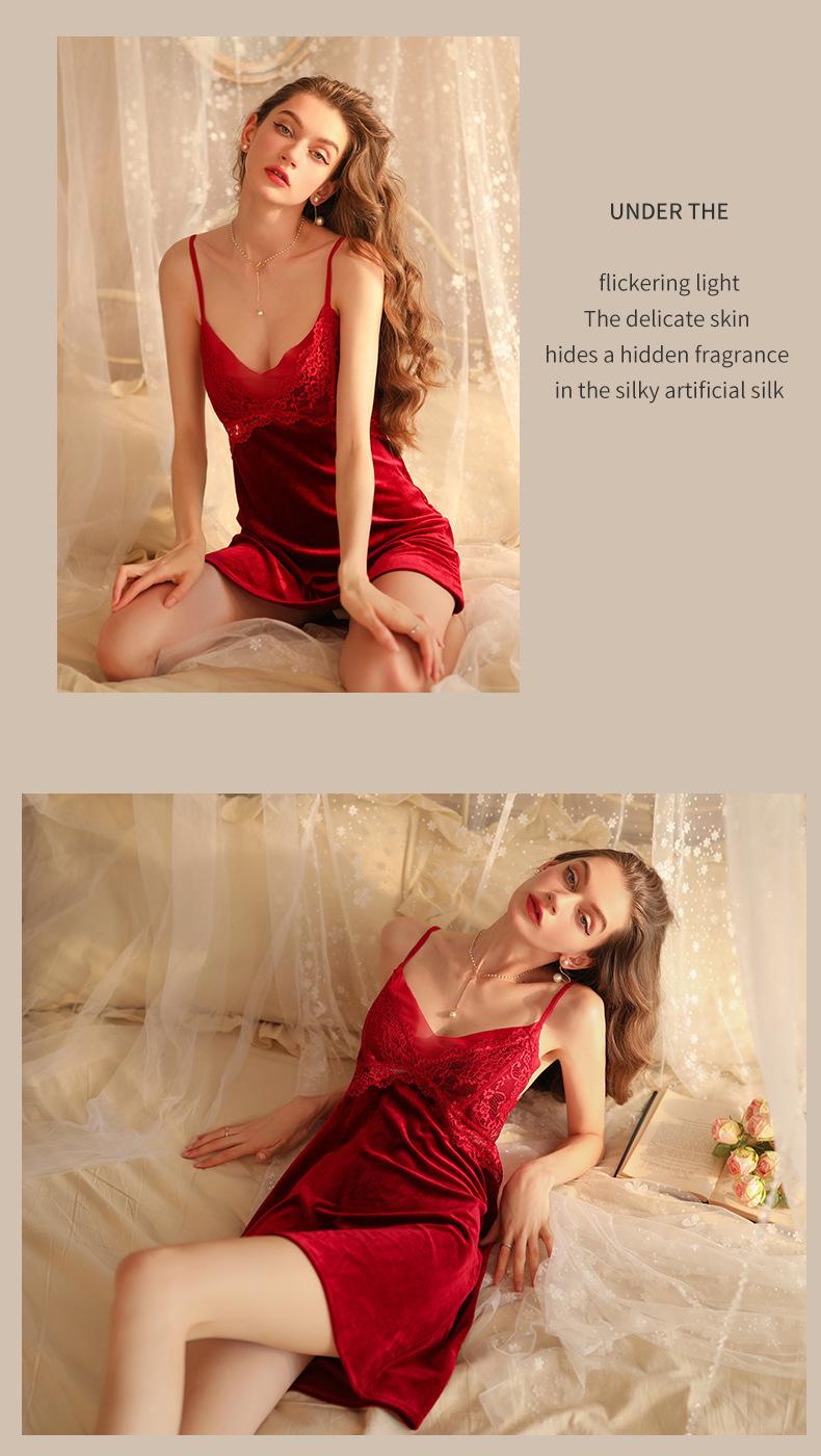 Hermoso hilo otoño e invierno Nueva Perspectiva pijamas de terciopelo para mujer profundo V tentación tirantes camisón puro deseo sexy pijamas al por mayor