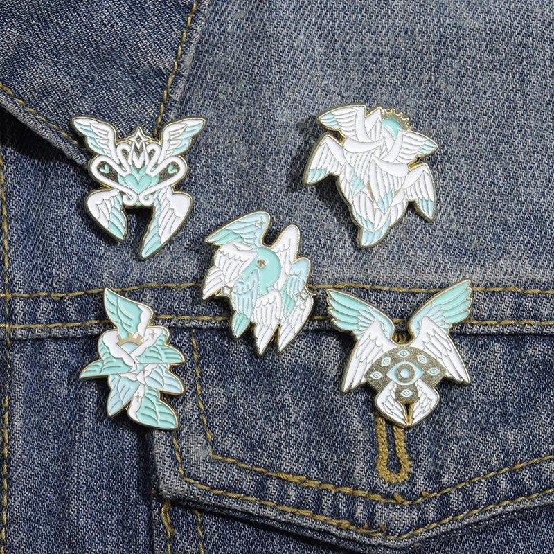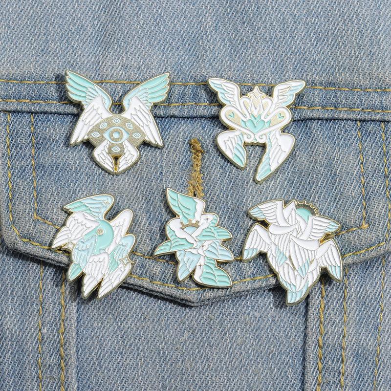 Broche de metal creativo con forma de ojo de Horus, alas de dibujos animados, plumas, paloma de la paz, insignia de metal, accesorios de ropa que combinan con todo.