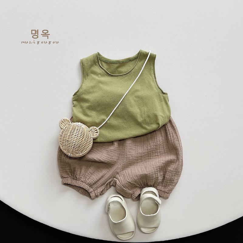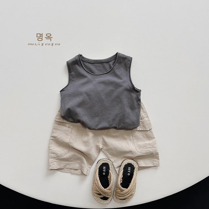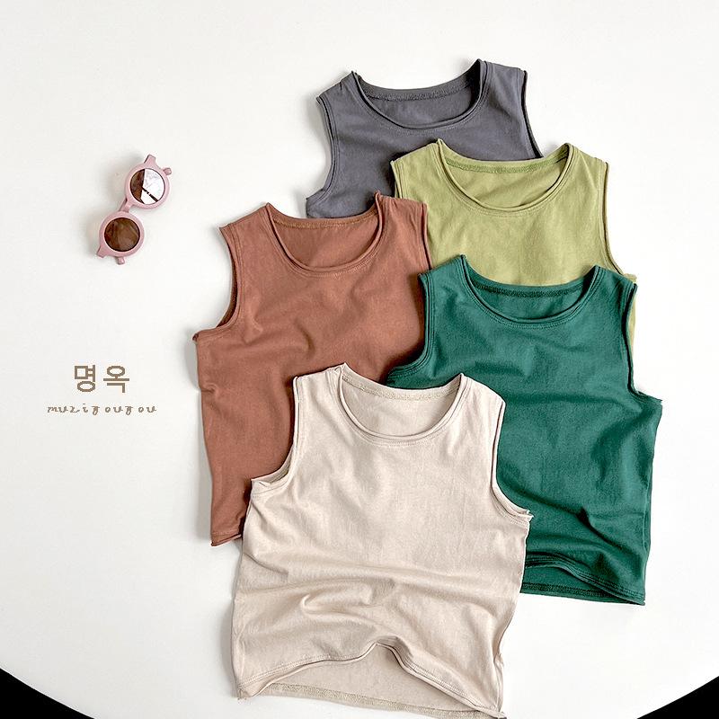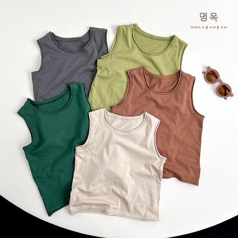 Chaleco de algodón Mori de 5 colores para niños y niñas de verano 2025, nueva camiseta sin mangas de estilo coreano y japonés para niños, tendencia para niños