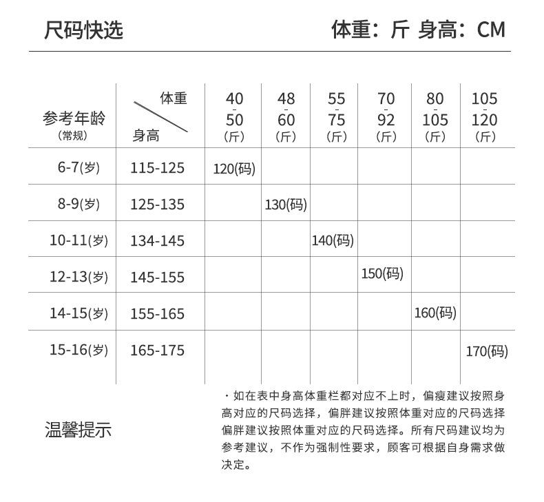 120cm, 130cm, 140cm, 150cm, 160cm, 170cm