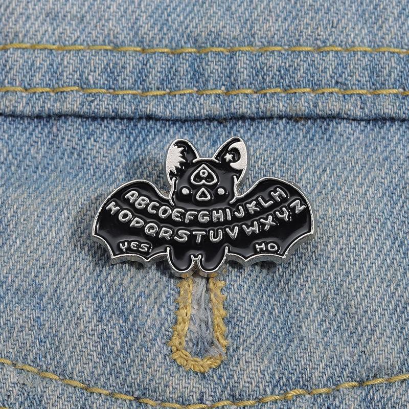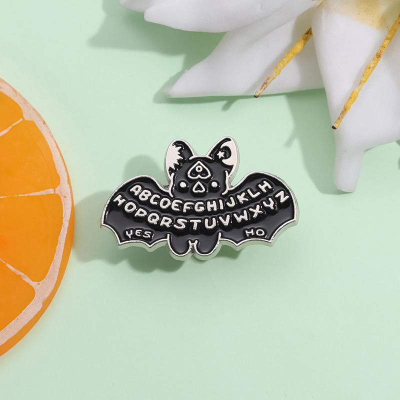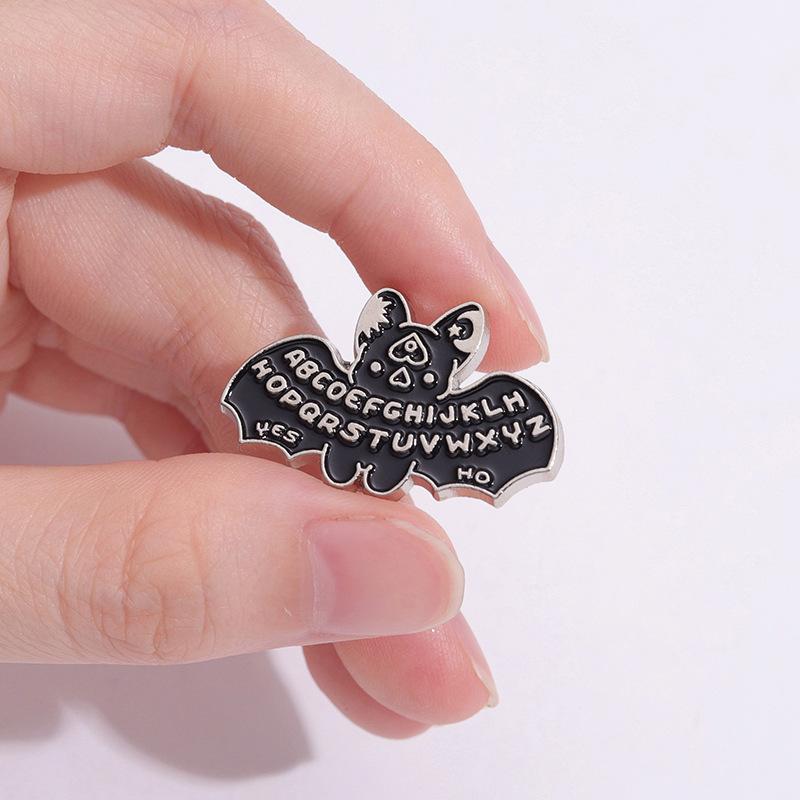 Broche de murciélago negro de pintura creativa Insignia de metal inspiradora europea y americana Medalla