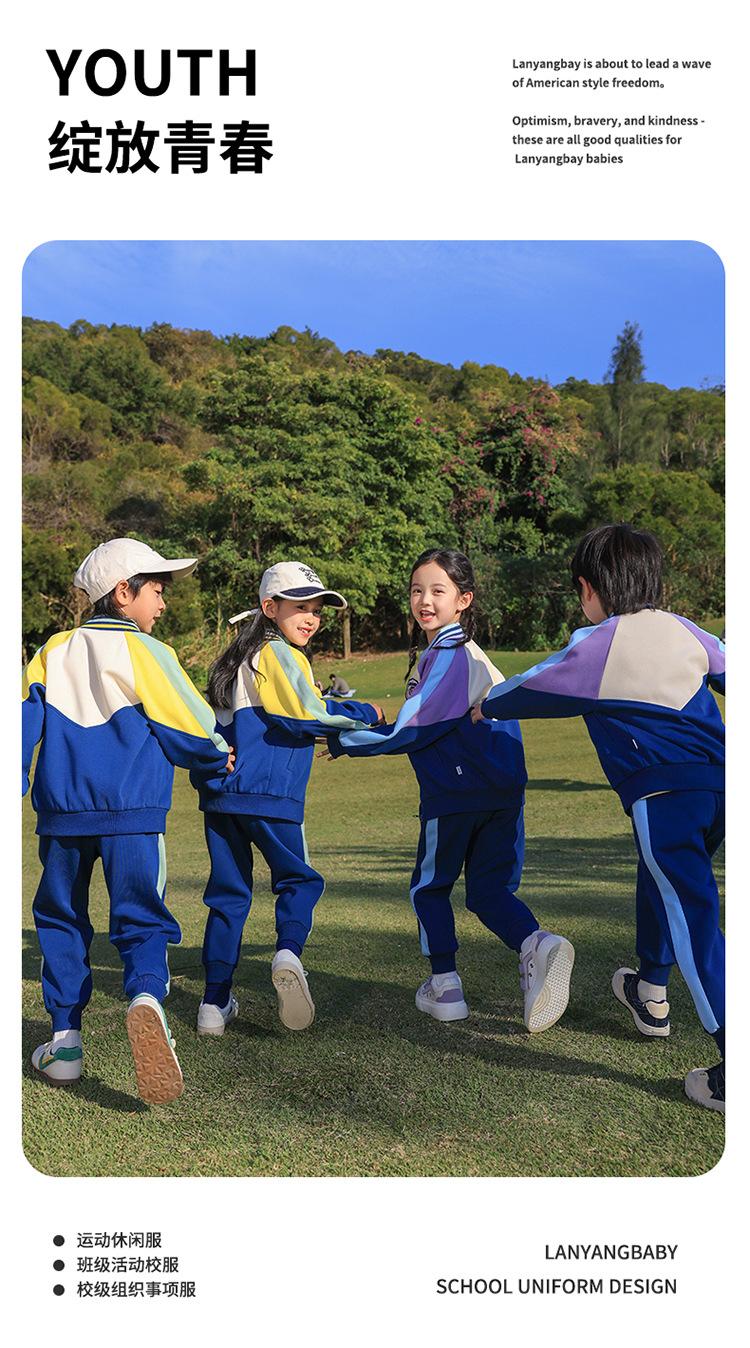 Uniforme escolar Lanyang Beibei para estudiantes de primaria y secundaria, fábrica de trajes, venta al por mayor, ropa de jardín de infantes, ropa de clase grupal escolar de primavera y otoño
