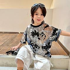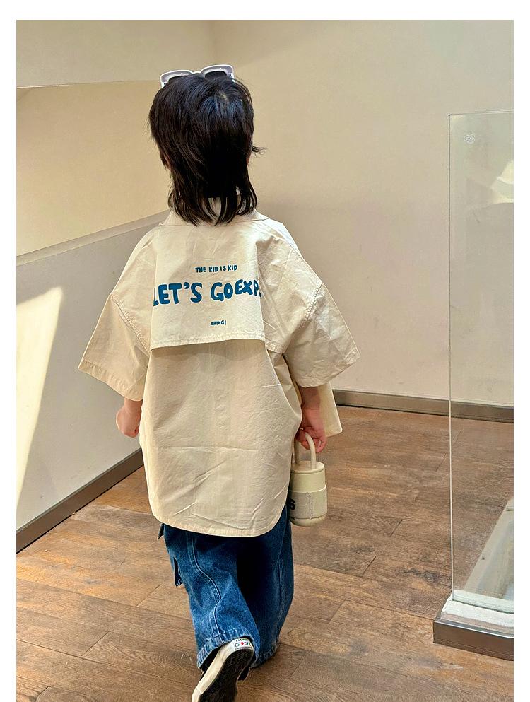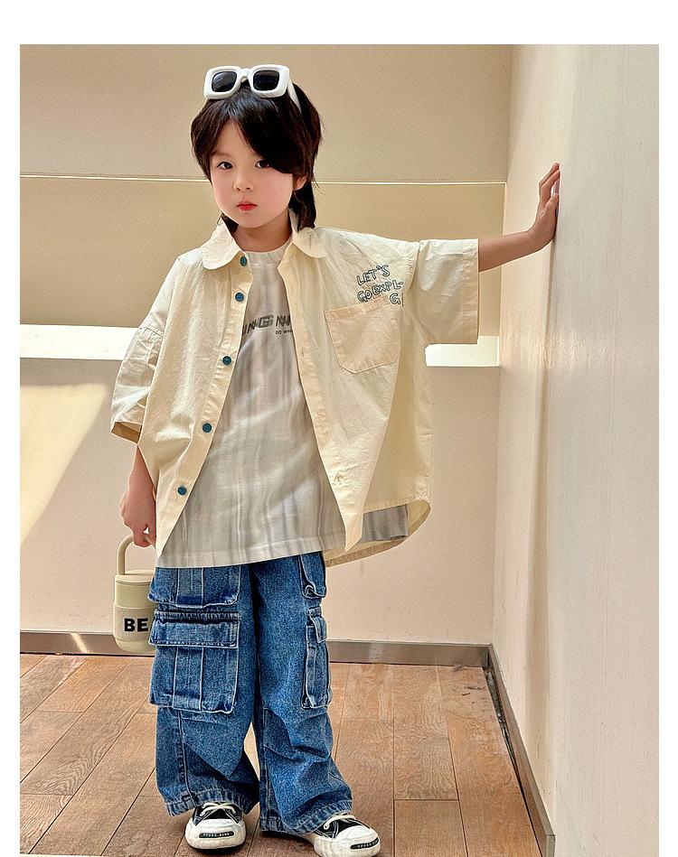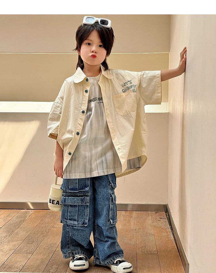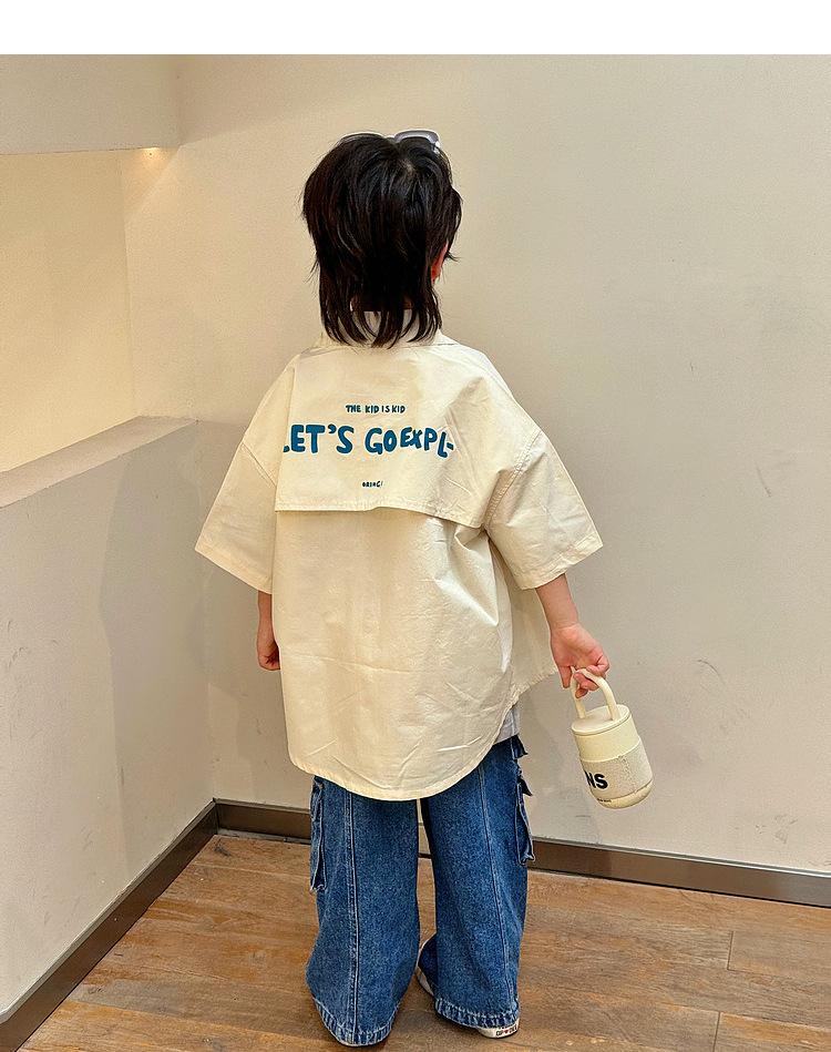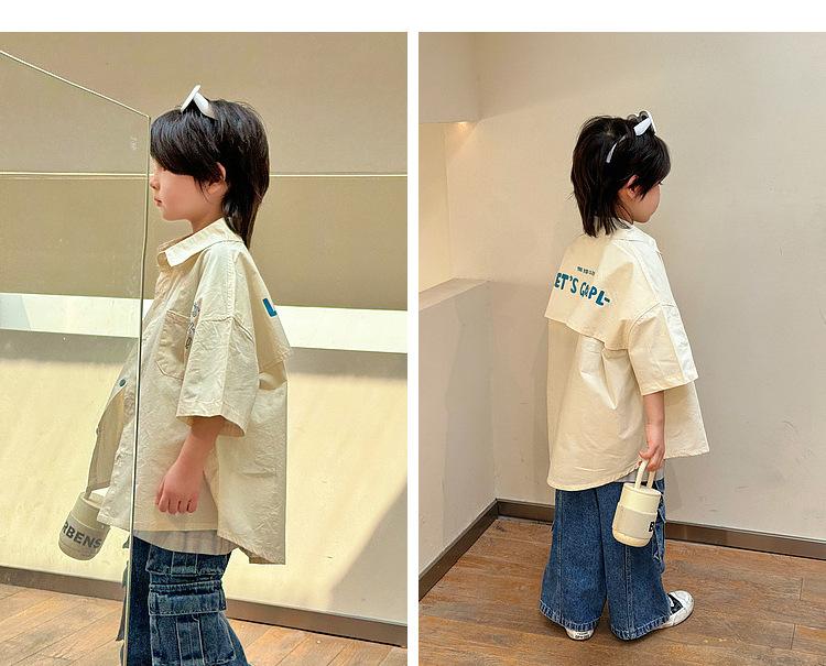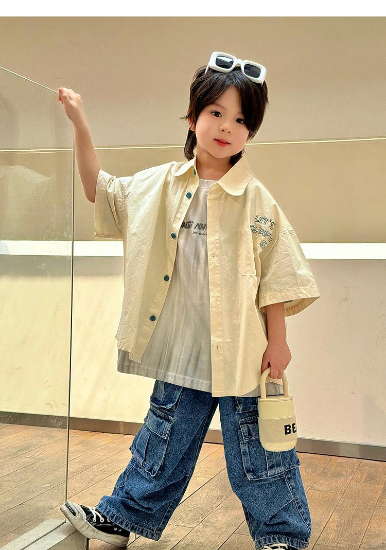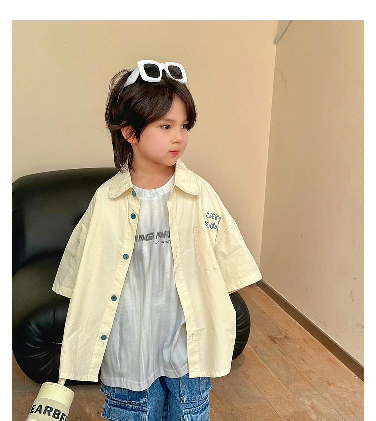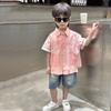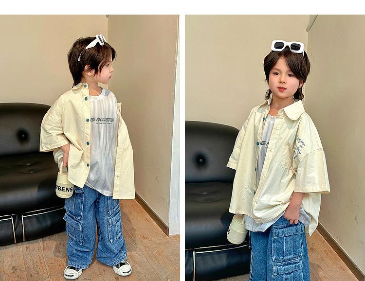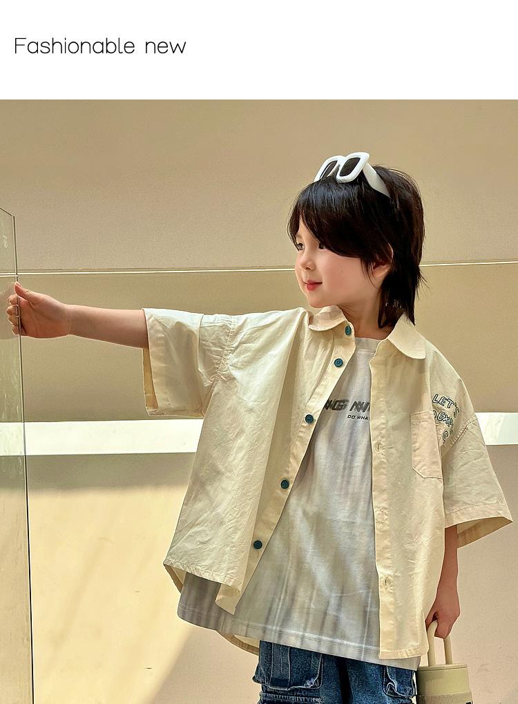 Camisa de algodón de manga corta para niños, top informal coreano fino de verano 2024, ropa de verano nueva para niños