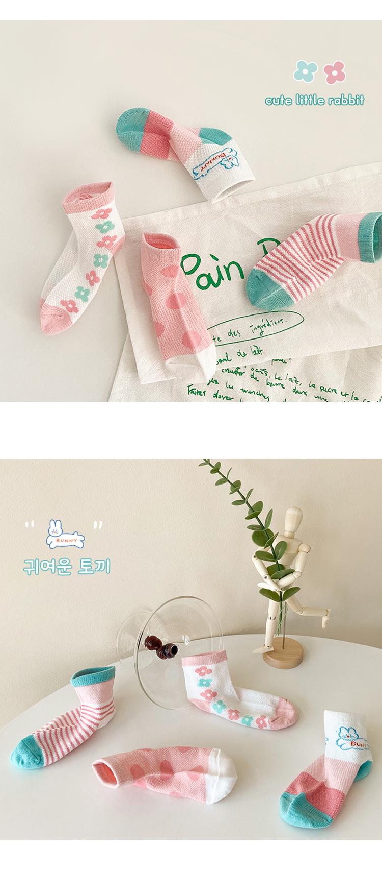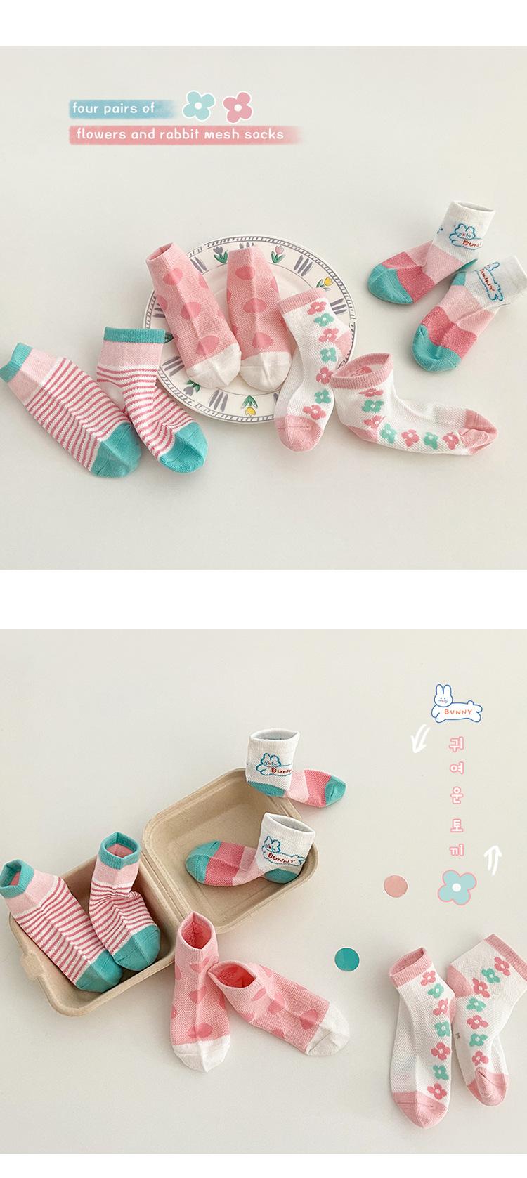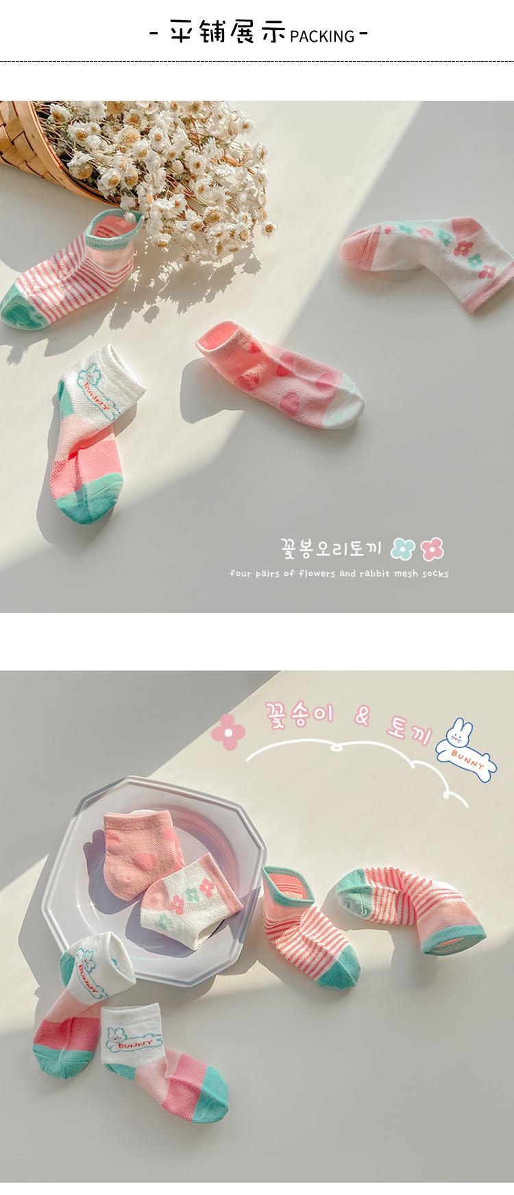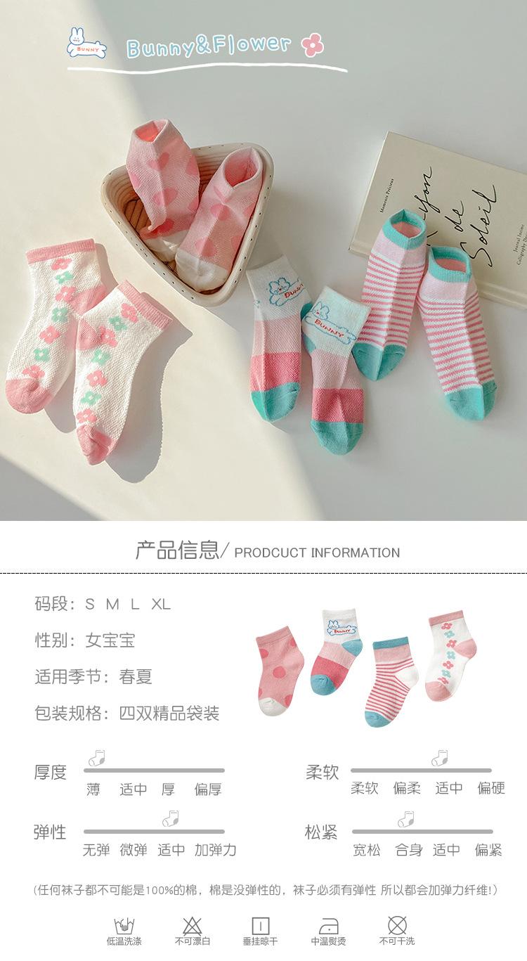1030 Calcetines para Niños al Mayoreo 2025 Primavera y Verano Calcetines Finos de Malla a Rayas con Flores Algodón Peinado Calcetines Lindos para Niñas