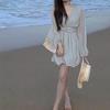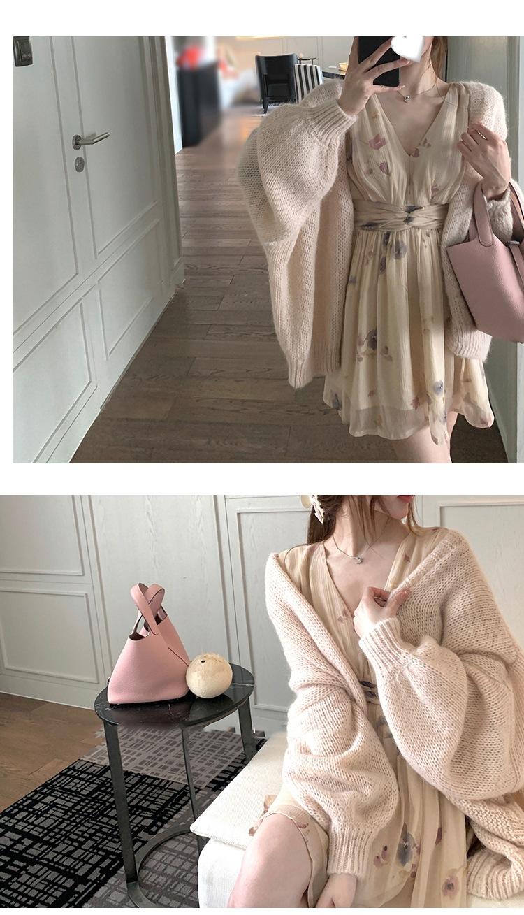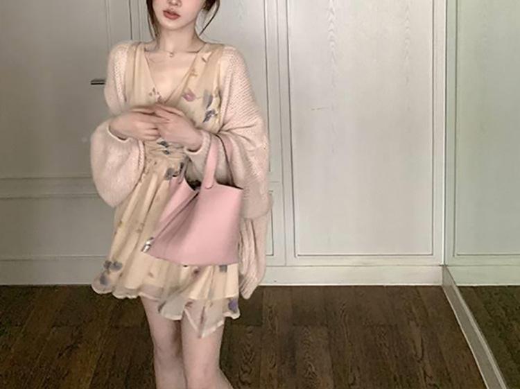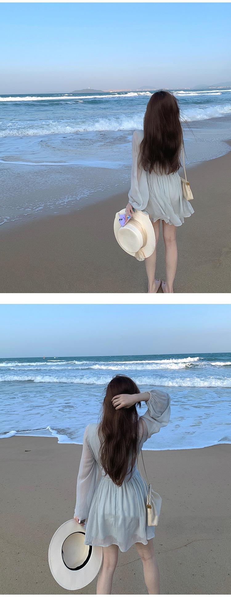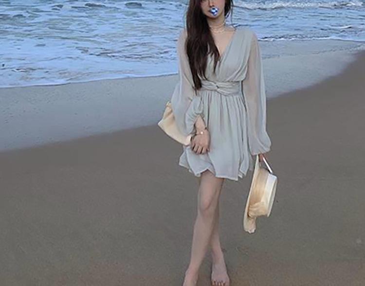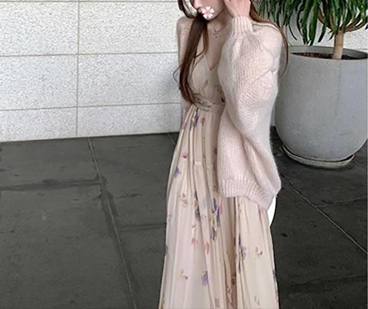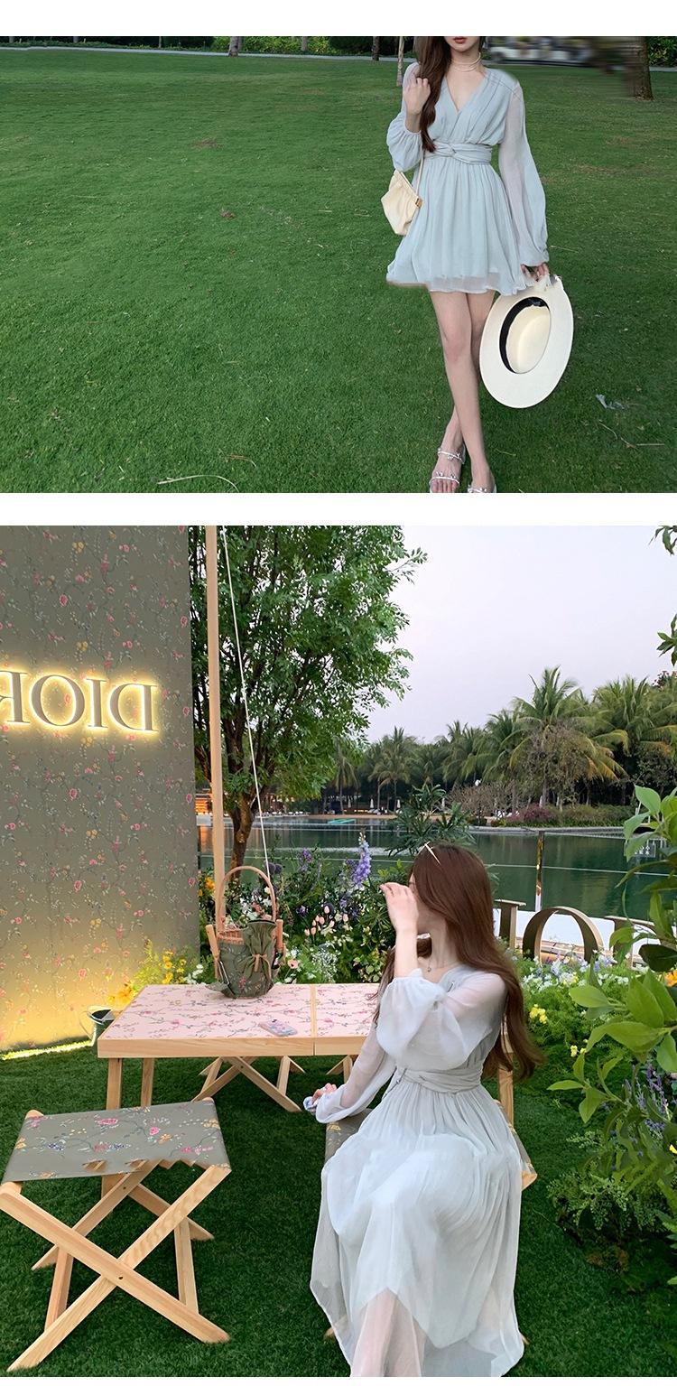 Vestido Estético de Primavera de 25 Años Chifón Falda Larga Francesa Seda de Morera Ajustado Delgado Cuello en V