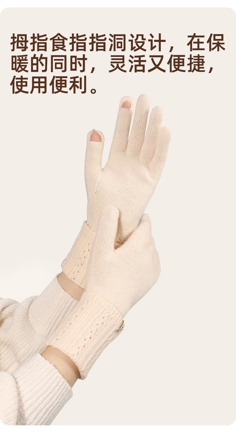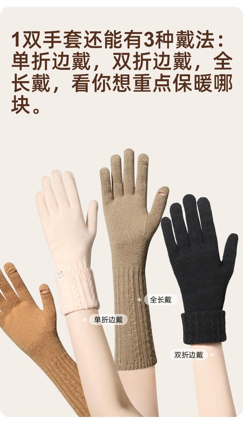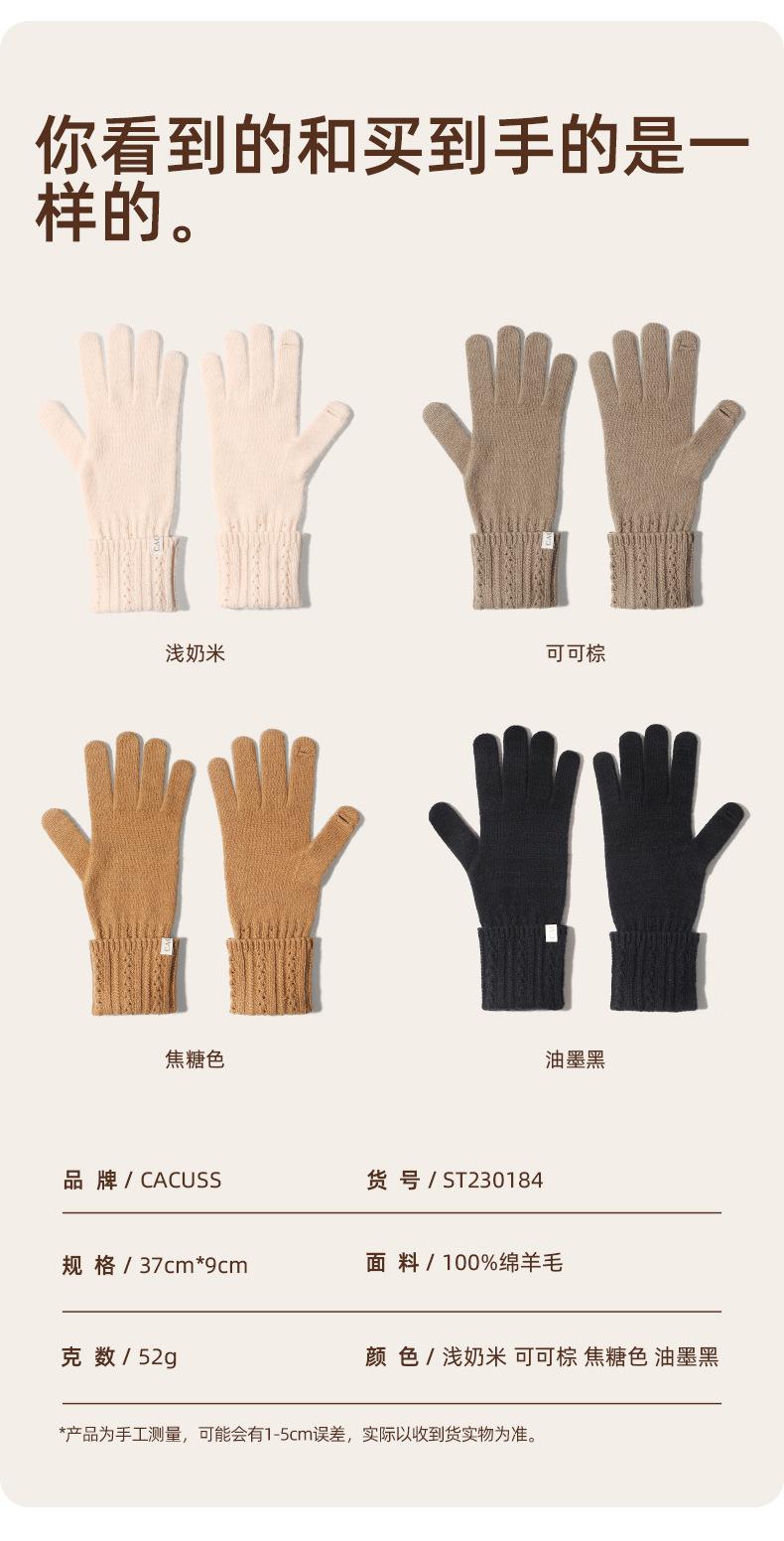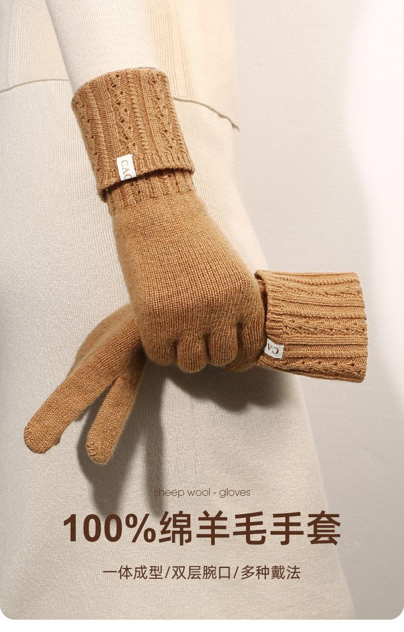 Guantes de lana pura nuevos de otoño e invierno para mujer, guantes de punto cálidos y cómodos para conducir, guantes con cubierta de dedos abierta para pantalla táctil