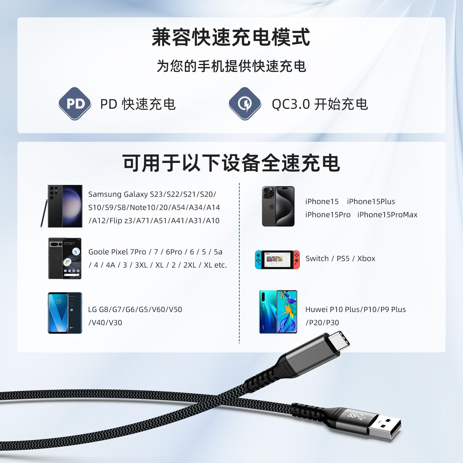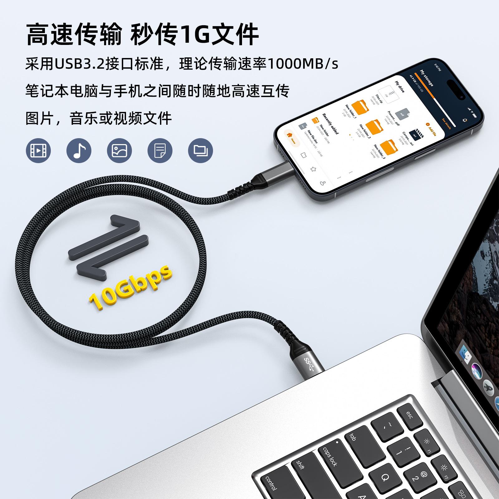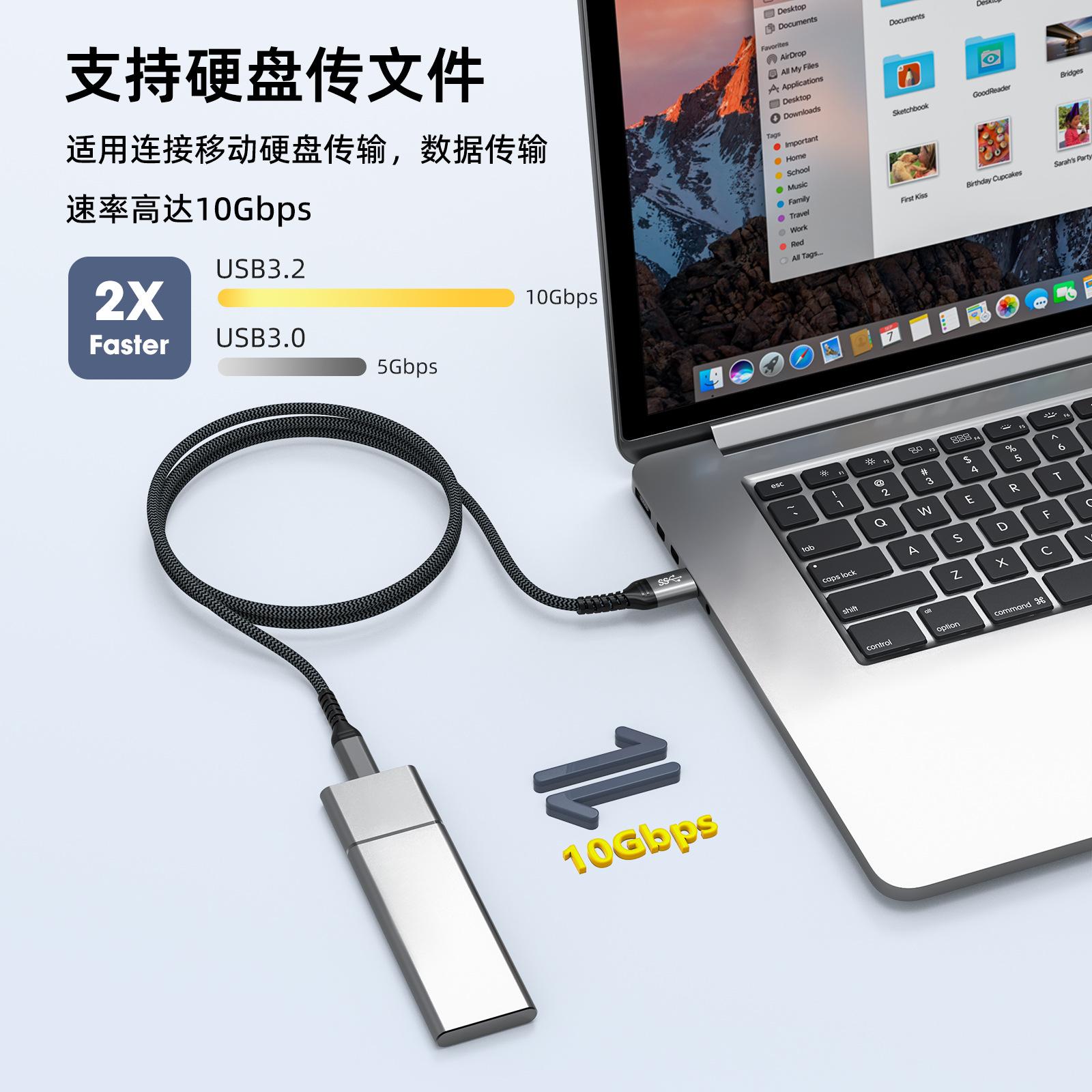 Cable de datos de disco duro móvil tipo C a USB 3.2 gen2, cable de alta velocidad de 10 Gbps para computadoras y automóviles.
