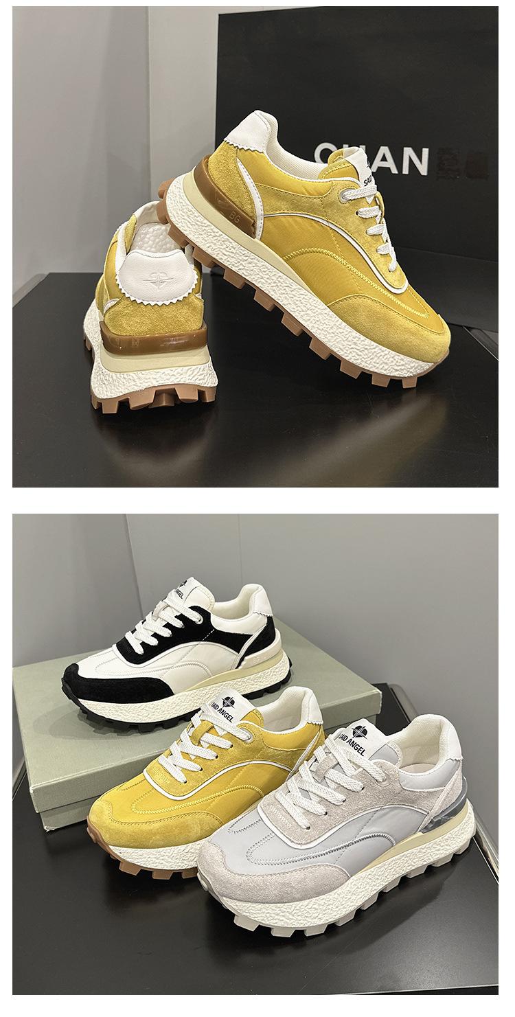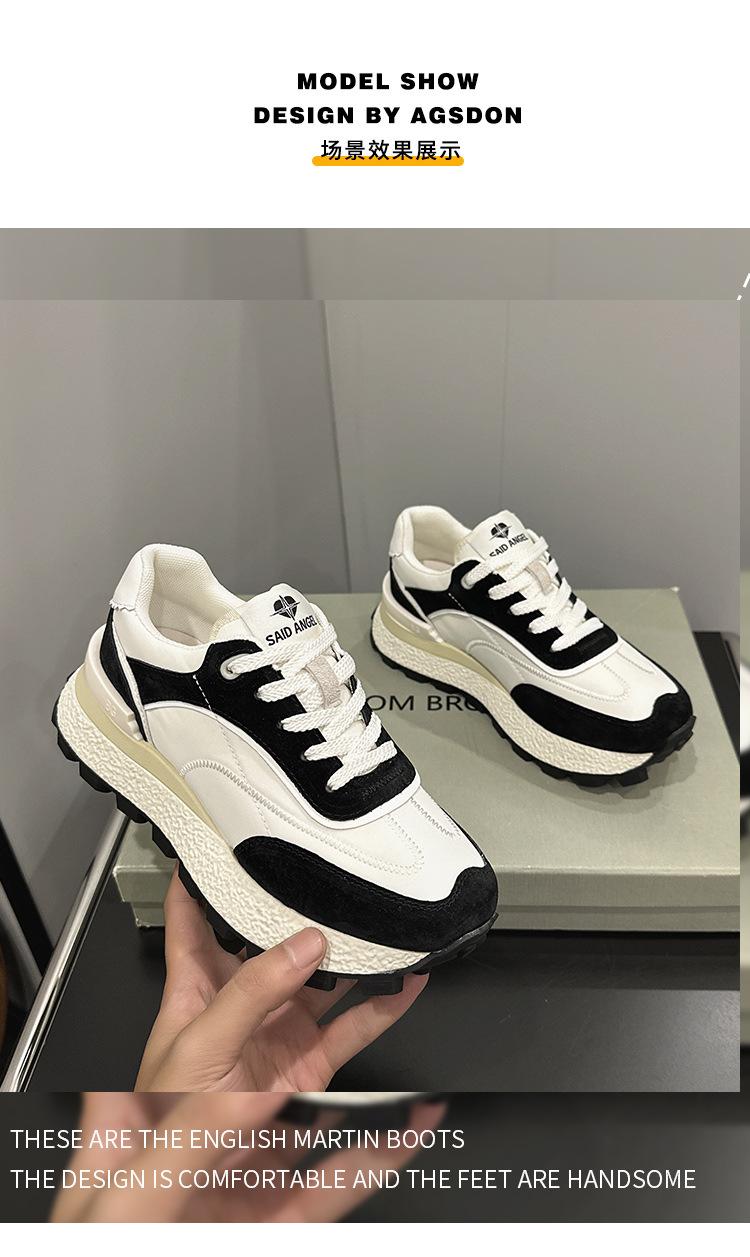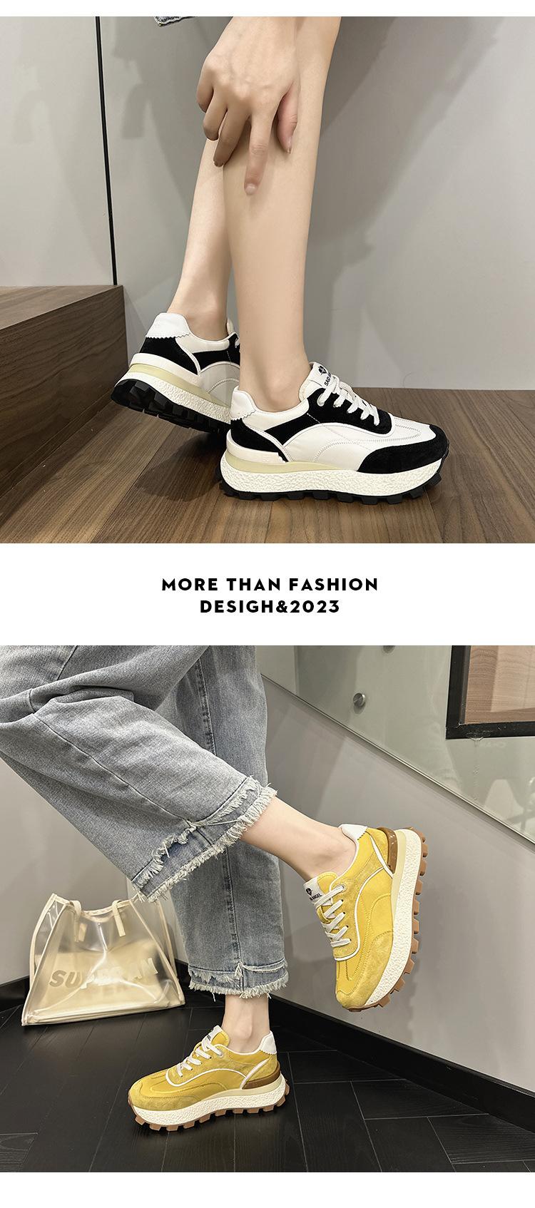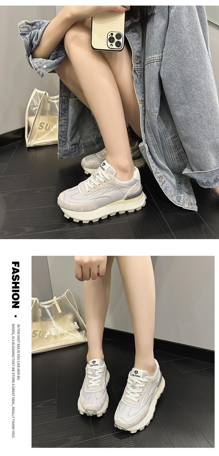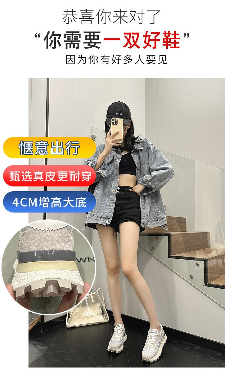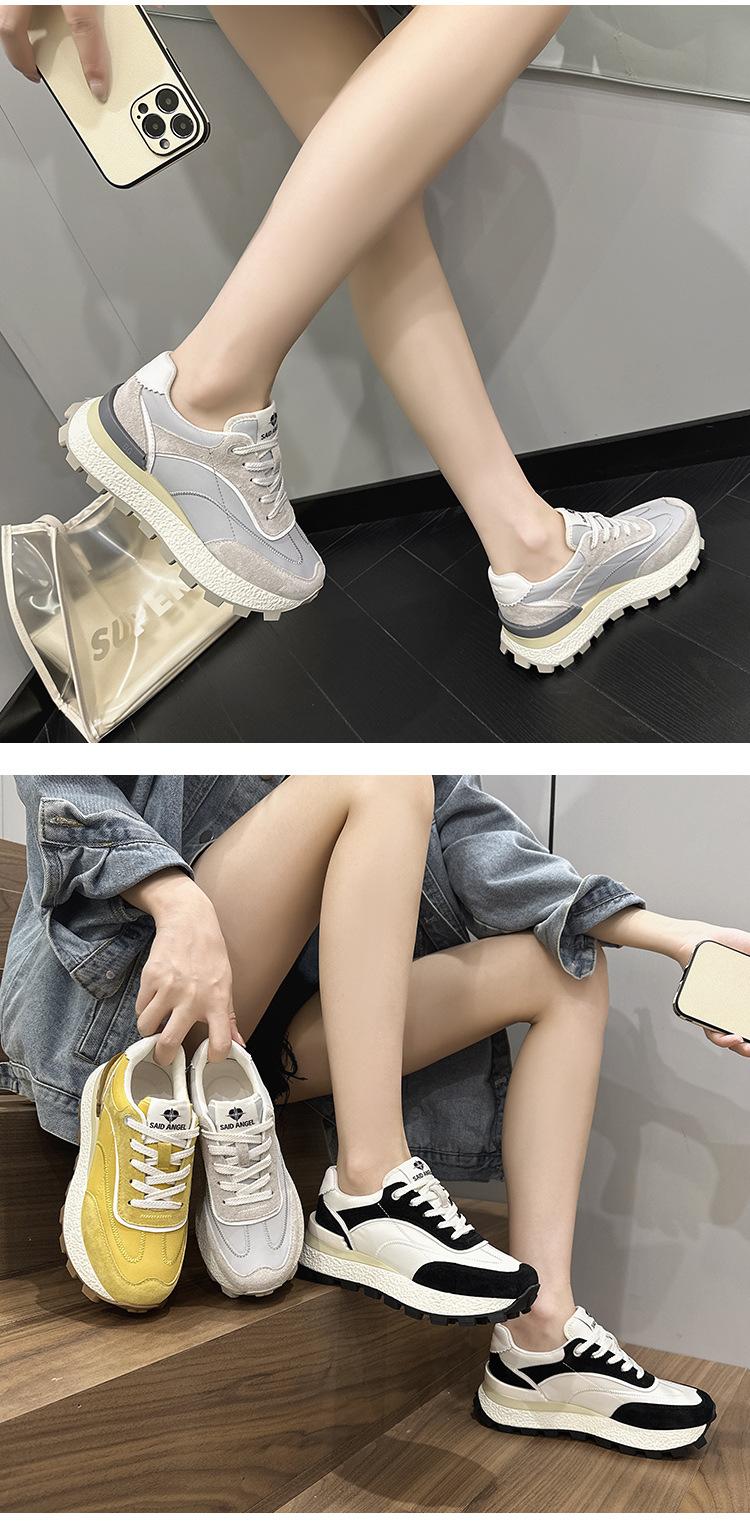Zapatos Waffle de Suela Gruesa para Mujer 2023 Estilo Verano Retro Versátil Cuero Genuino Pequeño Aumento de Altura Casual Deportes Zapatos de Papá