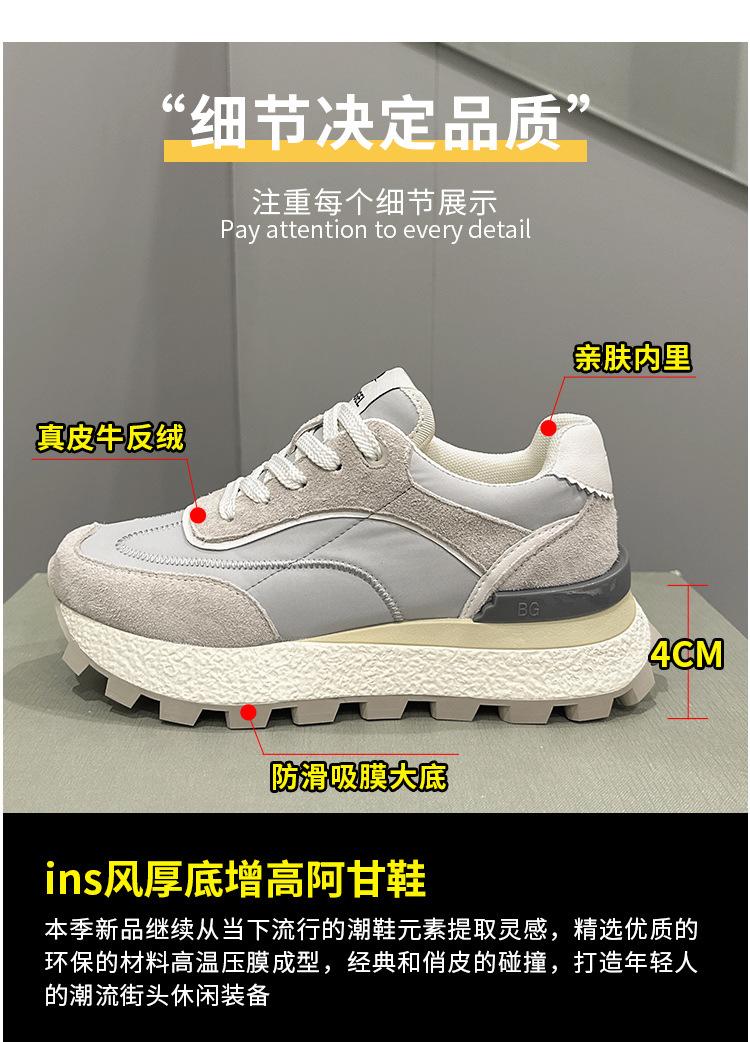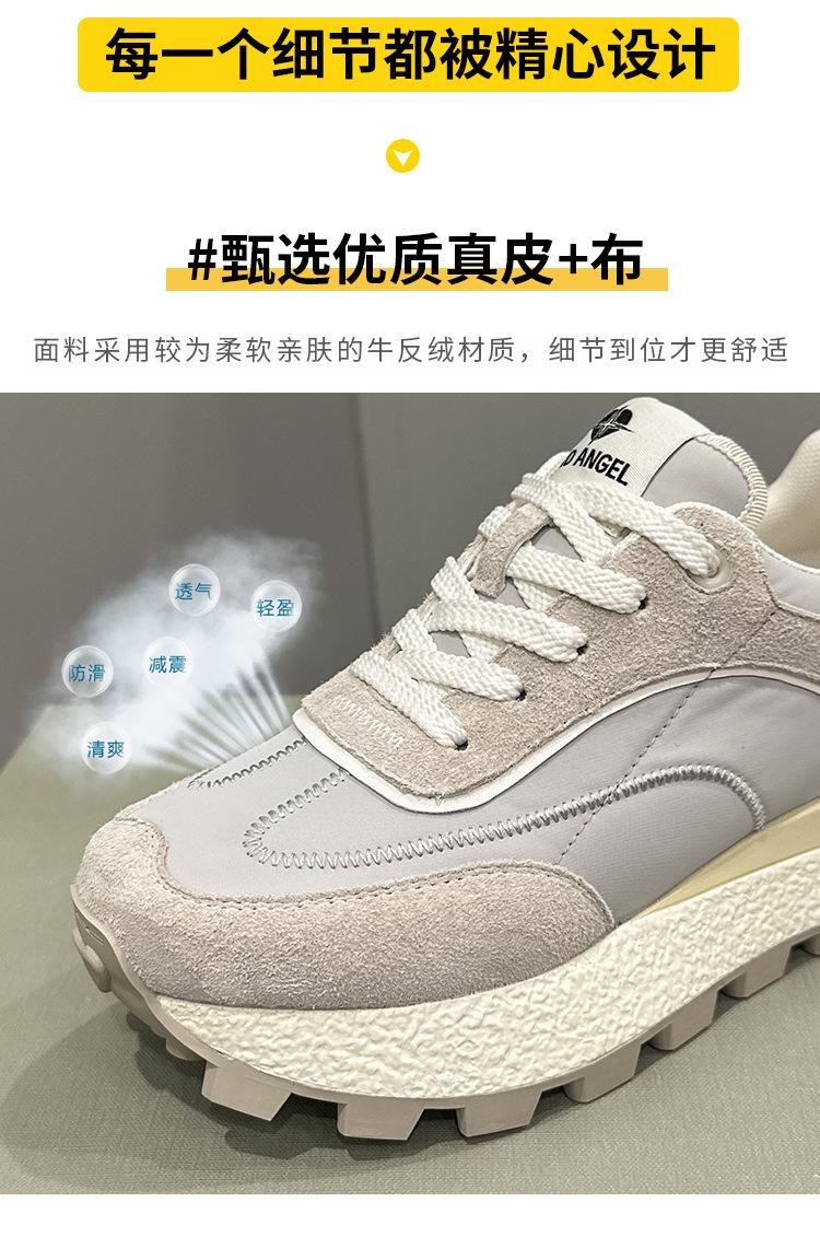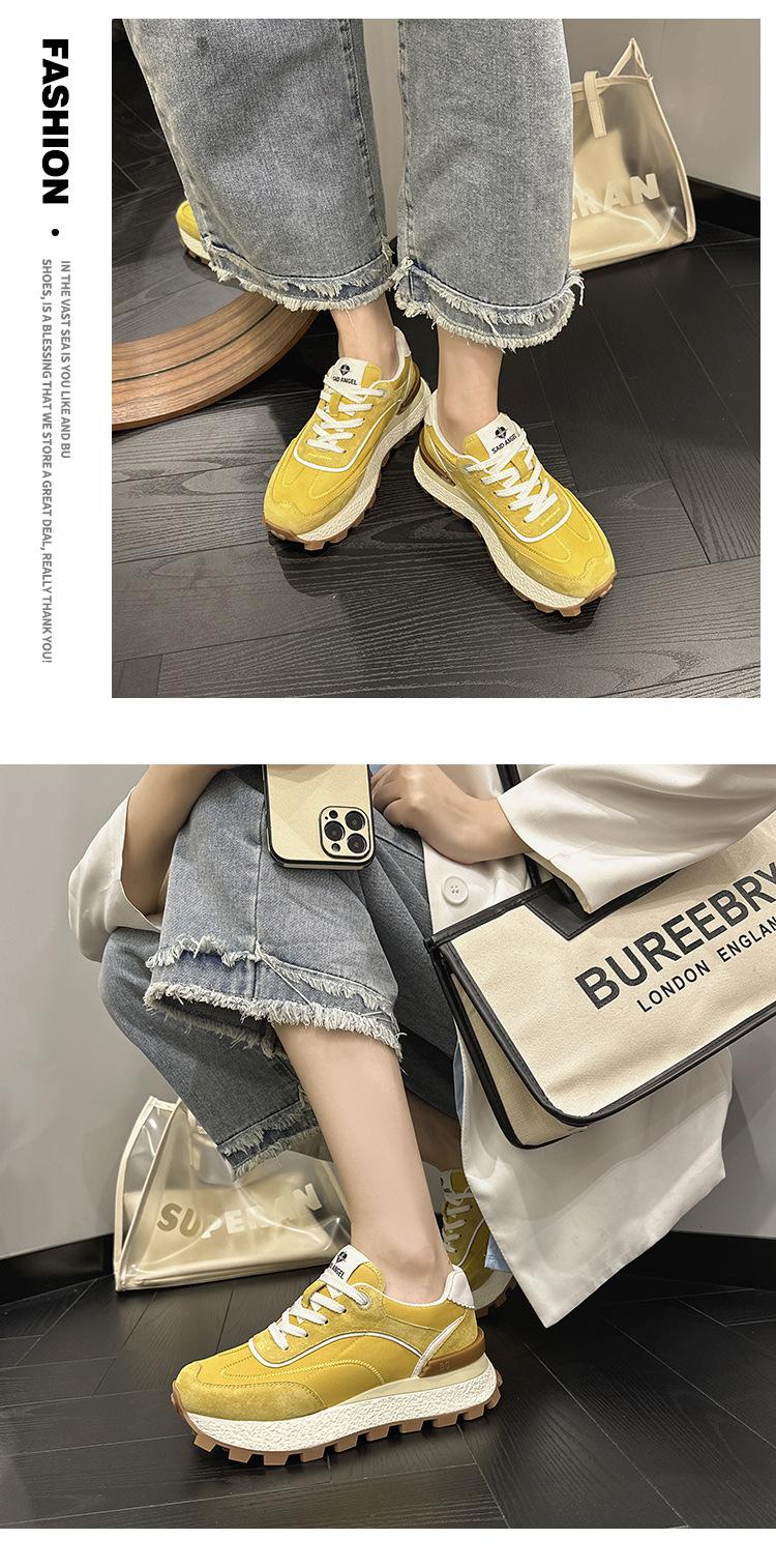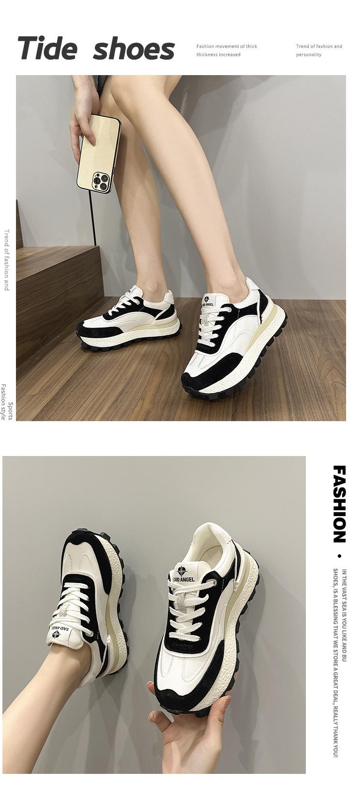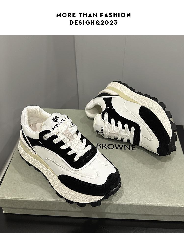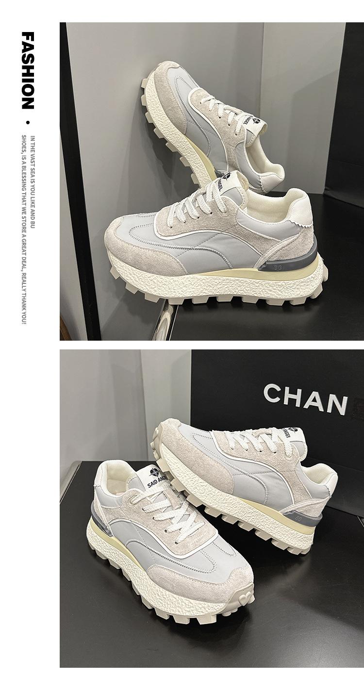 Zapatos Waffle de Suela Gruesa para Mujer 2023 Estilo Verano Retro Versátil Cuero Genuino Pequeño Aumento de Altura Casual Deportes Zapatos de Papá