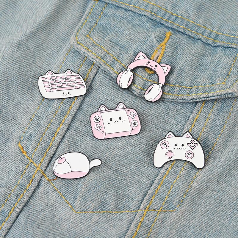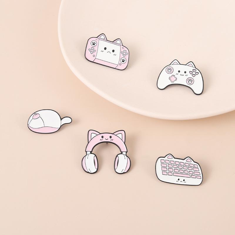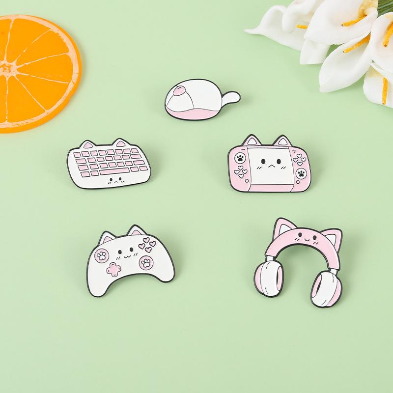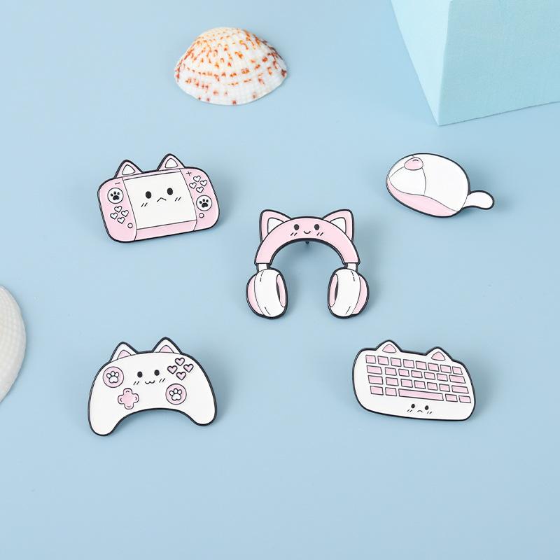 Broche Lindo Consola de Juegos Ratón Audífonos Dibujos Animados Psp Teclado Insignia de Metal Pin para Chica Hebilla para Sombrero