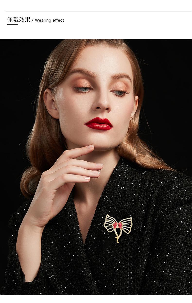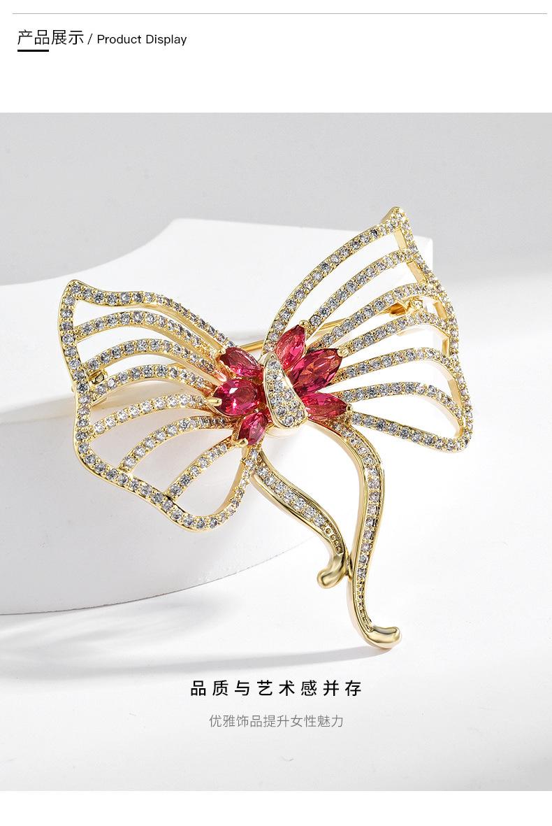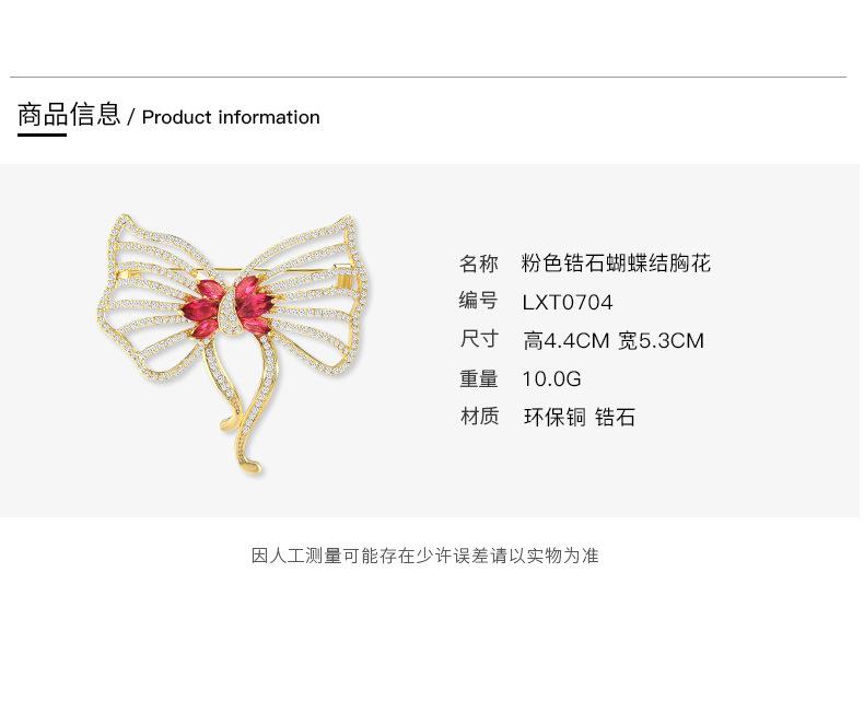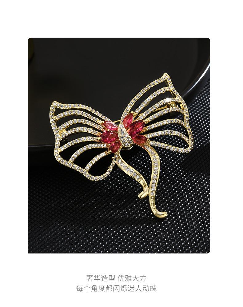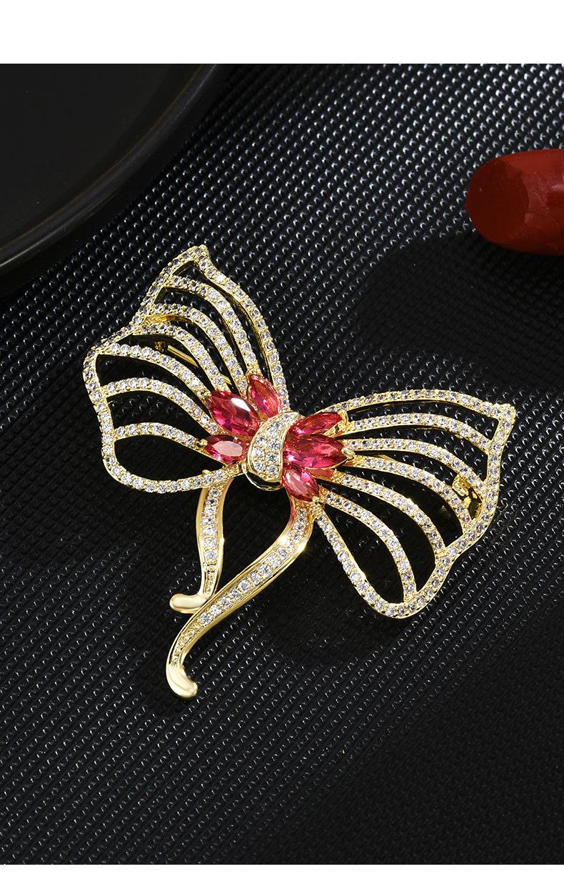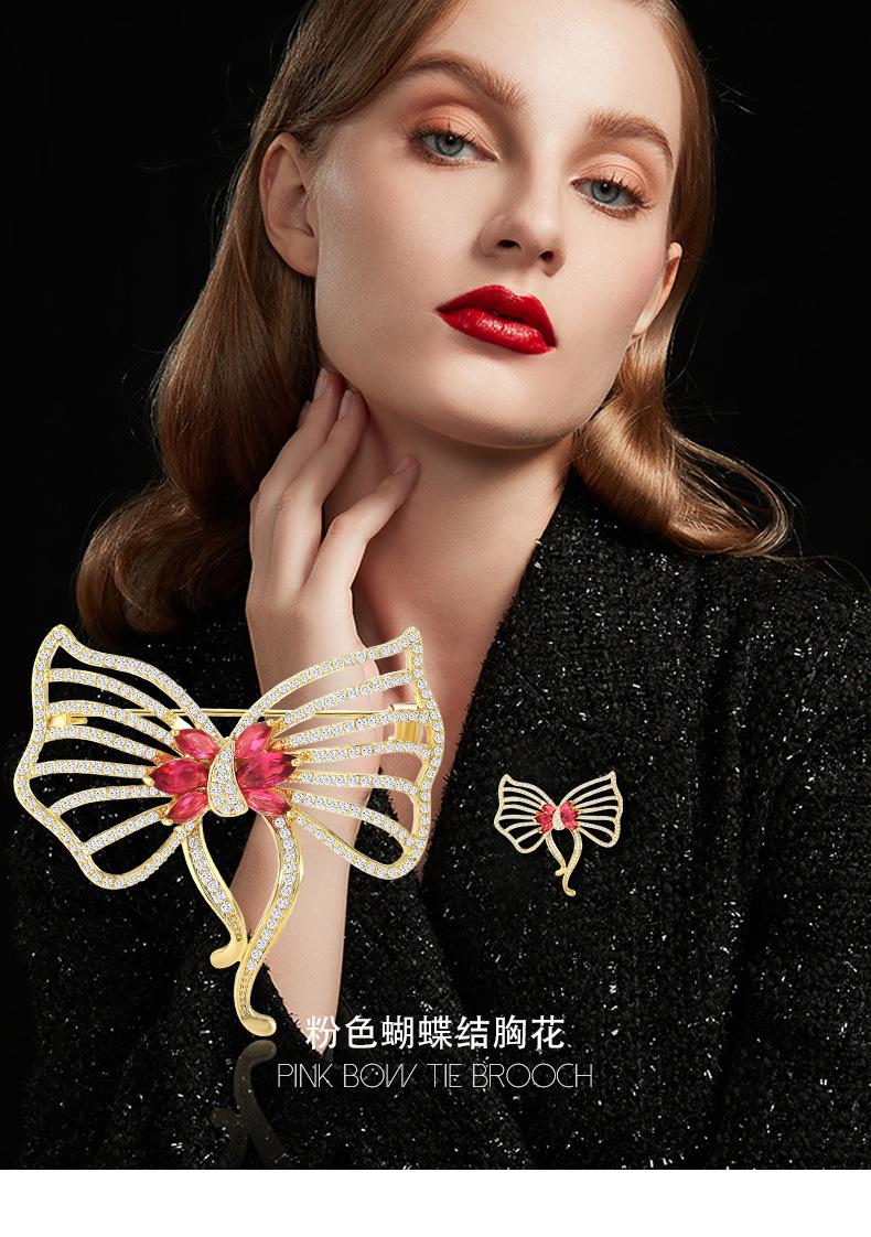Nuevo broche de lazo de circonita de alta gama para mujer, estilo japonés y coreano, ramillete rosa que combina con todo, exquisito broche de lujo, regalo