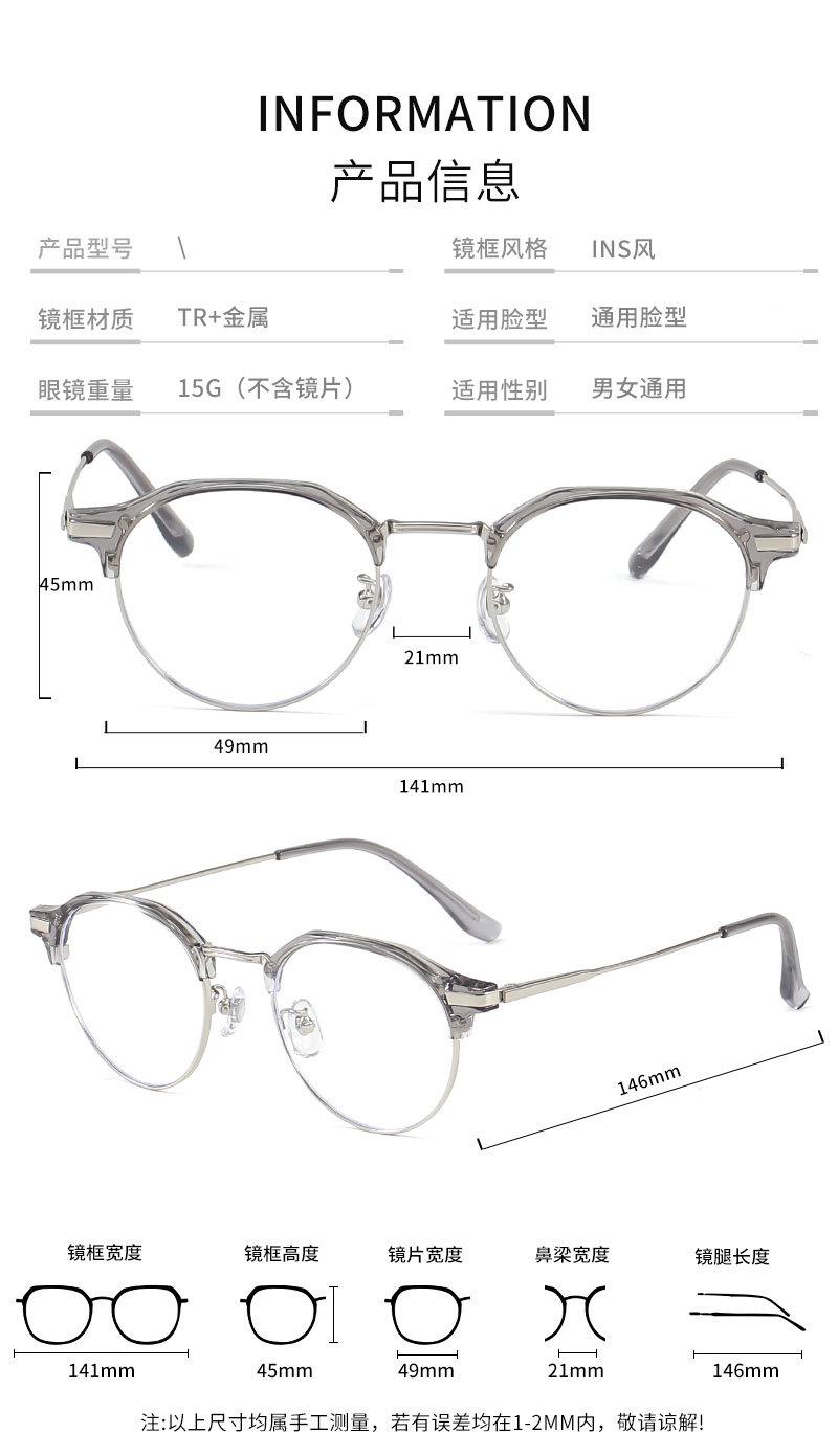 S11969 Moda Negocios Ovalado Aleación Marco Cejas Gafas Combinables Adelgazantes Rostro Libre Gafas Miopía