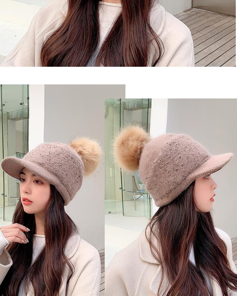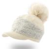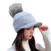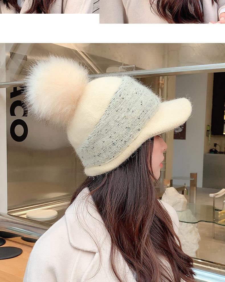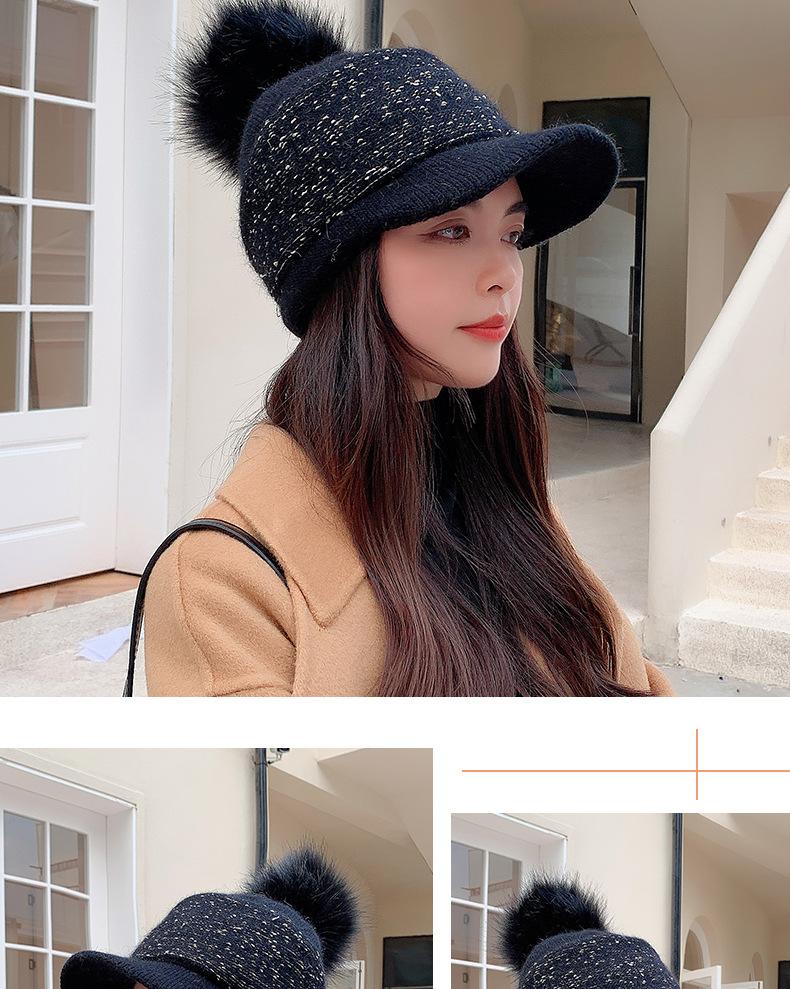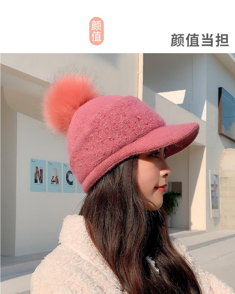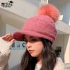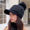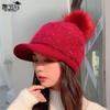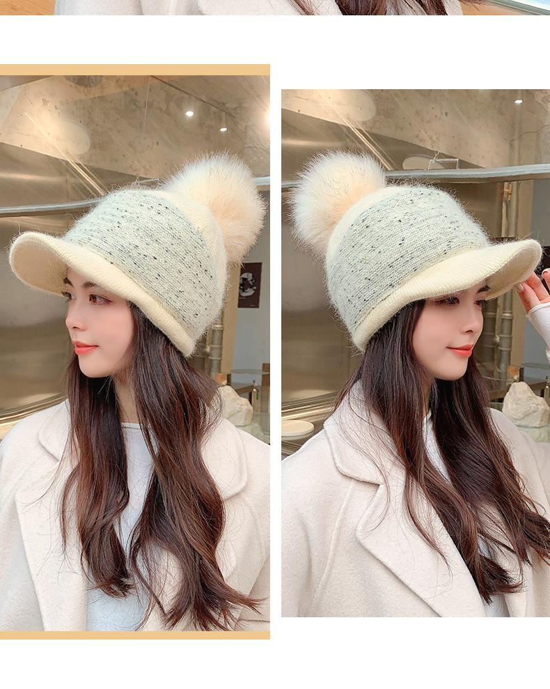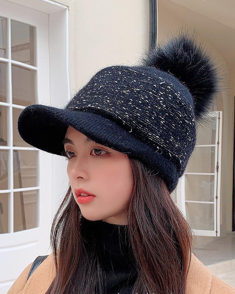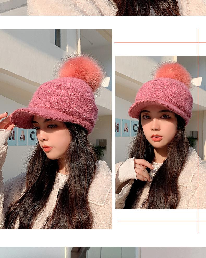 9860 Nueva Gorra de Béisbol de Piel de Conejo para Otoño e Invierno, Linda, a la Moda, con Visera, Estilo Coreano, Sombrero de Punto con Bola de Piel para Niñas