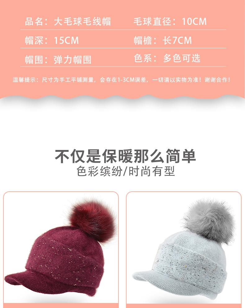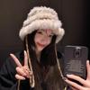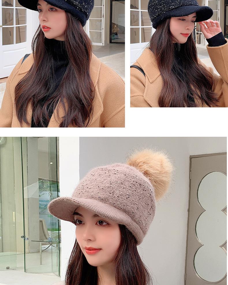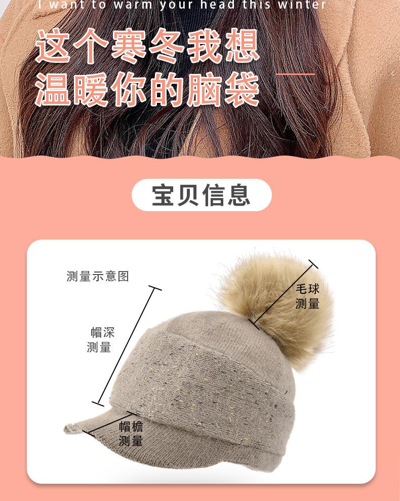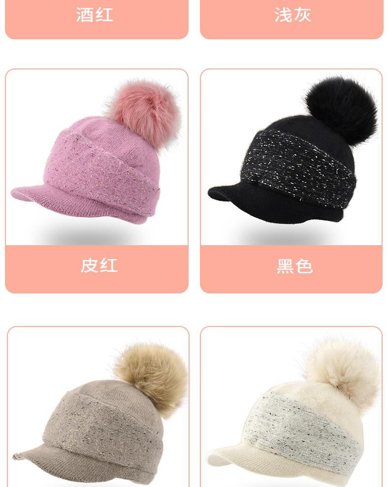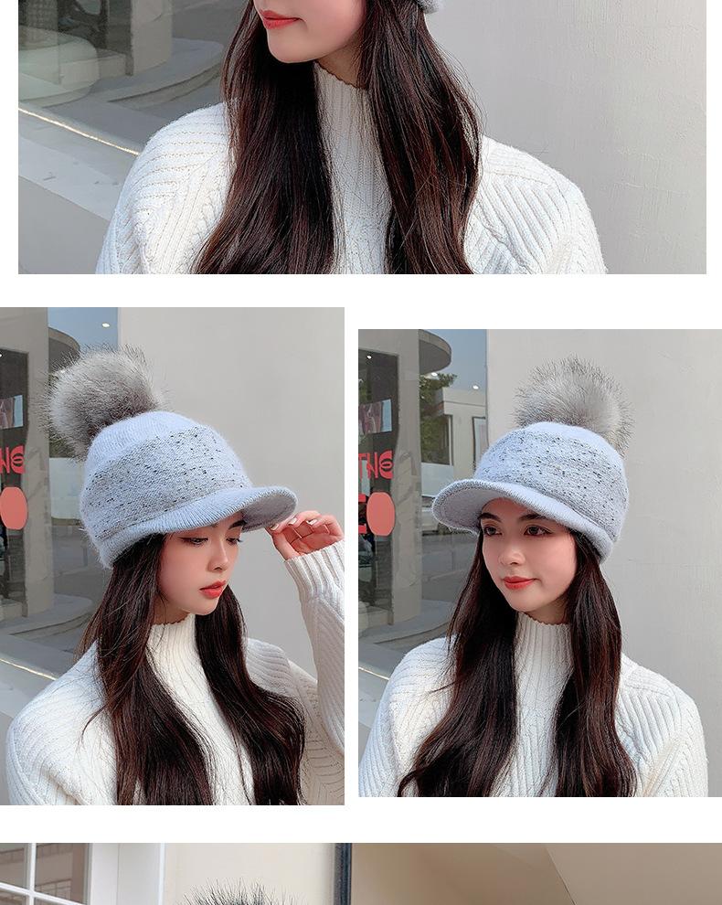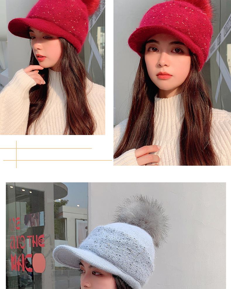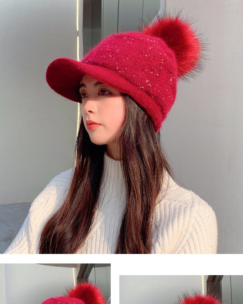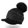 9860 Nueva Gorra de Béisbol de Piel de Conejo para Otoño e Invierno, Linda, a la Moda, con Visera, Estilo Coreano, Sombrero de Punto con Bola de Piel para Niñas