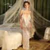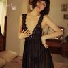 Rosa V Profundo Sexy Malla Transparente Tentación Encaje Caliente Abertura Deseo Puro Talla Grande Camisón Conjunto Ropa para el Hogar 725