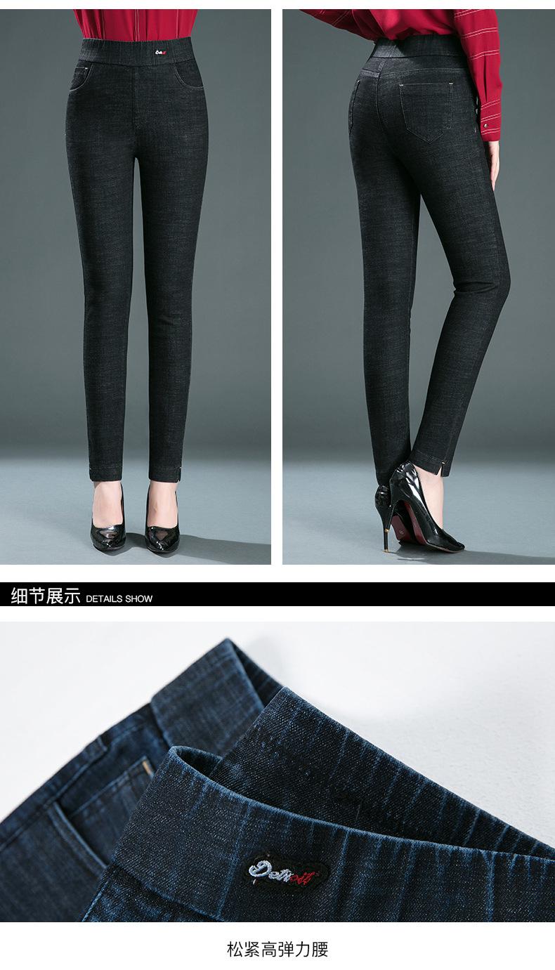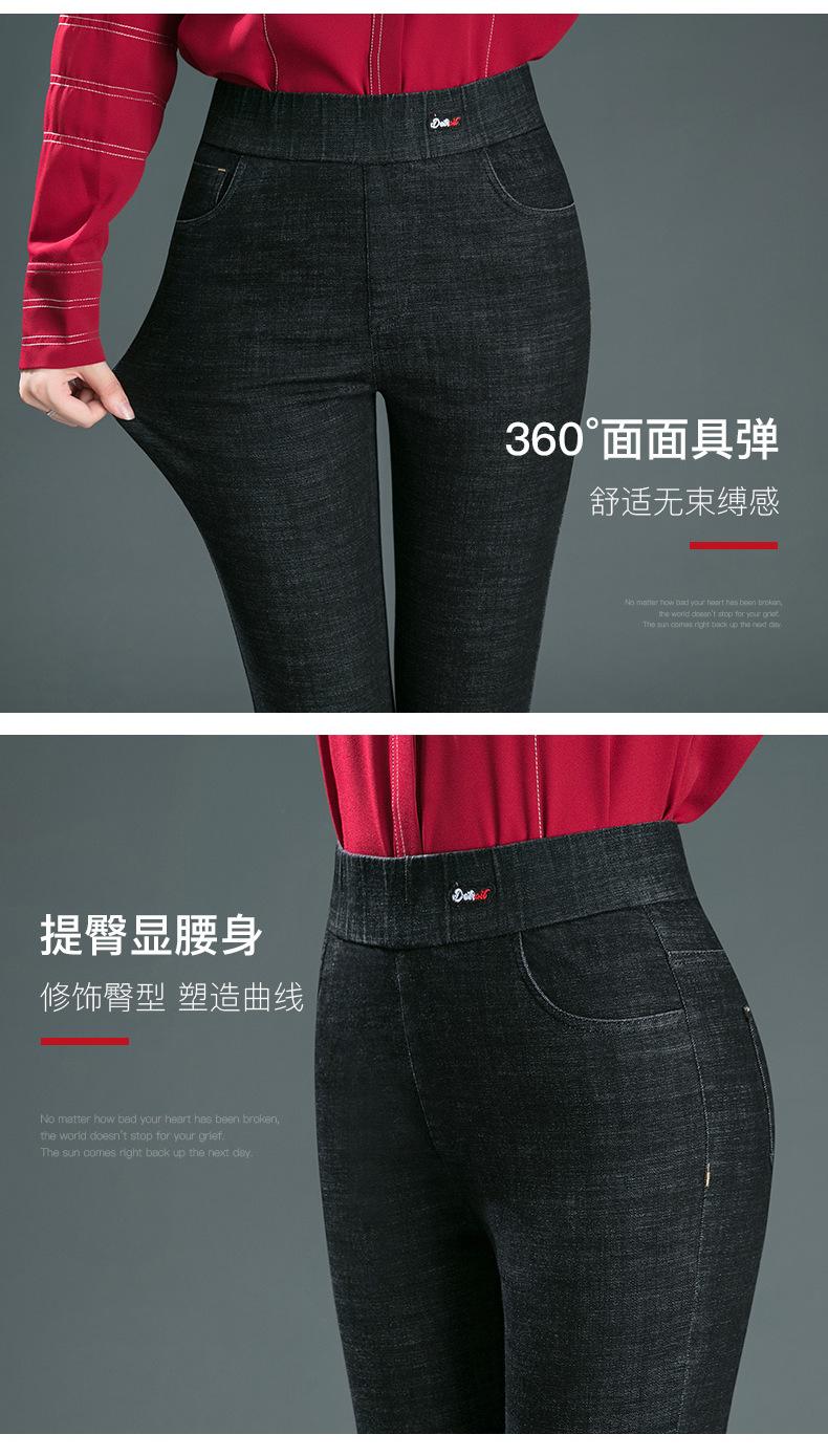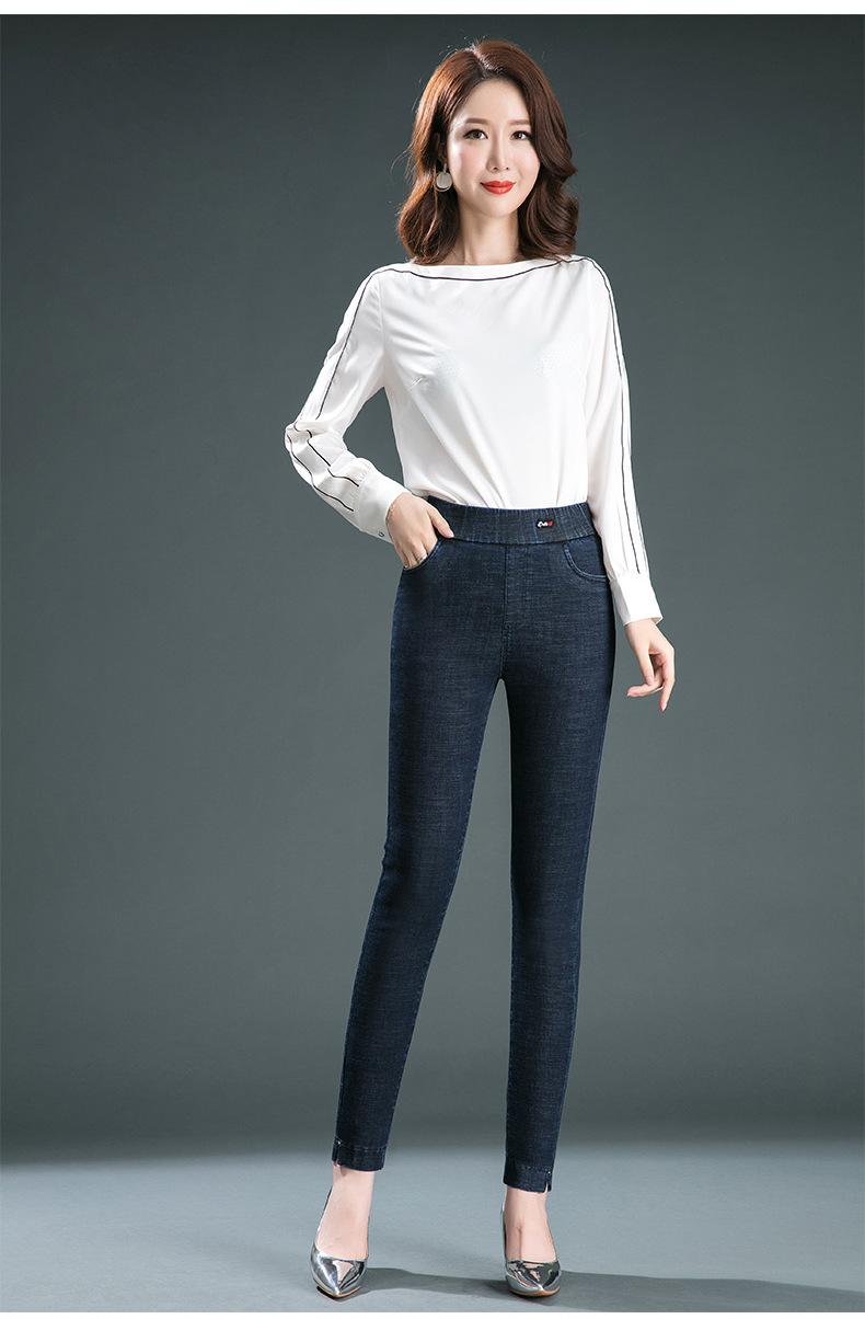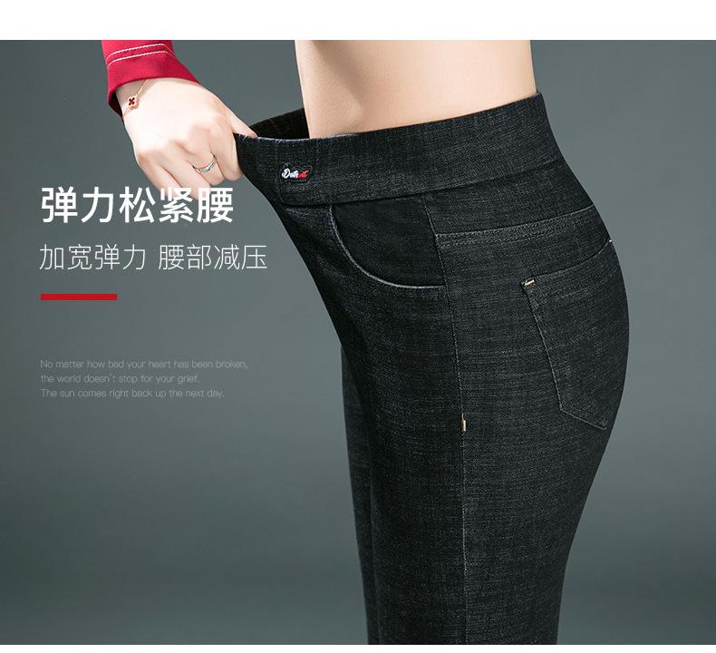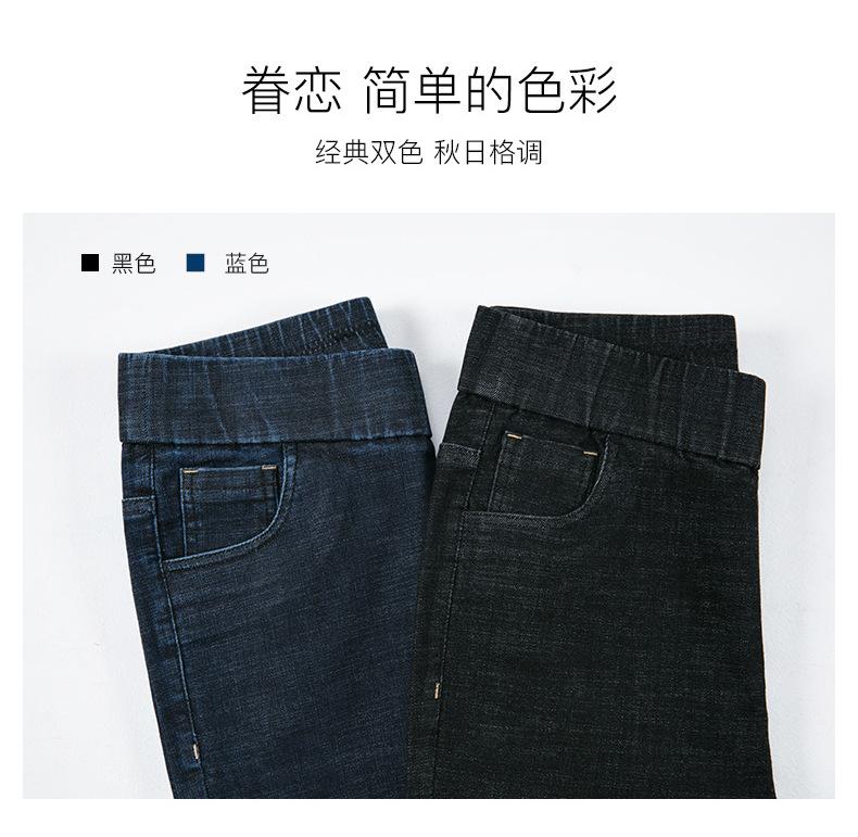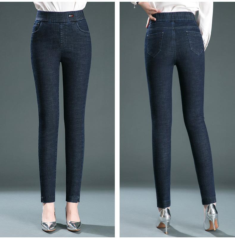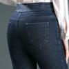 Jeans de Cintura Alta para Mujer para Otoño, Cintura Elástica, Pantalones Lápiz Negros, Ajustados, Pantalones de Talla Grande para Mamás de Mediana Edad