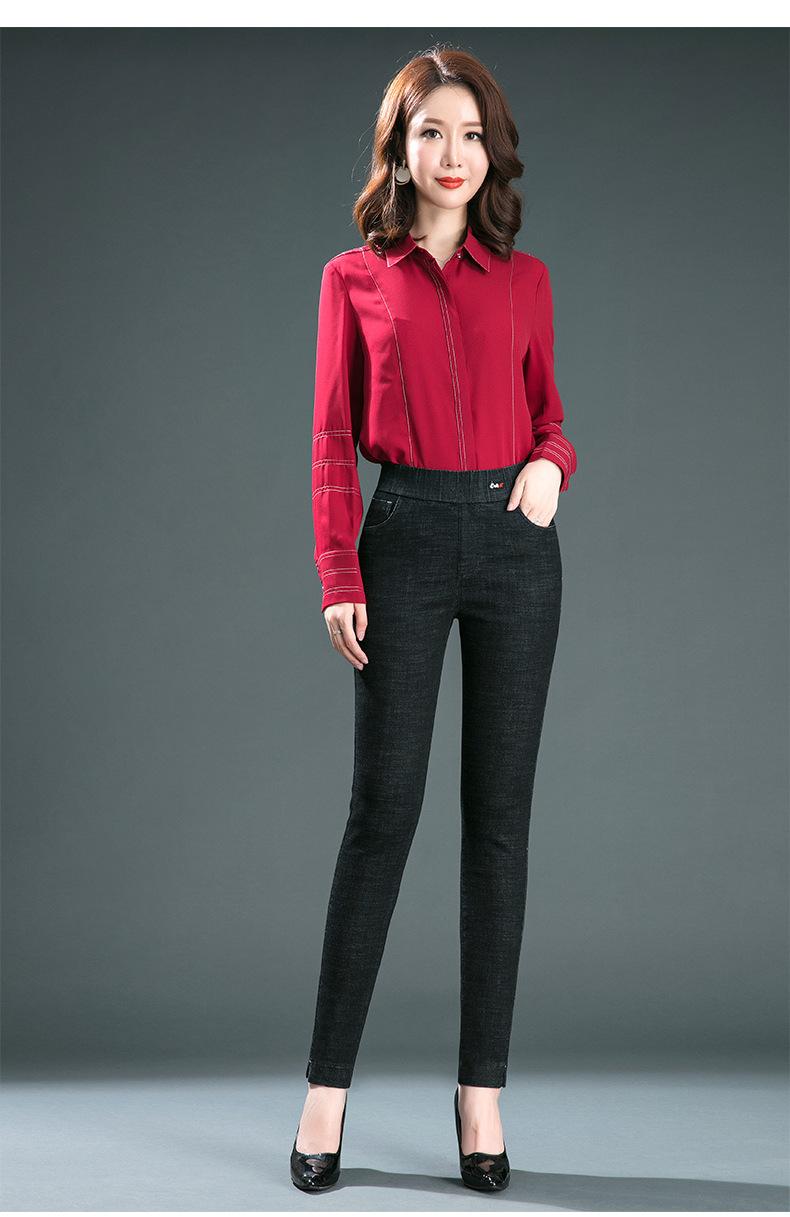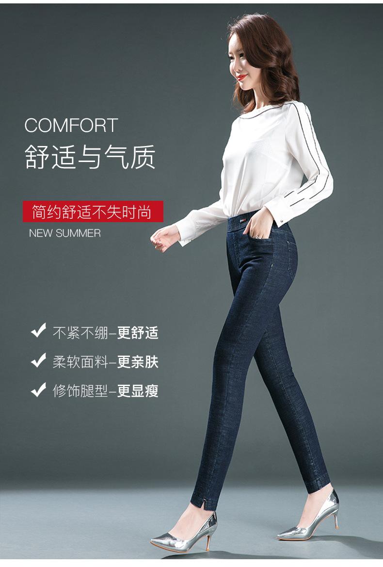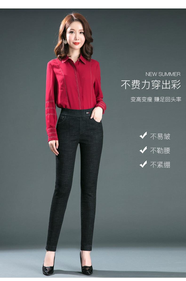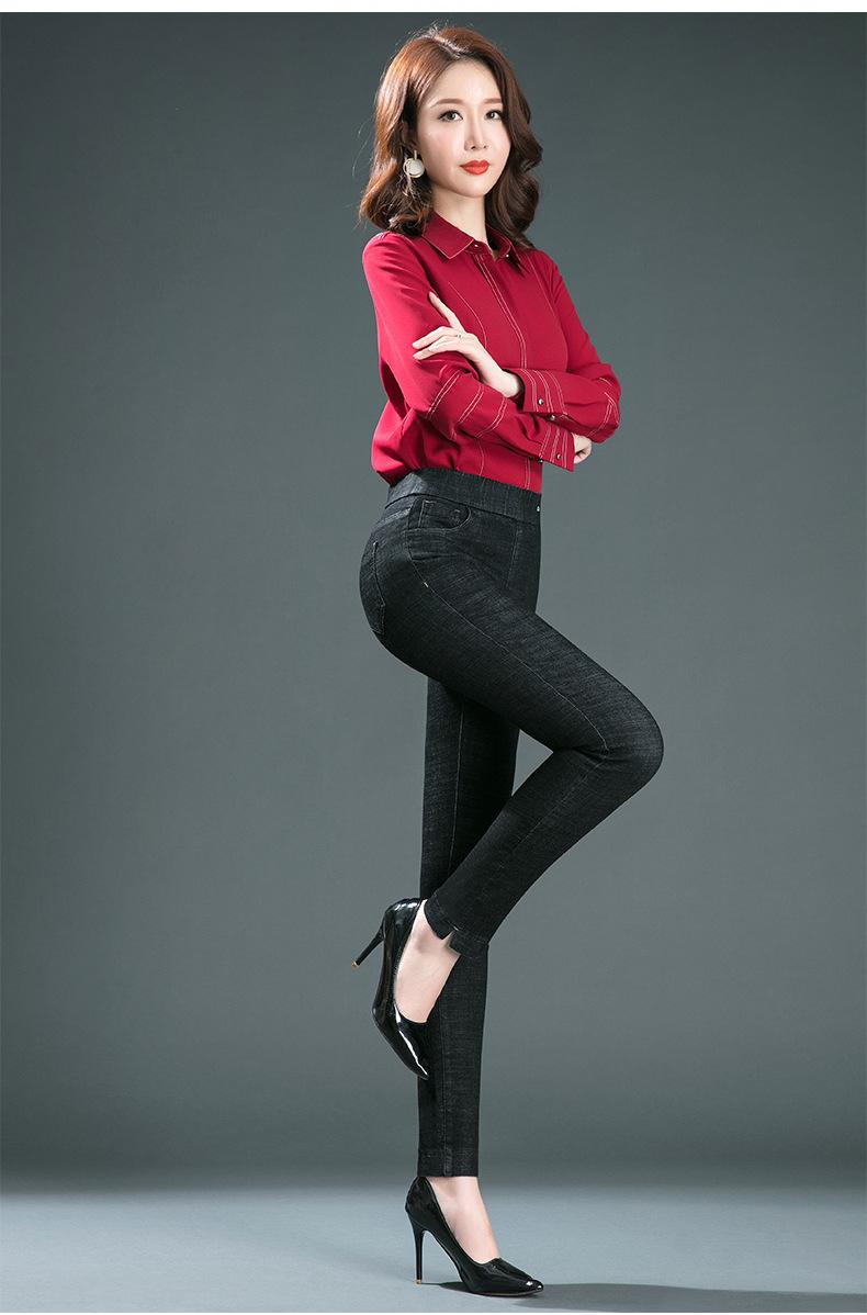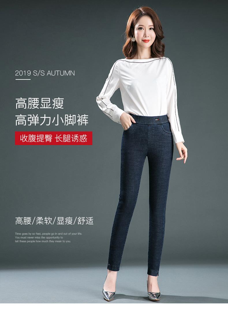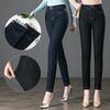 Jeans de Cintura Alta para Mujer para Otoño, Cintura Elástica, Pantalones Lápiz Negros, Ajustados, Pantalones de Talla Grande para Mamás de Mediana Edad