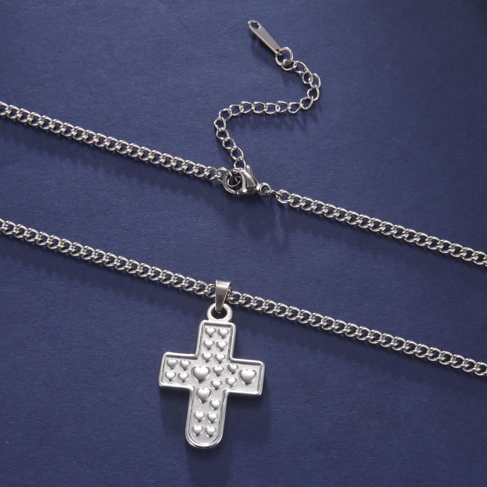 Collar de acero de titanio sencillo con colgante de cruz de amor, estilo transfronterizo europeo y americano, de acero inoxidable, moderno, para hombres y mujeres.