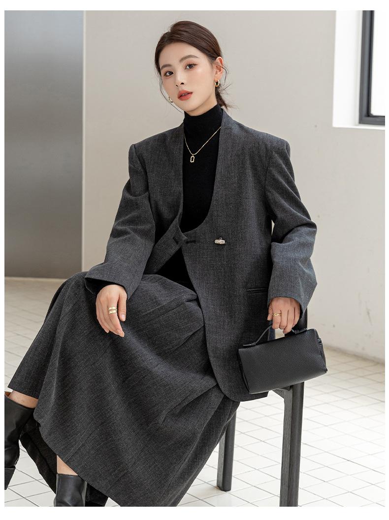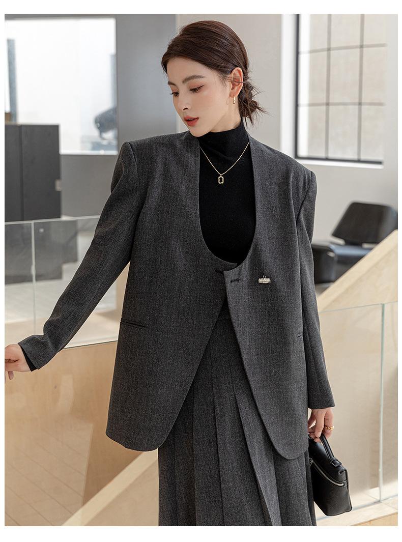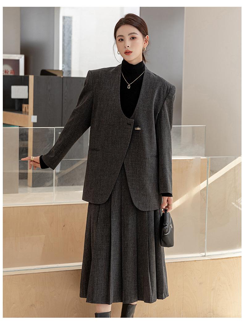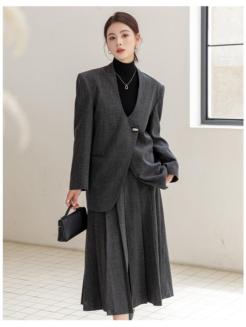 Traje de Moda Jilsande para Mujer Primavera y Otoño Chaqueta de Traje Holgada de Alta Gama Falda Plisada Traje de Falda de Dos Piezas
