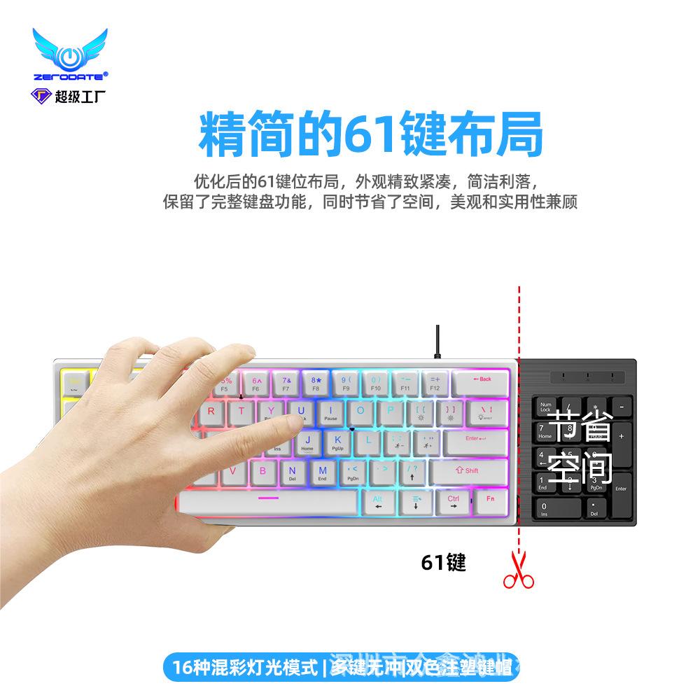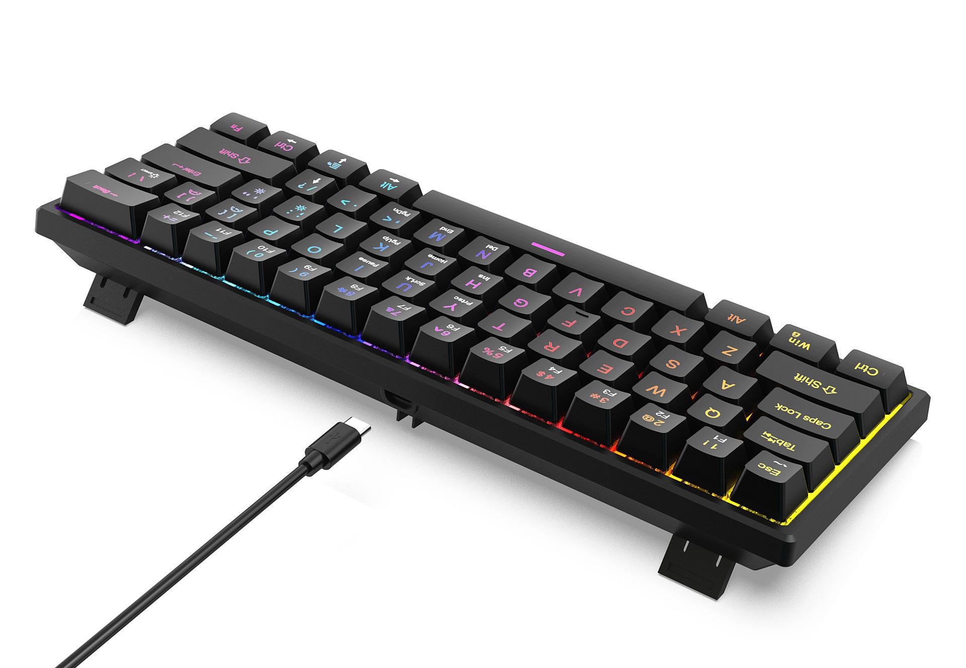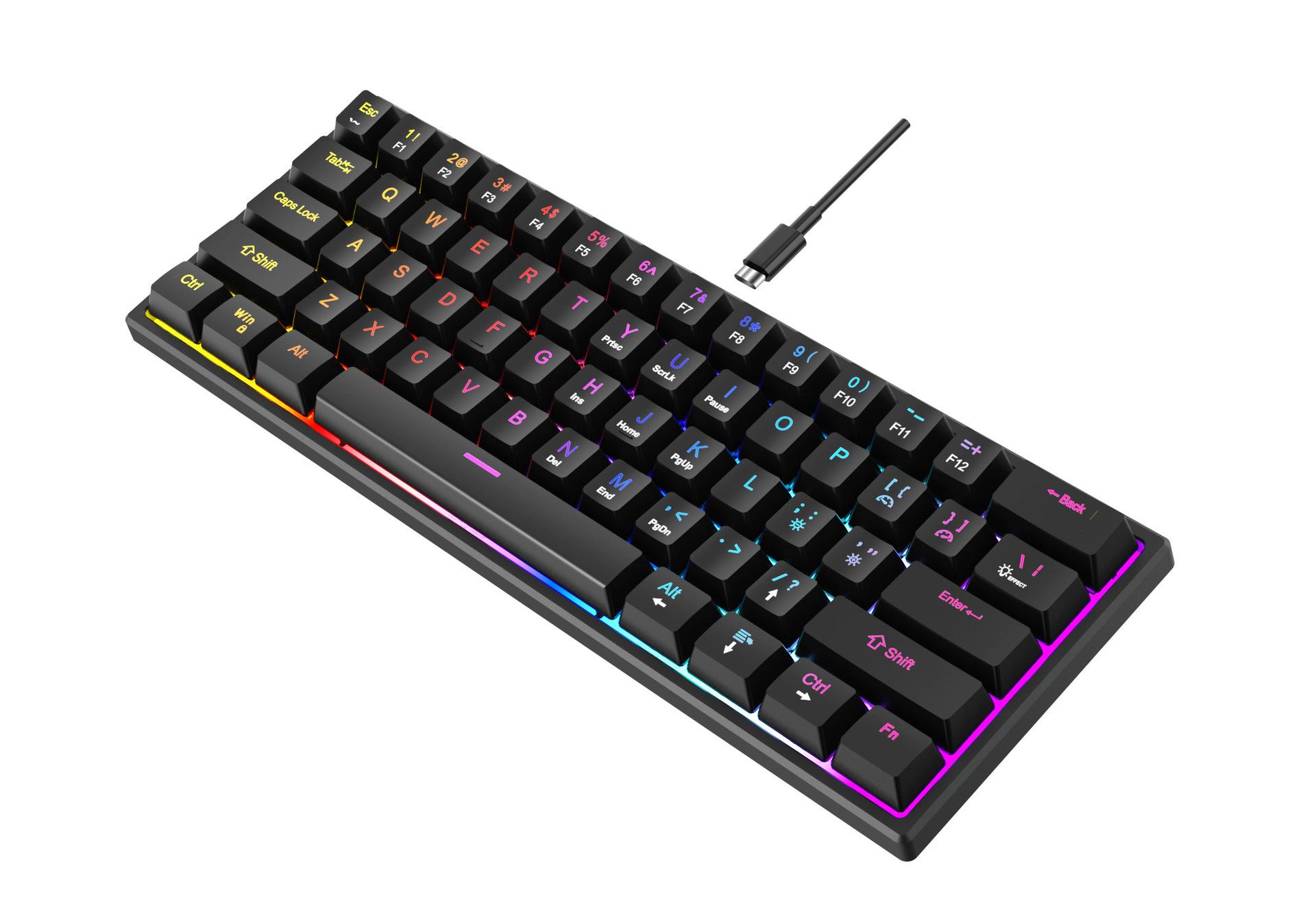 Teclado mecánico con cable K61, eje verde, RGB, para juegos de deportes electrónicos, luminoso, portátil, tipo C, venta al por mayor transfronteriza