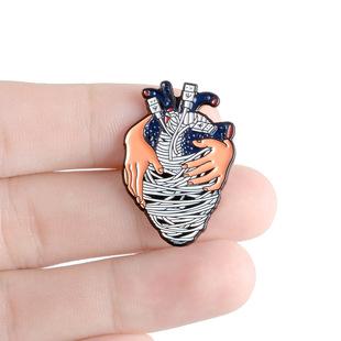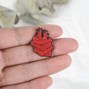 | Broche de joyería de comercio exterior, popular en Europa y América, con dibujos animados de brazos abrazados, broche creativo de corazón rojo, accesorios de ropa |
