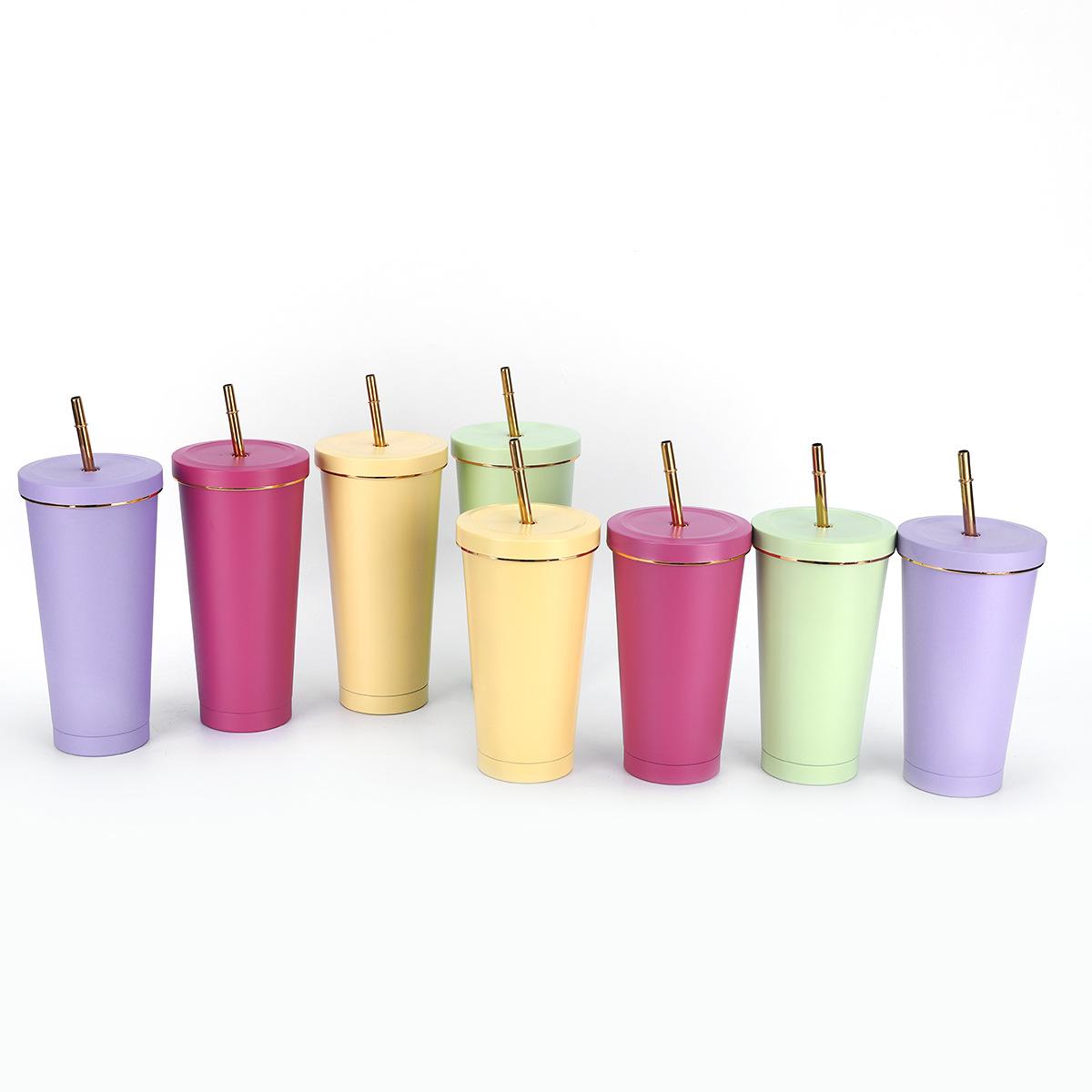 Taza de vacío de acero inoxidable 304 transfronteriza para oficina, taza de café de color sólido de alto color, taza de tubo de succión de gran capacidad para exteriores