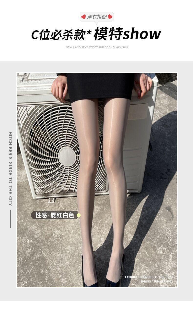 Medias sexis finas de seda con aceite de caballo, suaves y brillantes, sin pies, de seda negra, Aurora