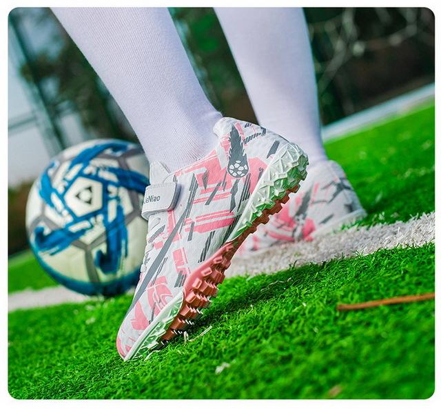 Auténticos zapatos de fútbol nuevos para niños al por mayor zapatos de entrenamiento verano transpirables zapatos de fútbol para estudiantes de primaria zapatos con tacos rotos hombres y mujeres
