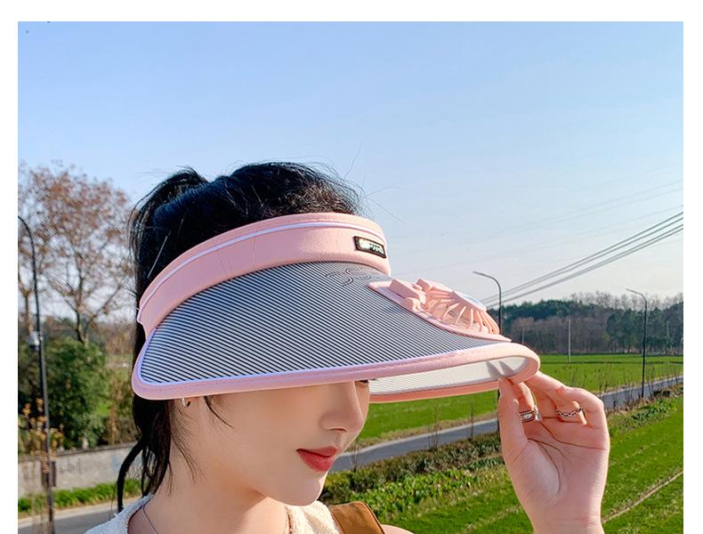 8193 Nuevo Sombrero de Verano para Protección Solar para Mujer con Ala Grande y Abanico Sombrero de Copa Vacía que Muestra el Rostro Sombrero de Sol Pequeño Sombrero de Sol para Exterior