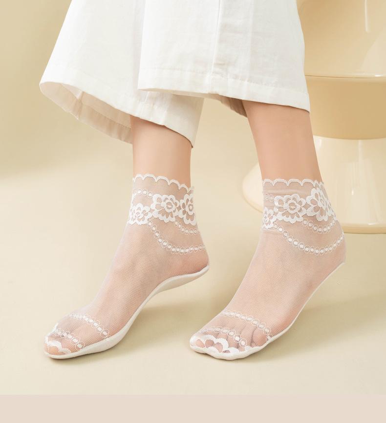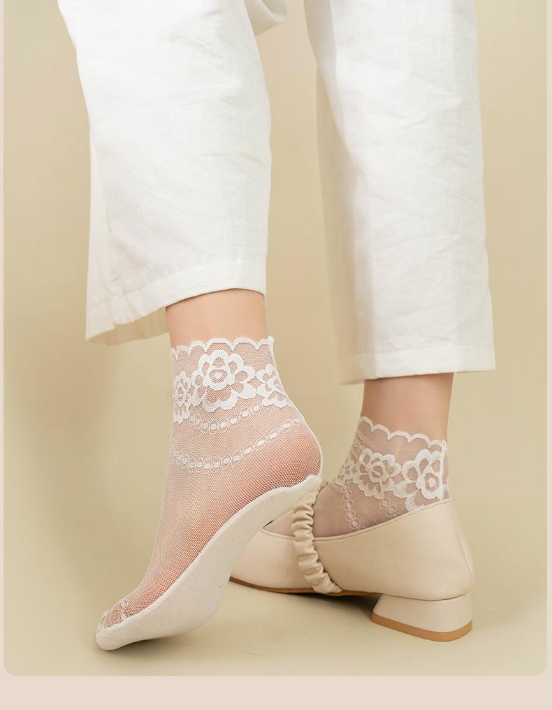 Calcetines de mujer de primavera y verano, calcetines finos de encaje, calcetines de algodón transpirables absorbentes del sudor con calcetines invisibles al por mayor