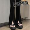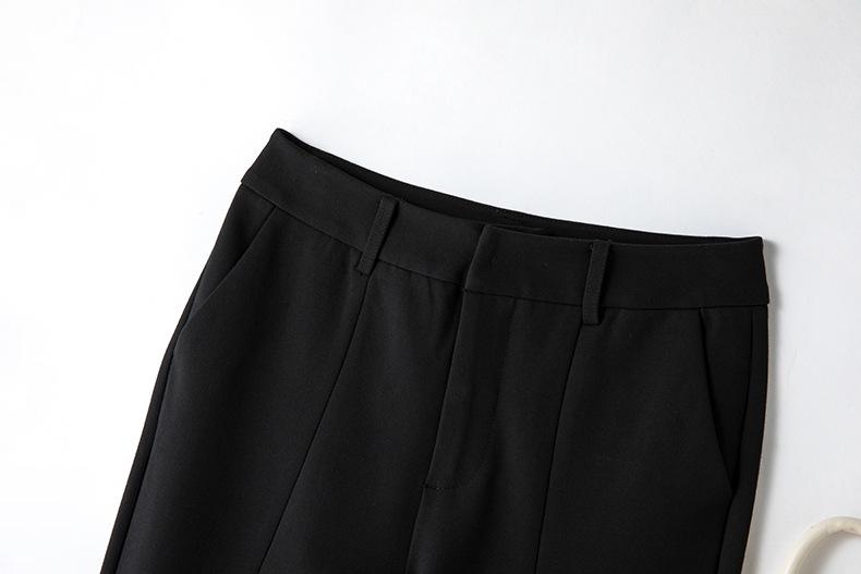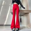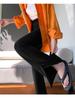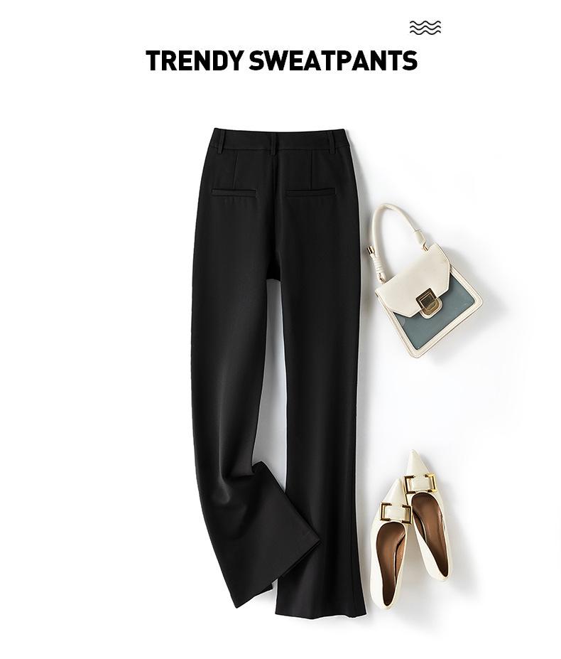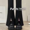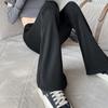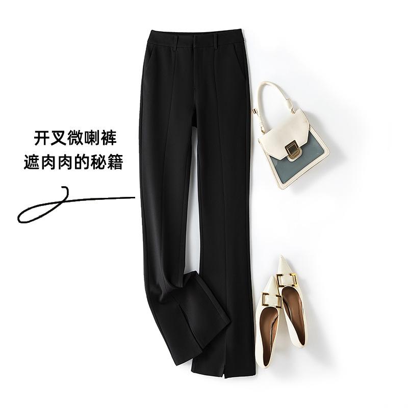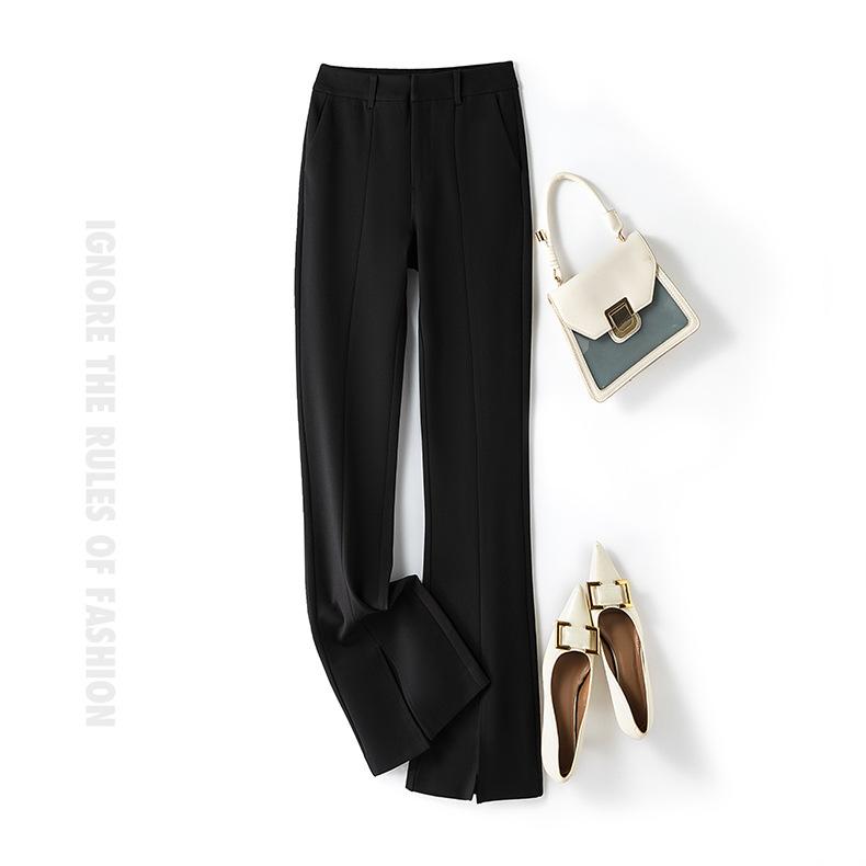 Pantalones negros microacampanados para mujer con aberturas, corte ajustado, pantalones hasta el suelo para personas pequeñas, pantalones de traje de otoño 2025 de talle alto