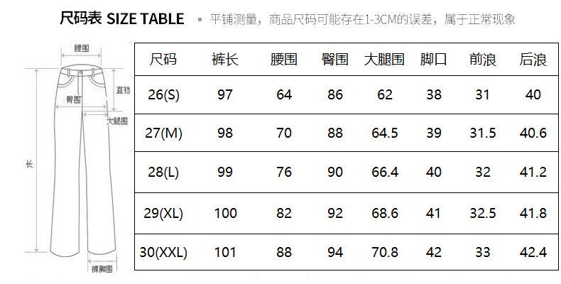 26/S, 27/M, 28/L, 29/XL, 30/XXL