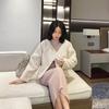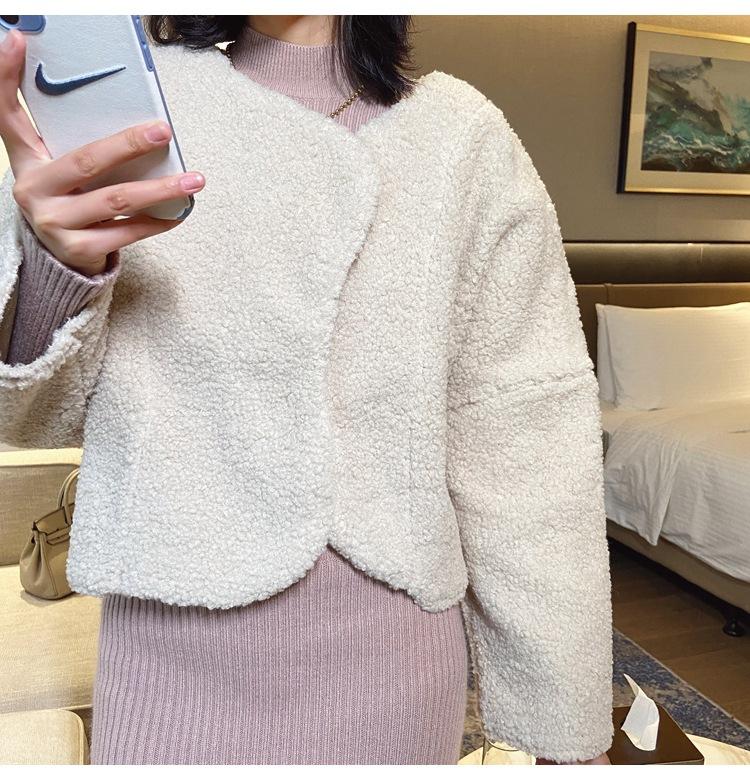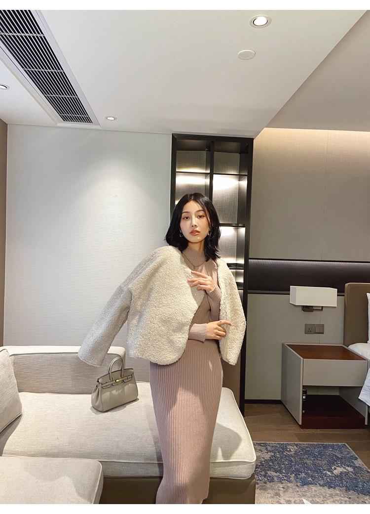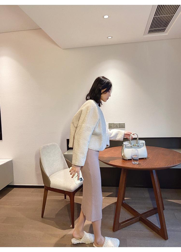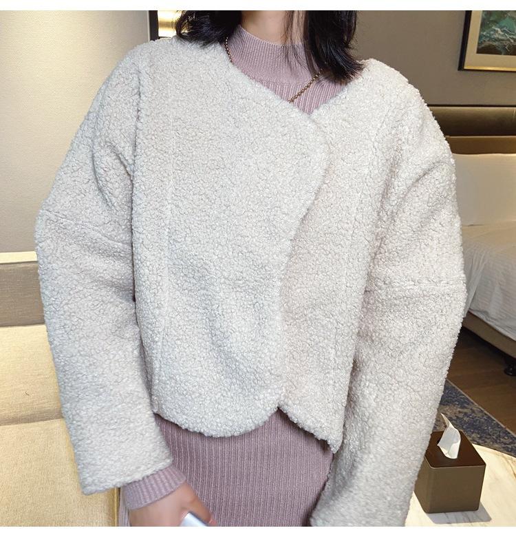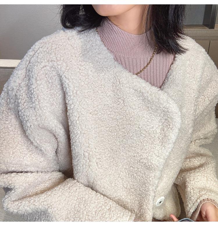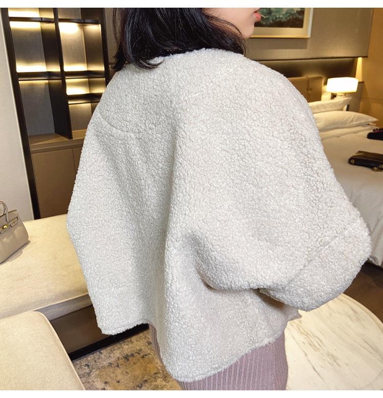 El estilo es bastante interesante. La silueta es ancha en la parte superior y estrecha en la parte inferior. Cuando está abotonado, parece un pequeño cuello redondo.