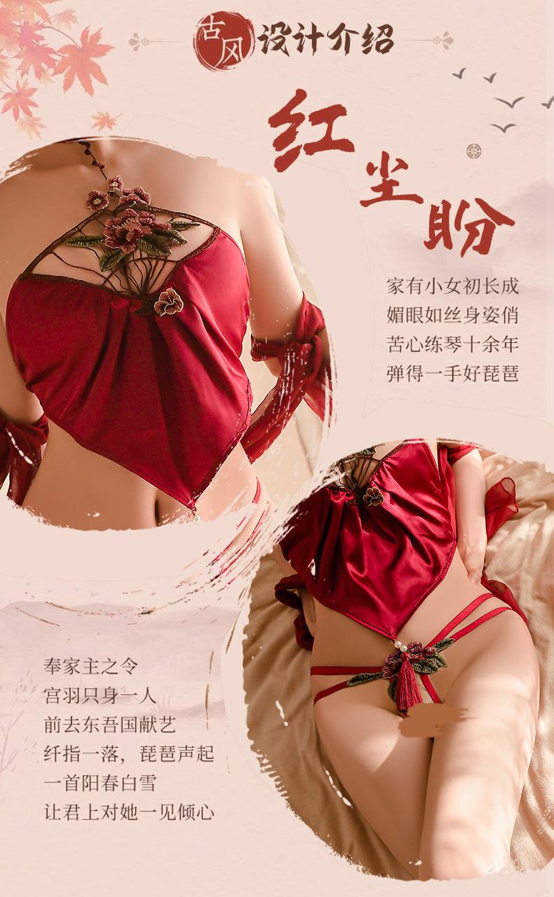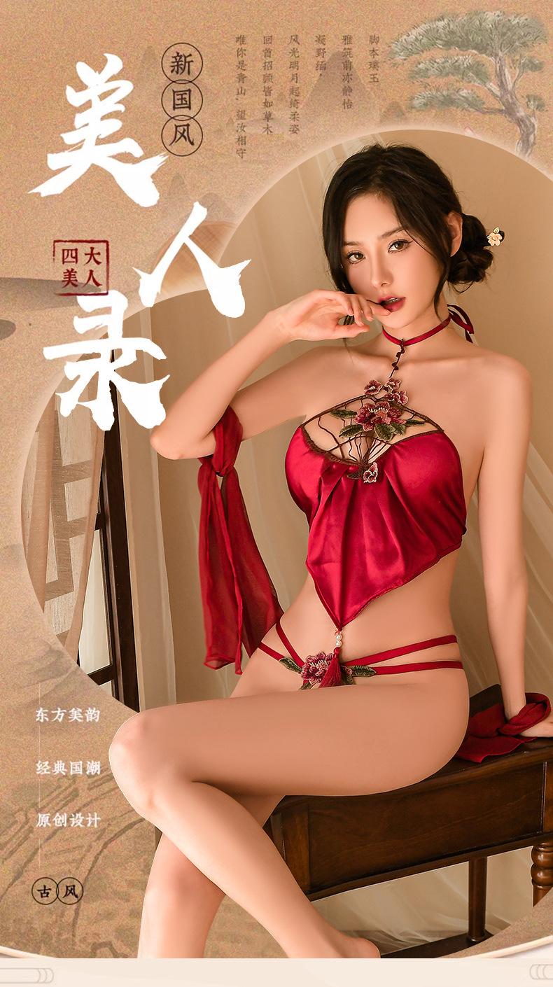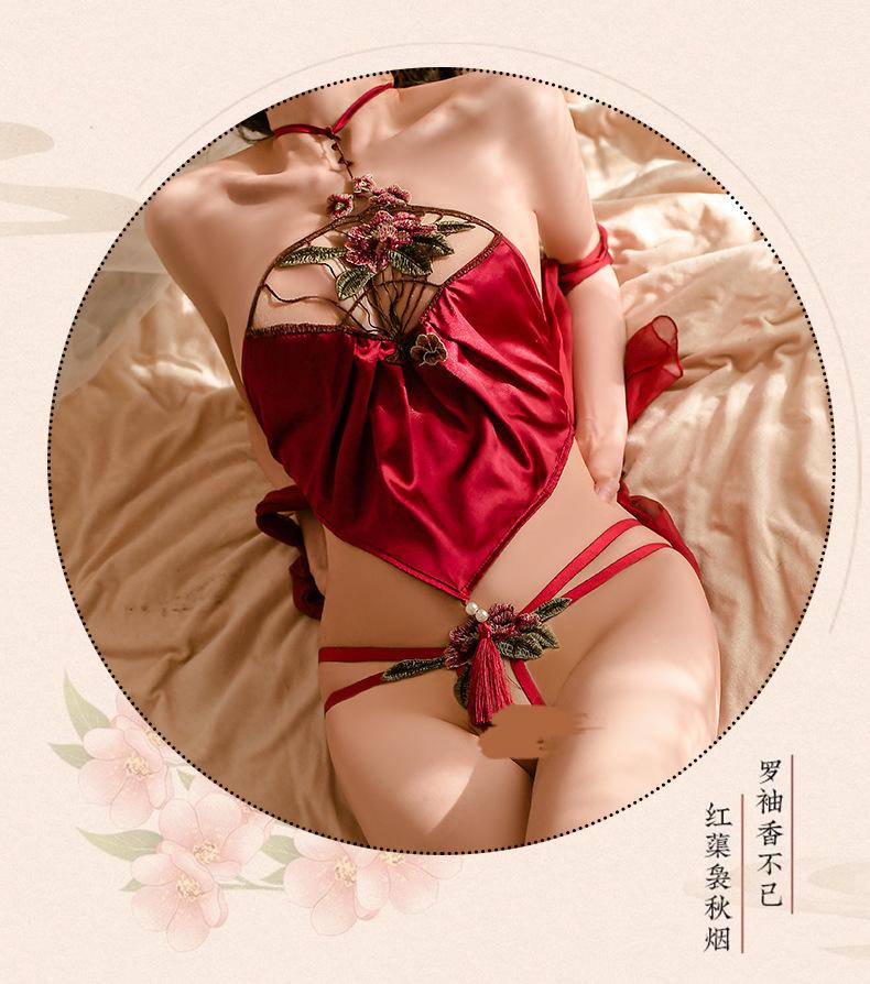 Lencería sexy Año Nuevo camisón estilo antiguo pasión perspectiva faja uniforme retro Hanfu tentación conjunto de pijama sexy