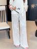 2026 Principios de Otoño Nuevo Estilo Nuevo Estilo Chino Pantalones de Satén de Pierna Ancha Estilo Nacional Jacquard Casual de Pierna Recta Pantalones Largos para Mujer M2076