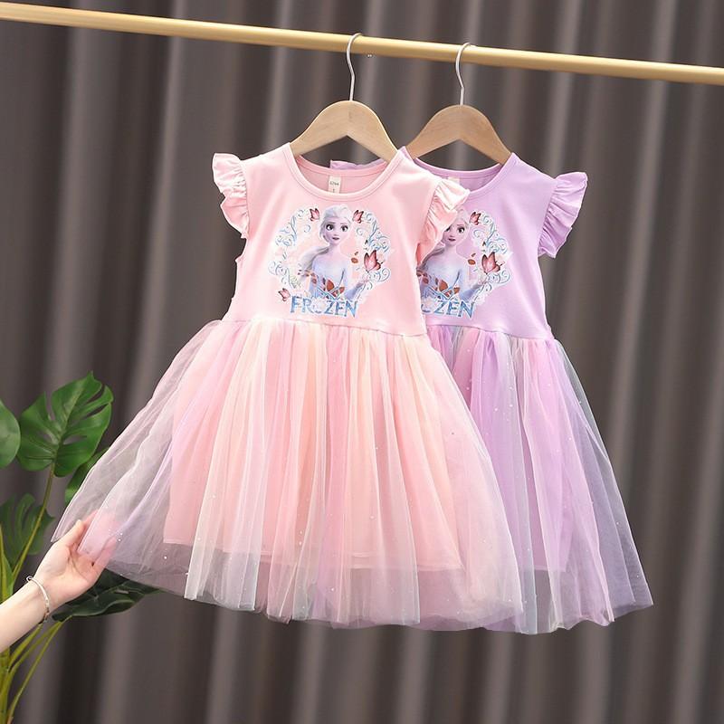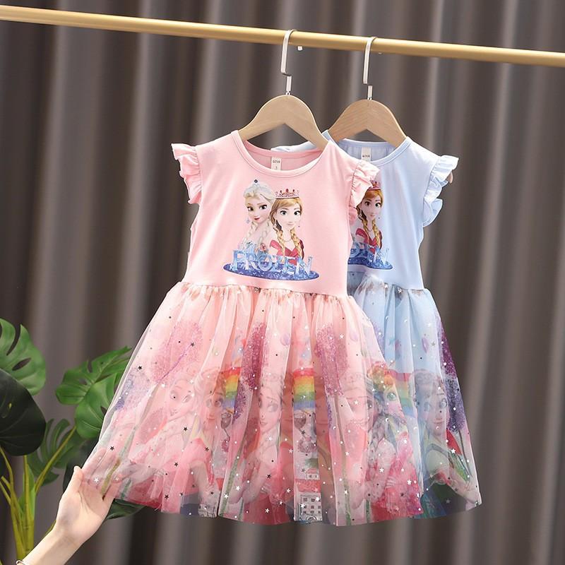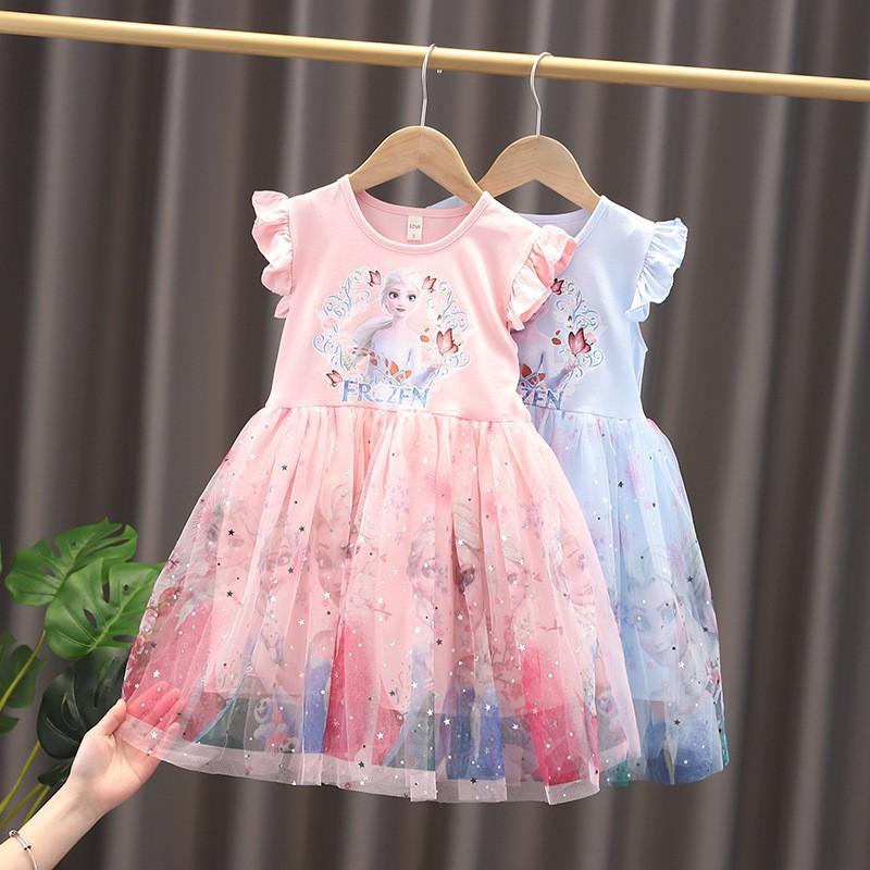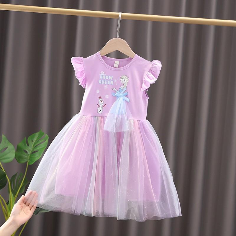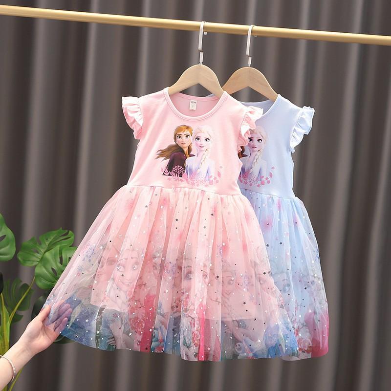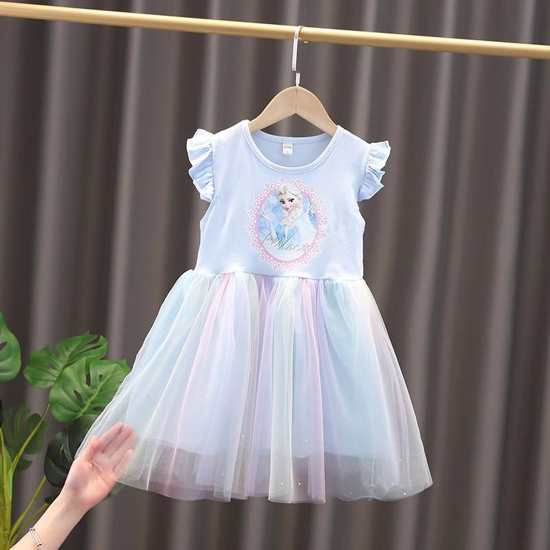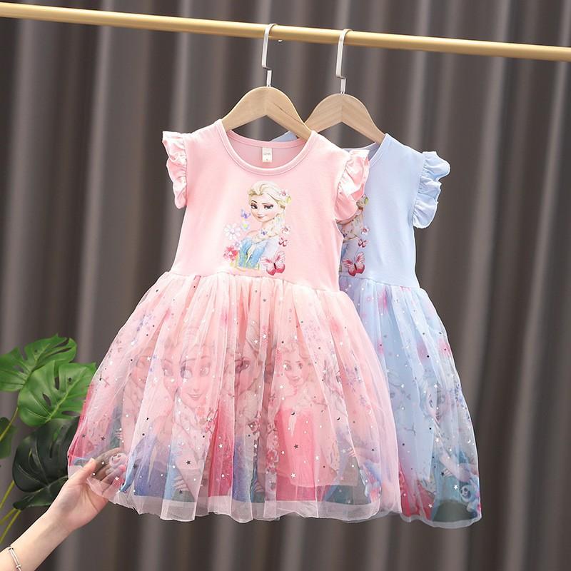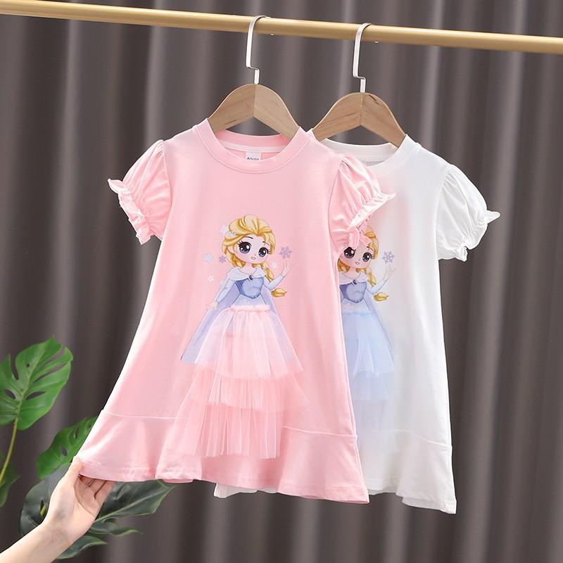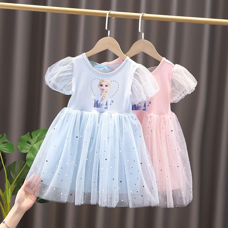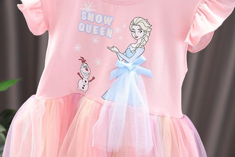 Vestido de verano para niña de Frozen, de gasa abullonada, de manga corta, de princesa Elsa.