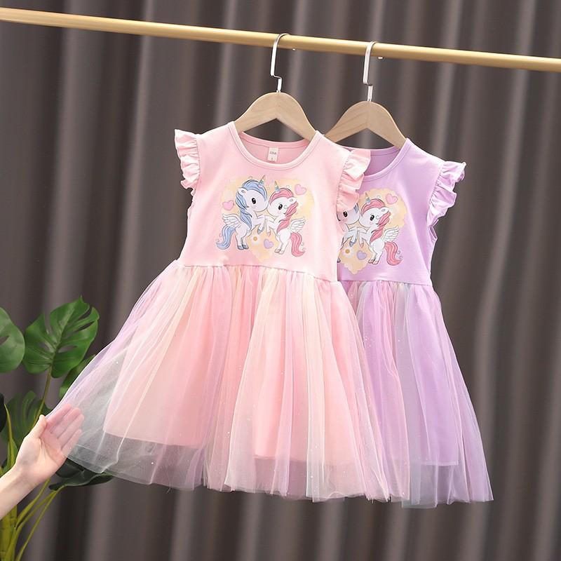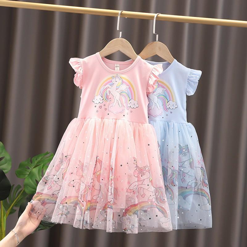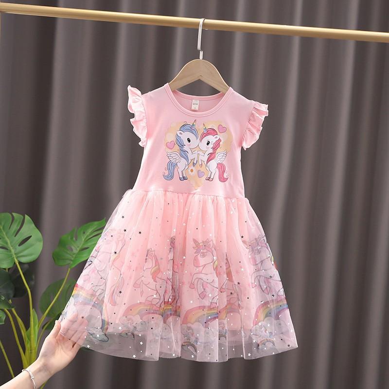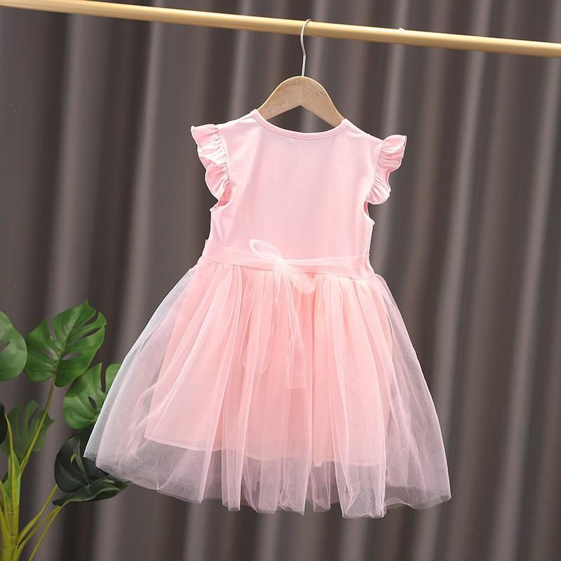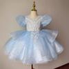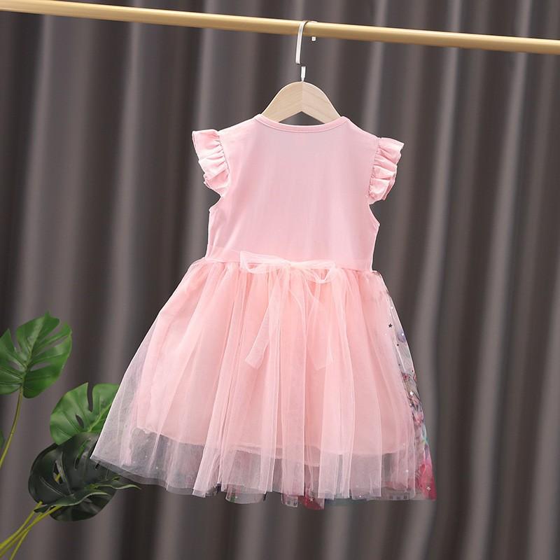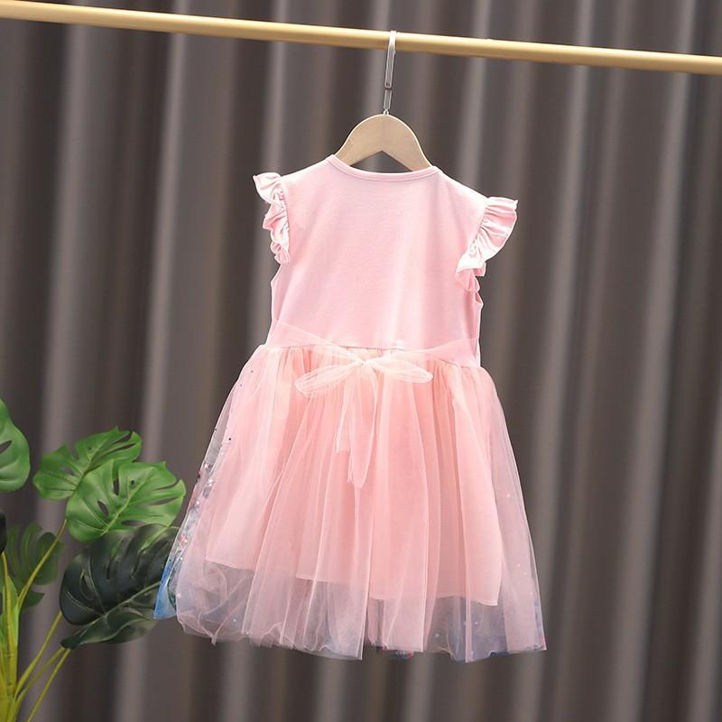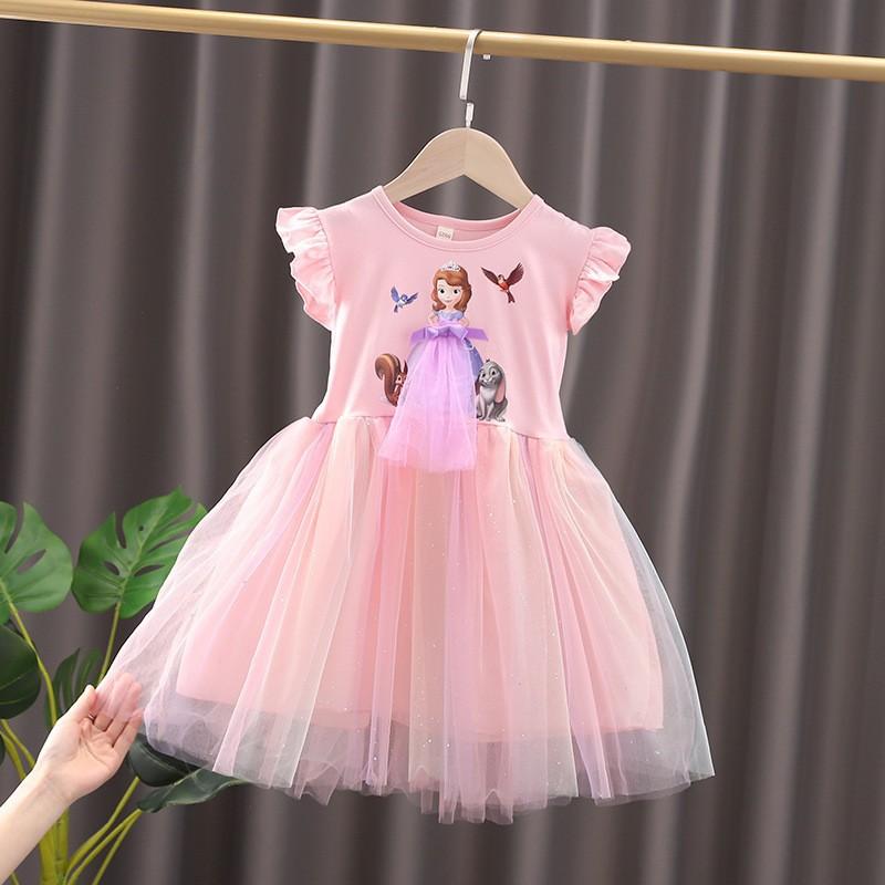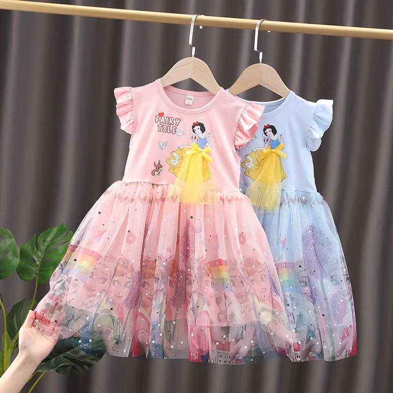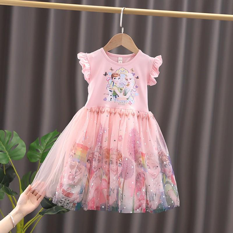 Vestido de verano para niña de Frozen, de gasa abullonada, de manga corta, de princesa Elsa.