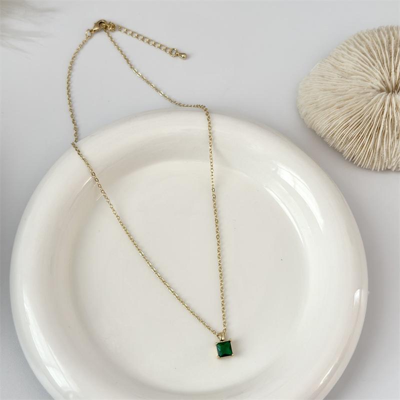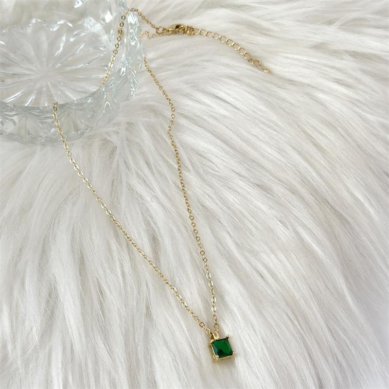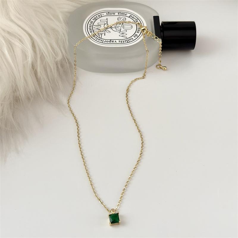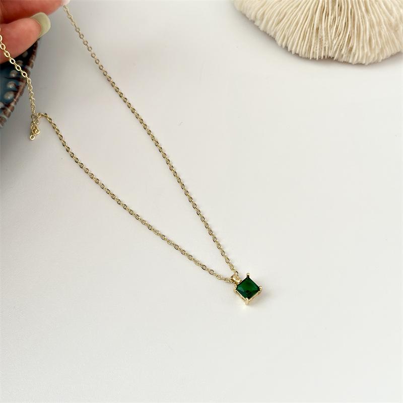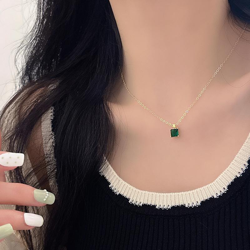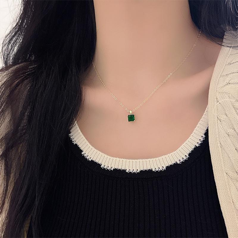 Collar con colgante de diamantes de colores, sencillo y lujoso, de estilo coreano, para mujer, diseño de alta gama, cadena de clavícula con esmeralda que combina con todo.