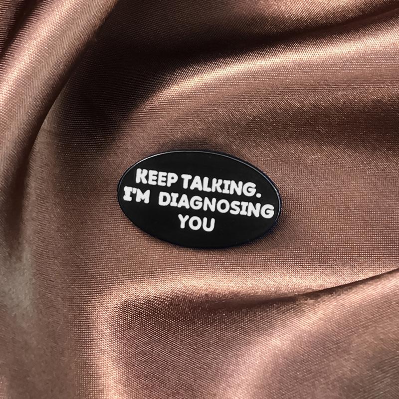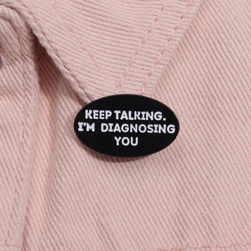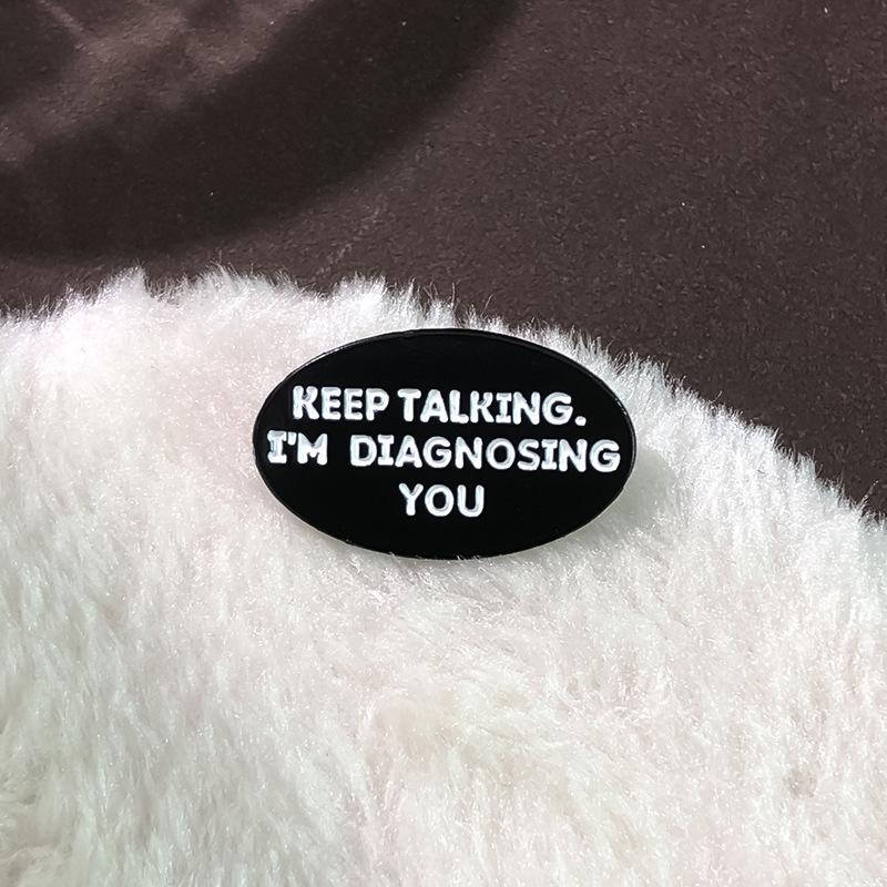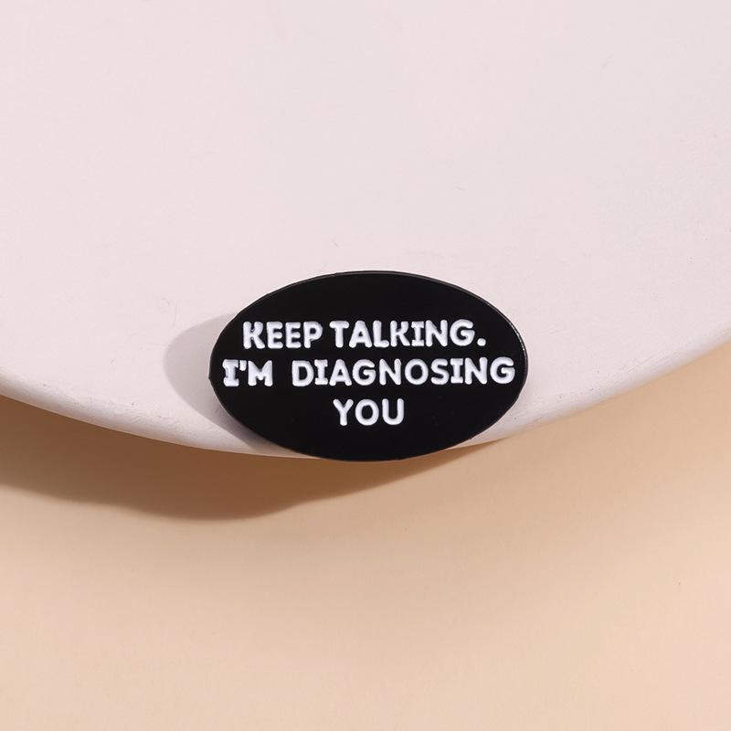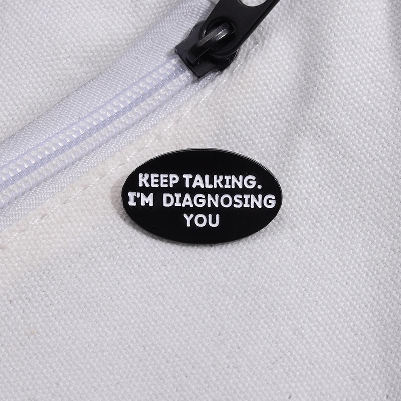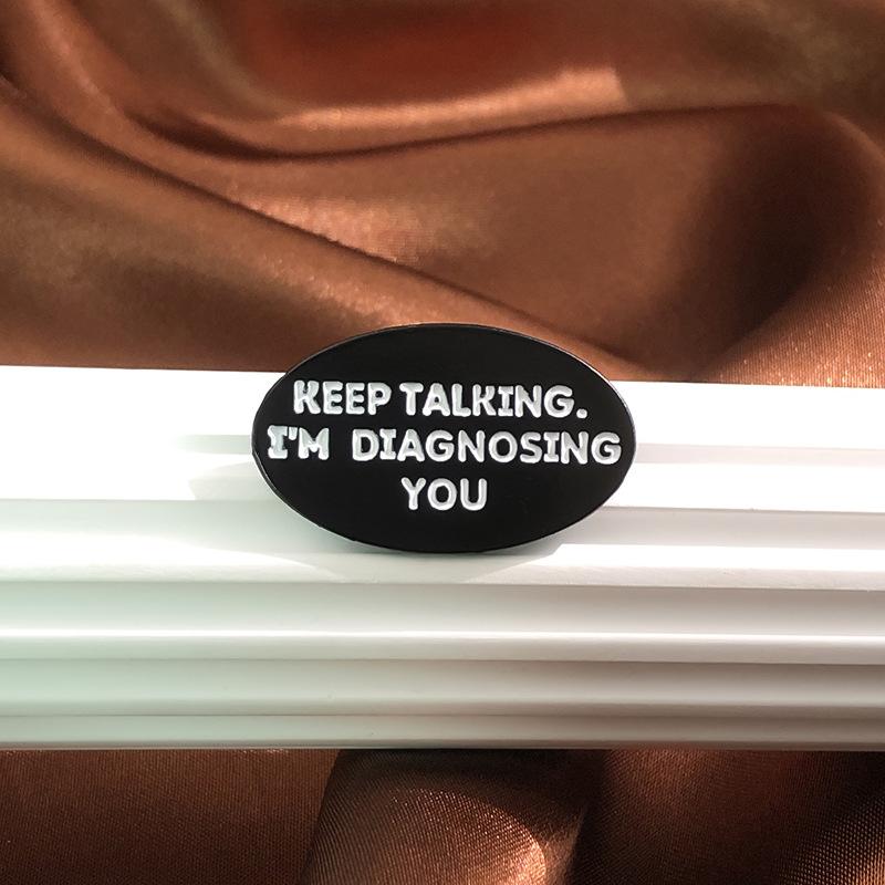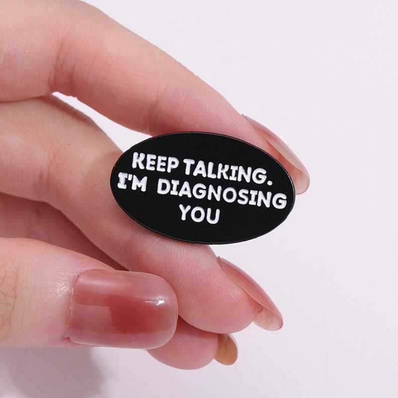 Broche creativo en inglés europeo y americano sigue hablando te estoy diagnosticando insignia accesorios psicología regalo ropa