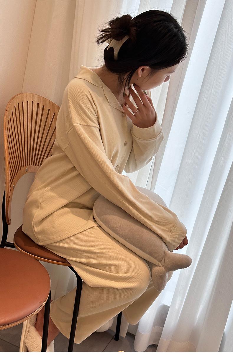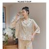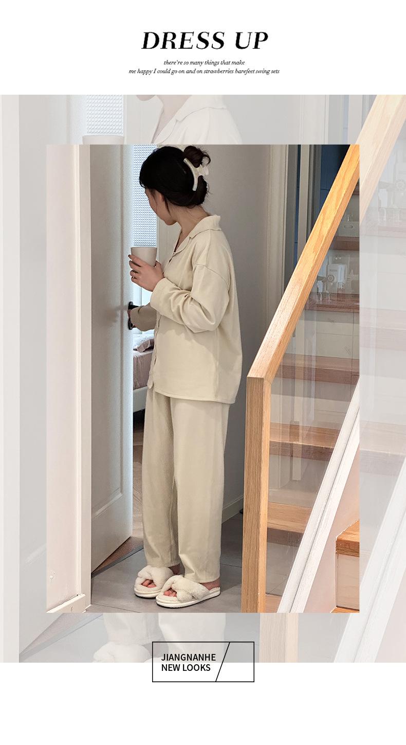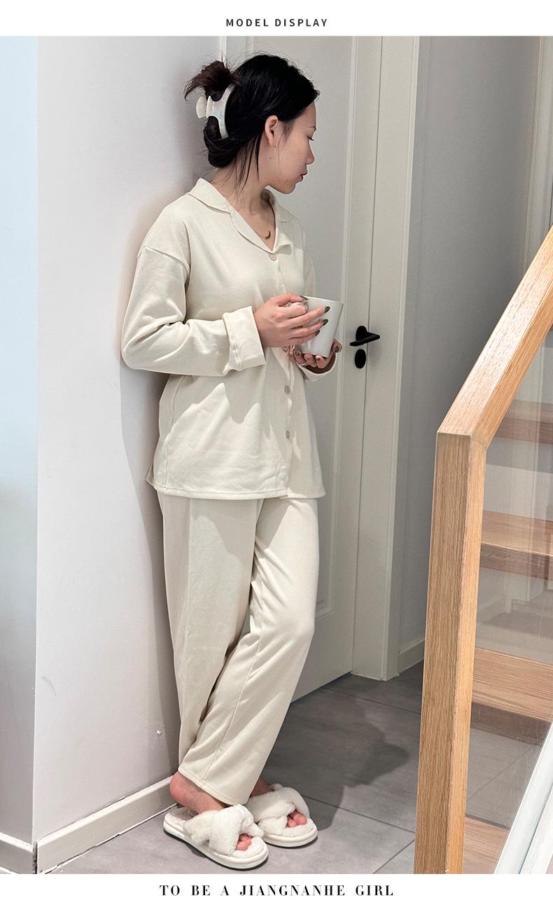 23 Otoño Nuevo estilo coreano pijama tipo cárdigan de alta calidad suave crema blanca de dos piezas cárdigan cepillado grueso ropa de casa