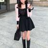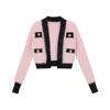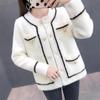 El cuello, la tapeta, los puños y el dobladillo están todos hechos con ribete de color contrastante