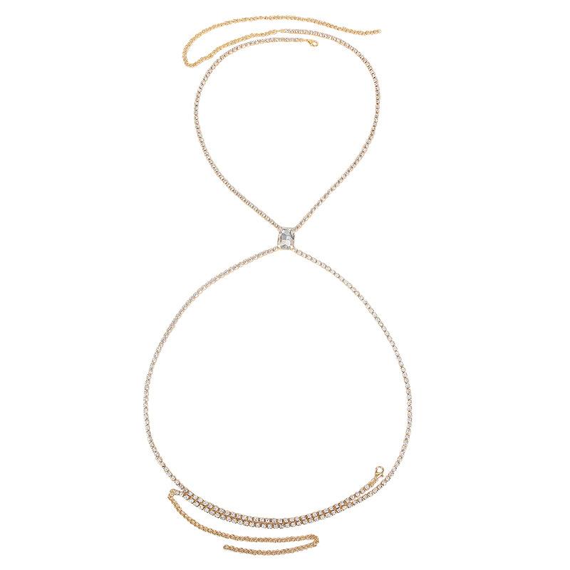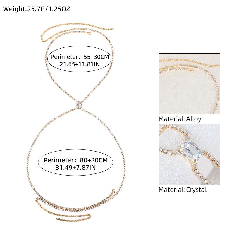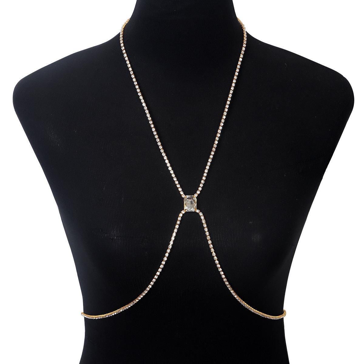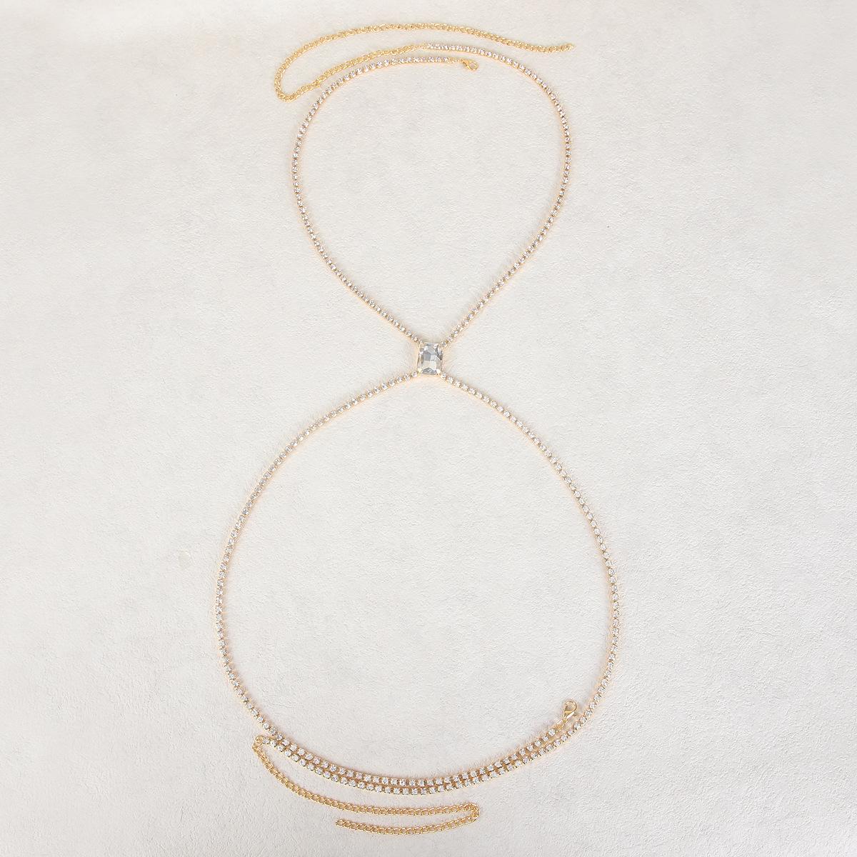 Cadena de pecho con gemas cuadradas de nueva moda europea y americana para mujer, estilo discoteca, cadena corporal con diamantes de imitación sexy que combina con todo, joyería transfronteriza