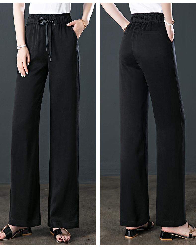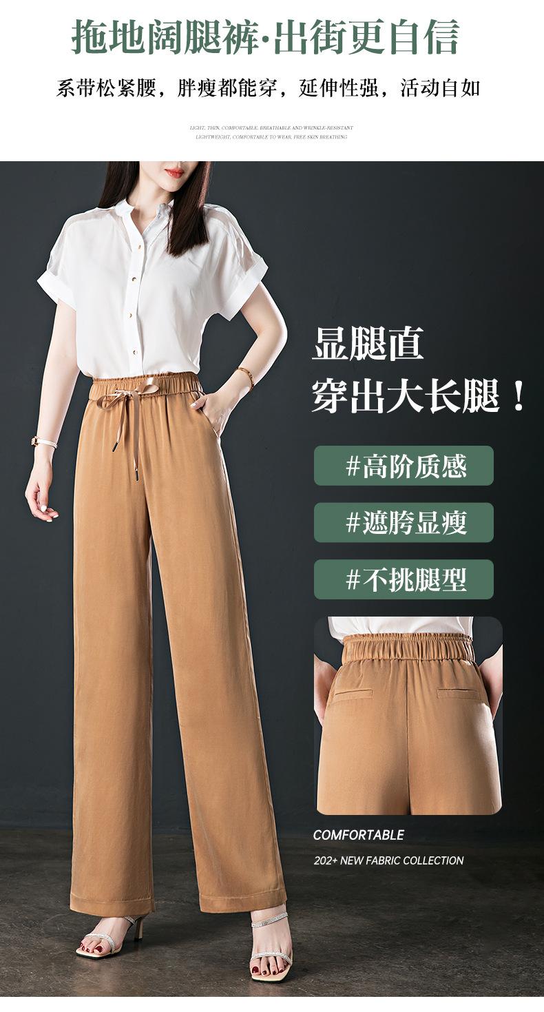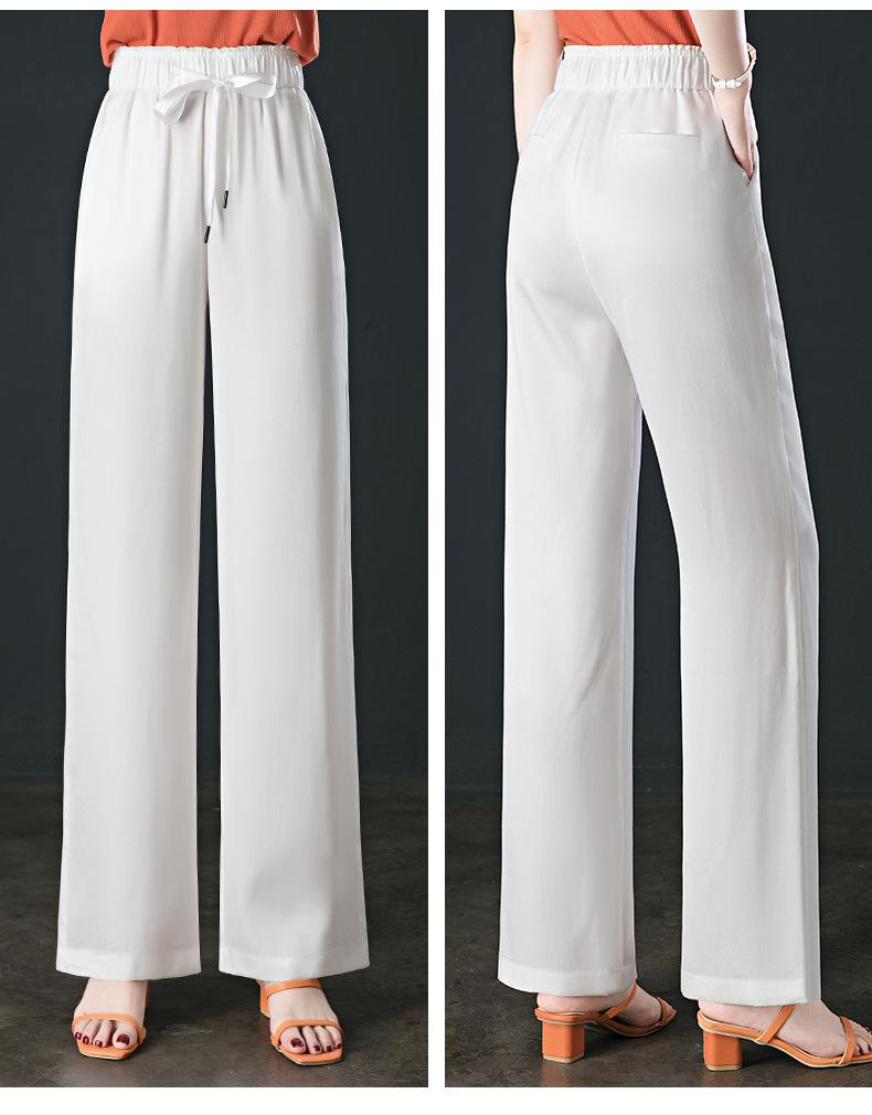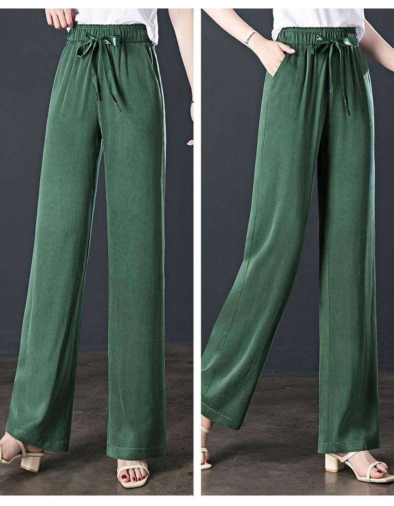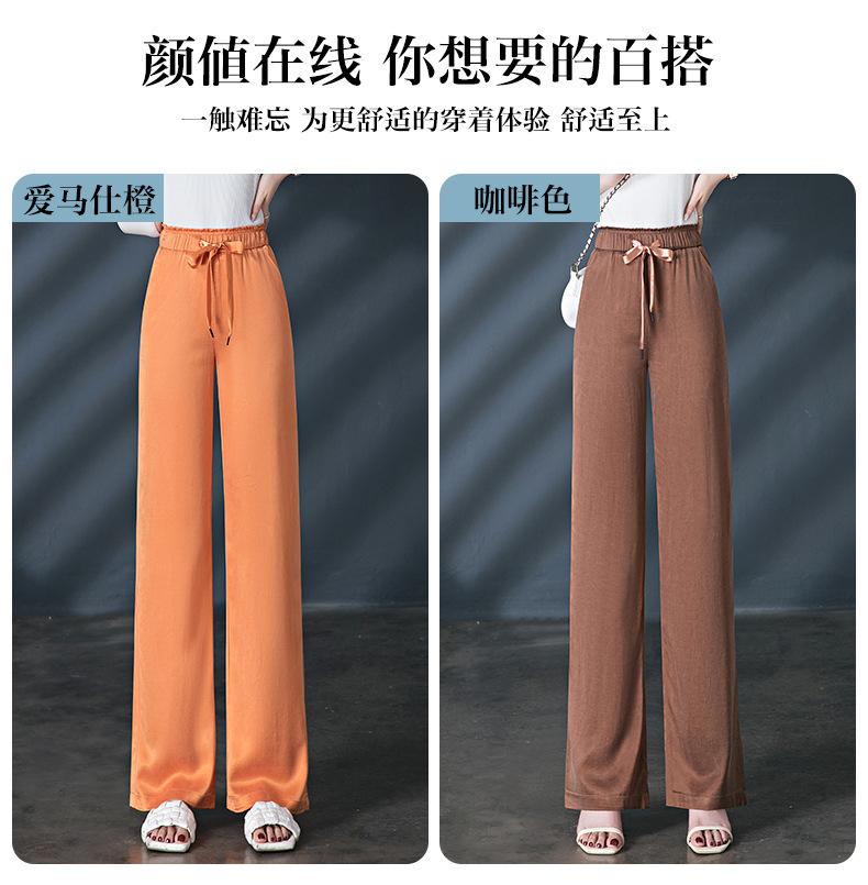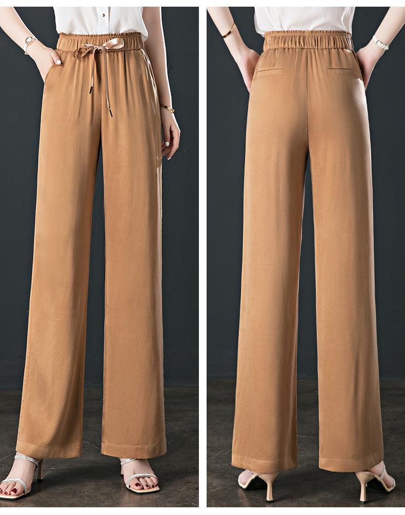 Pantalones de Pierna Ancha de Cupro Seda para Mujer Verano Delgados 2025 Nuevos Elásticos de Cintura Alta Drapeados Rectos Casuales Hasta el Piso