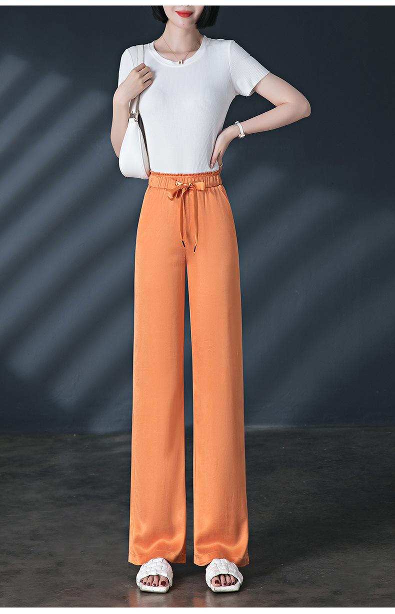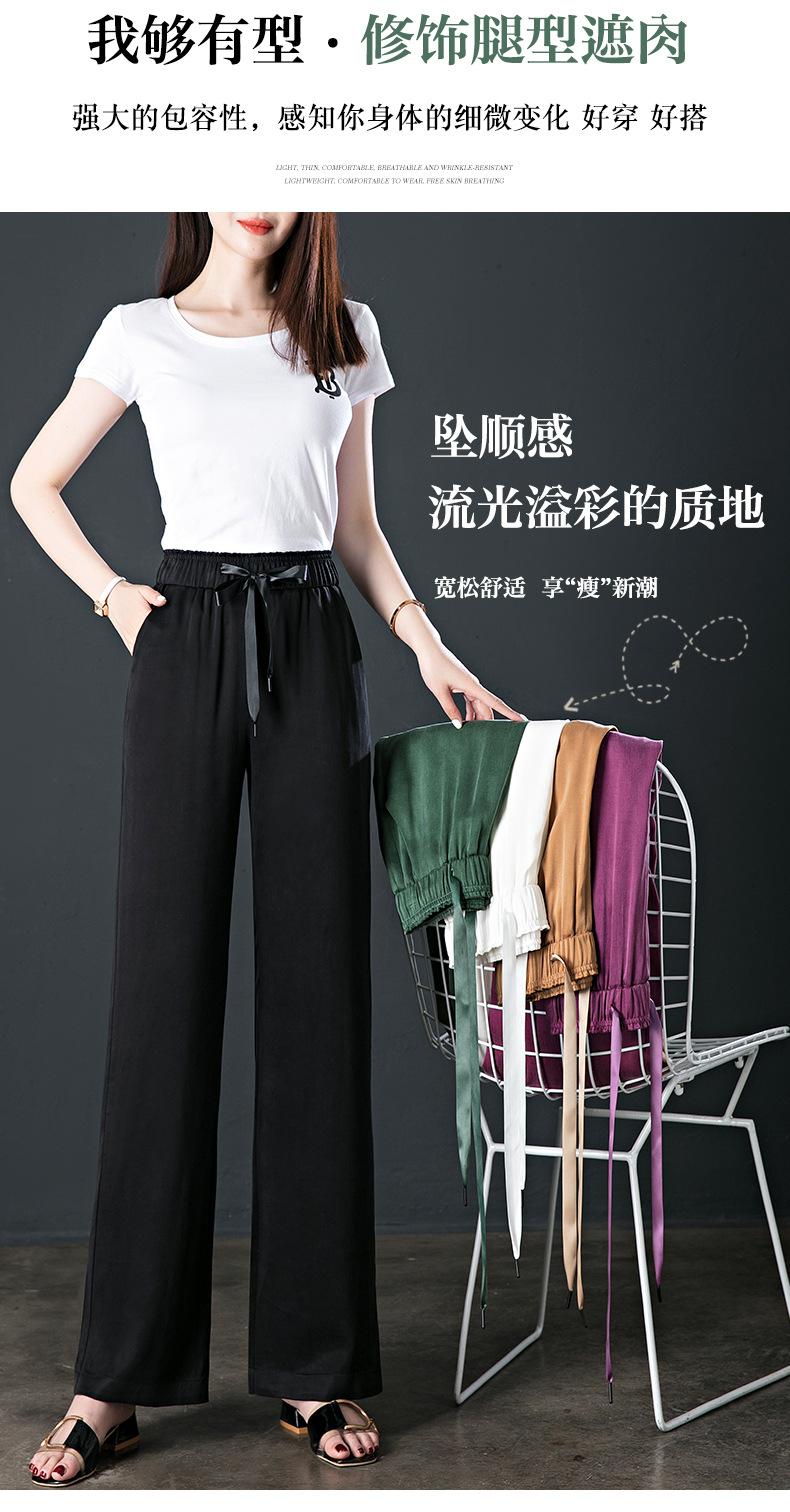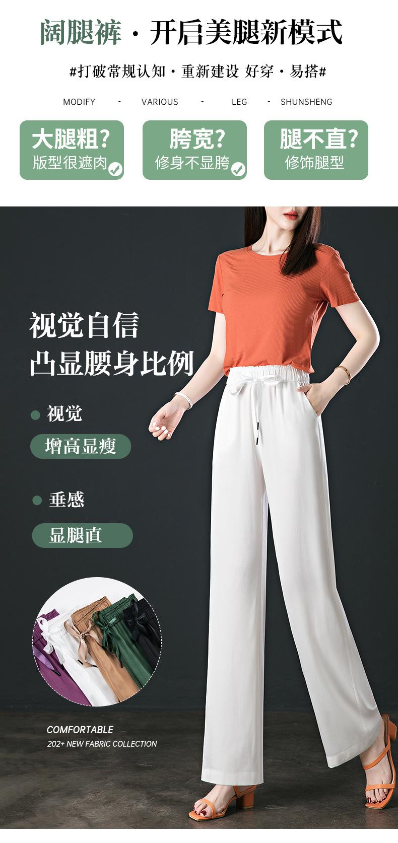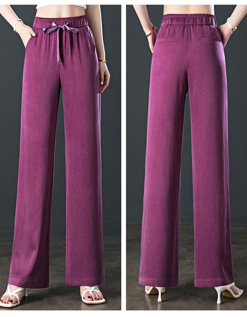 Pantalones de Pierna Ancha de Cupro Seda para Mujer Verano Delgados 2025 Nuevos Elásticos de Cintura Alta Drapeados Rectos Casuales Hasta el Piso