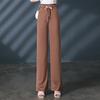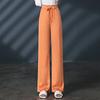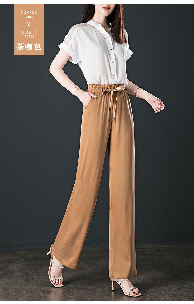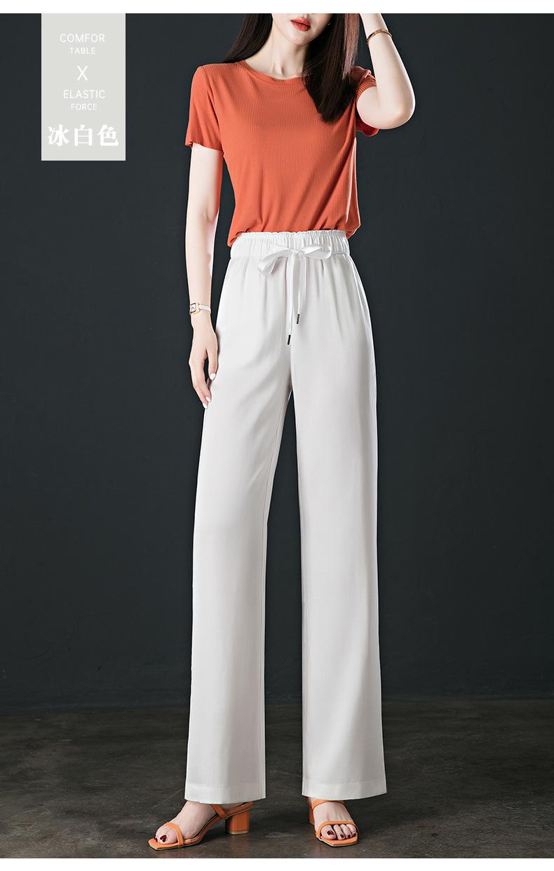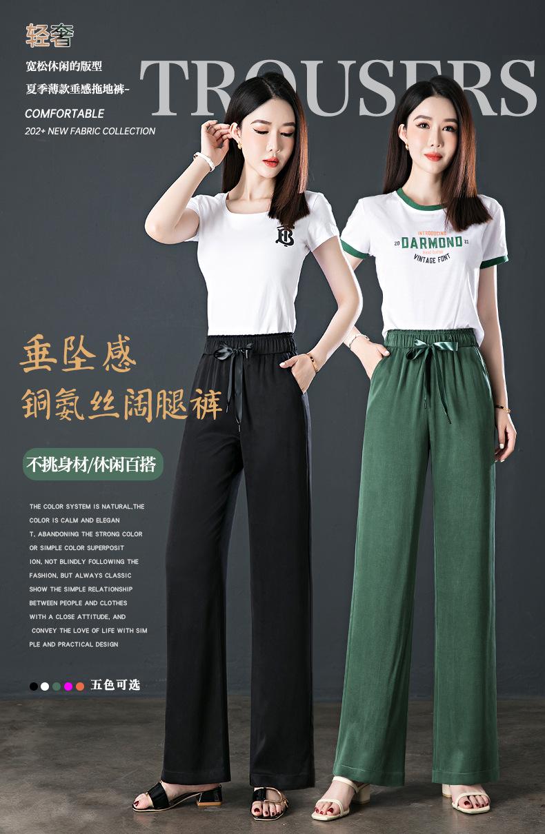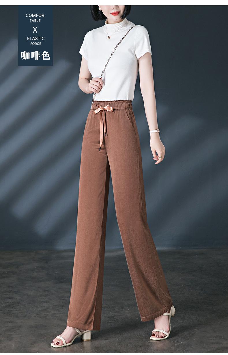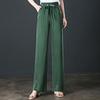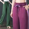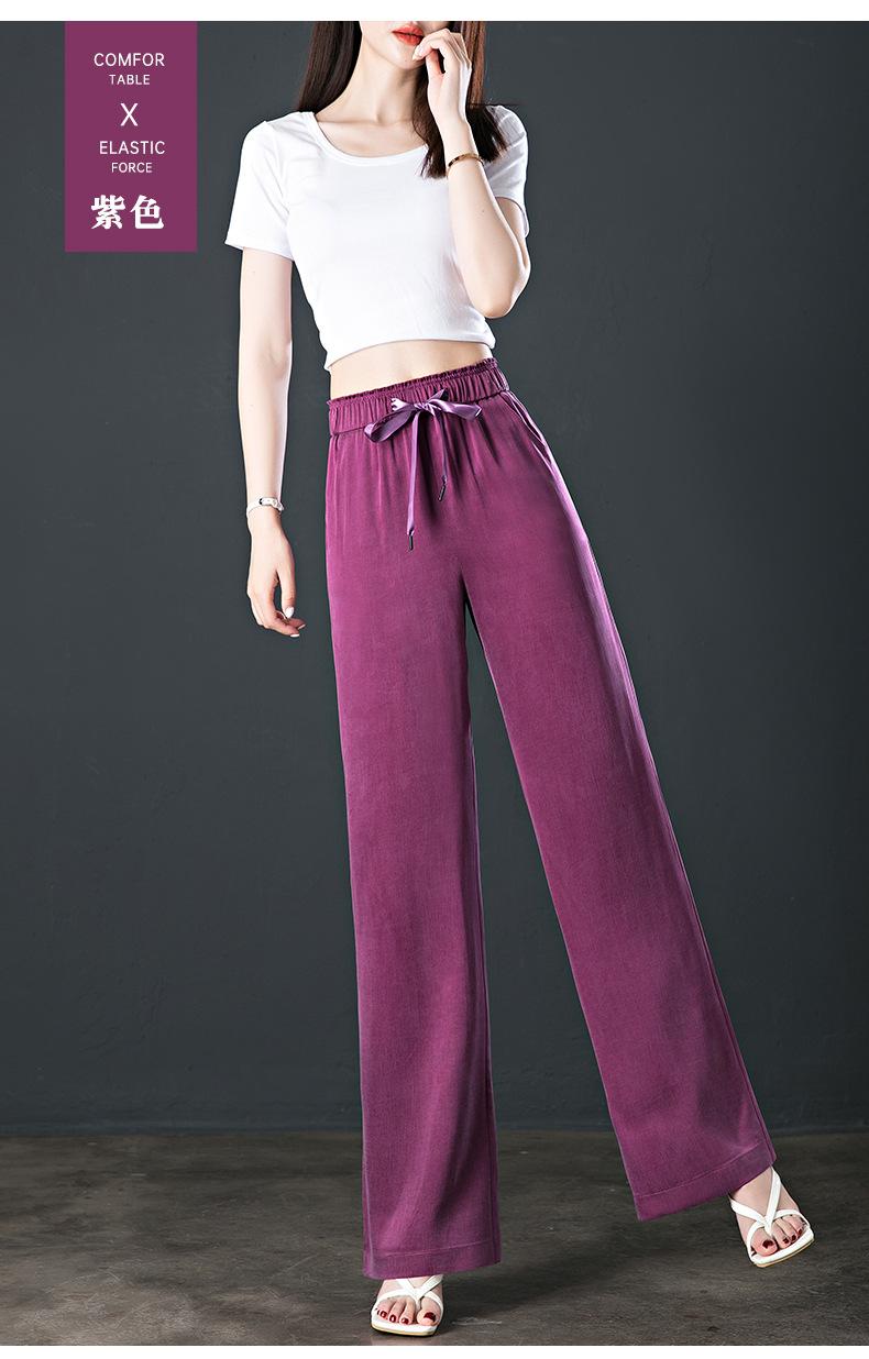 Pantalones de Pierna Ancha de Cupro Seda para Mujer Verano Delgados 2025 Nuevos Elásticos de Cintura Alta Drapeados Rectos Casuales Hasta el Piso